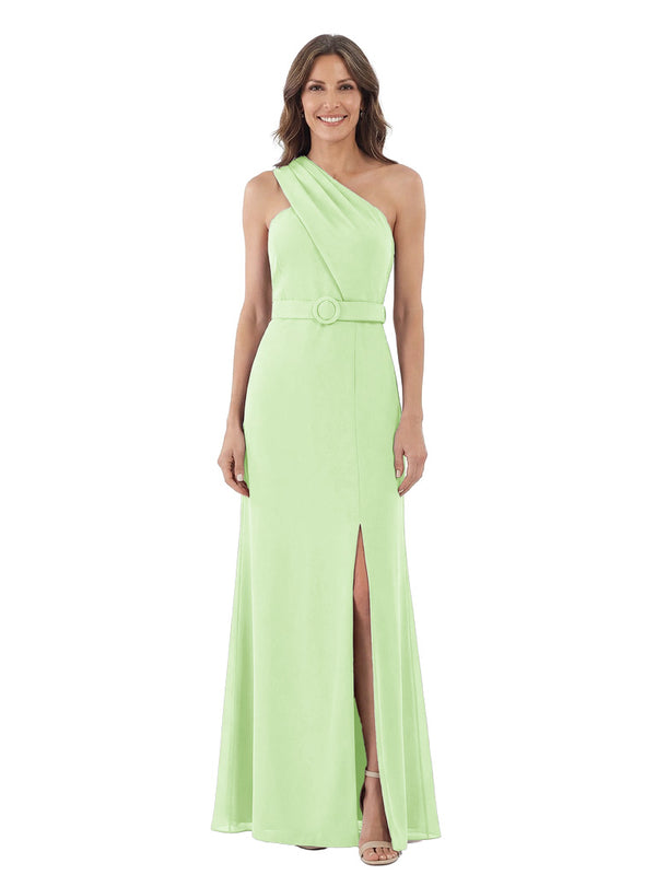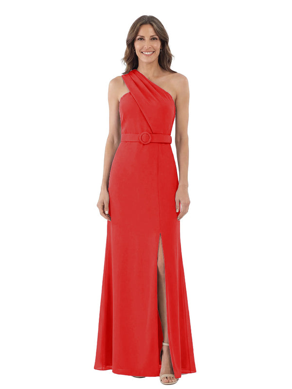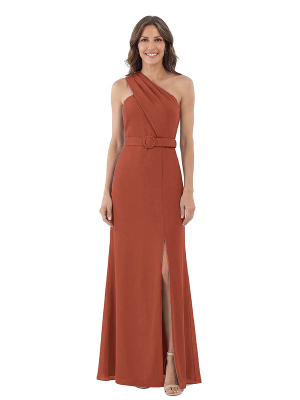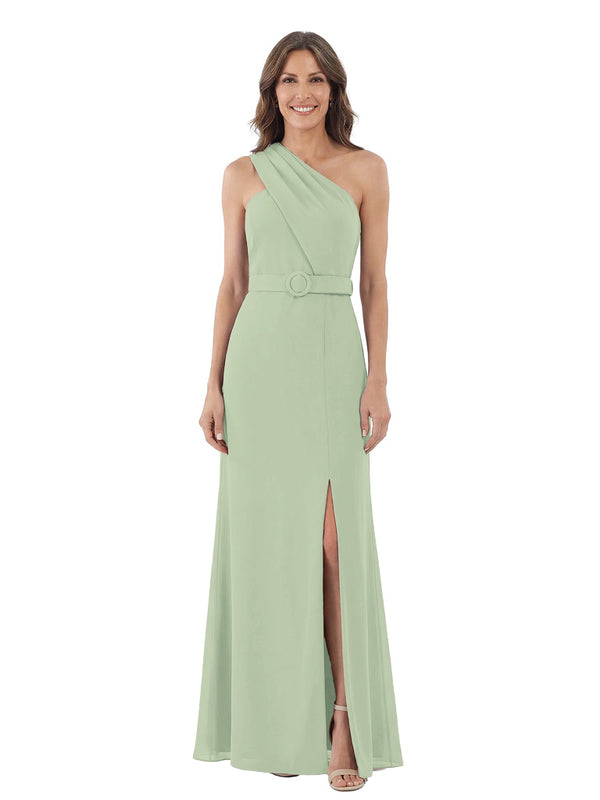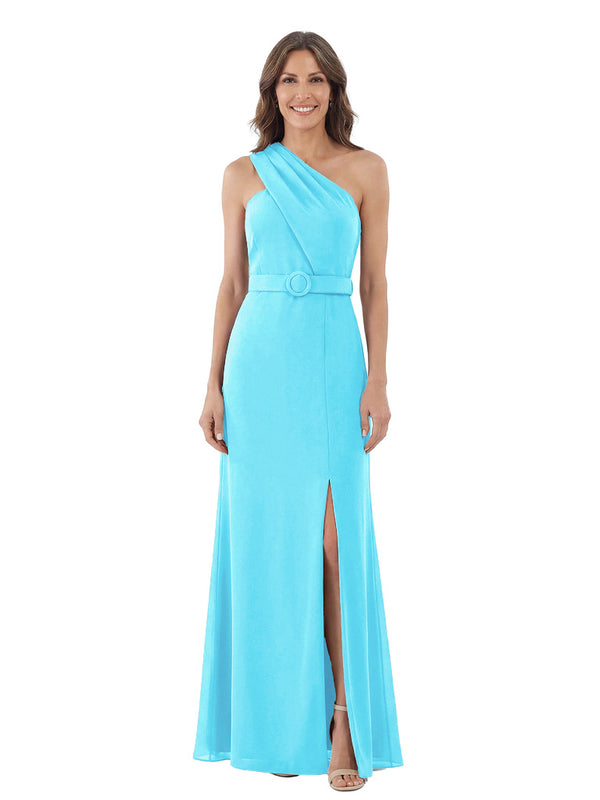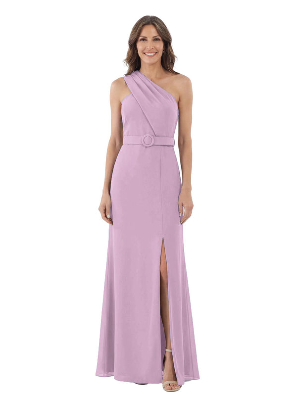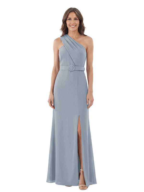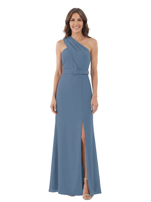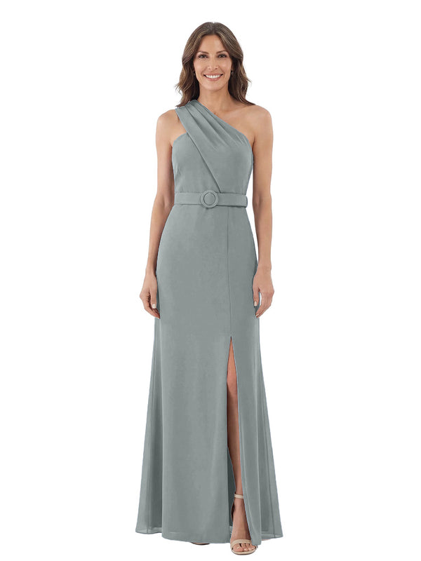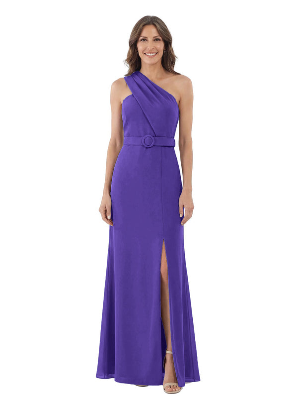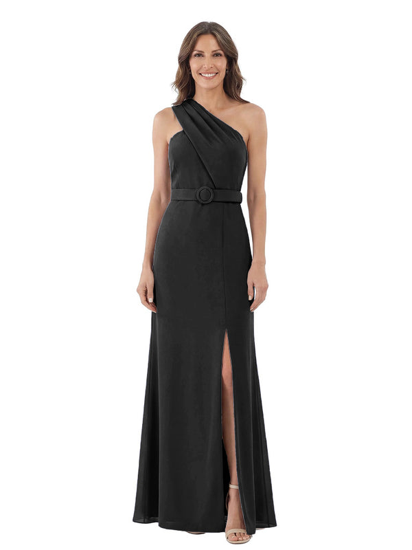 Modern One Shoulder Satin Mother of The Groom Dress Maxi Sheath Gown with Belt Accent Side Slit for Formal Wedding Events - ChicSew – ChicSew