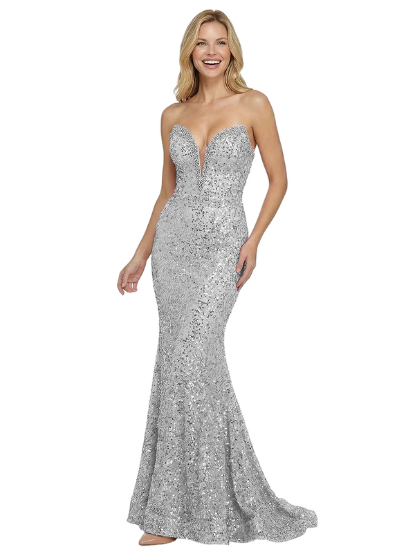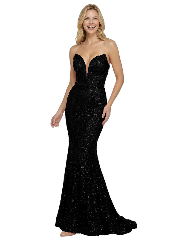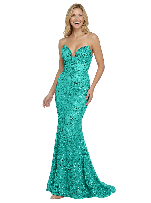 Modern Strapless Sleeveless V-Neck Sequin Prom Dress Mermaid Floor Length Gown - ChicSew – ChicSew