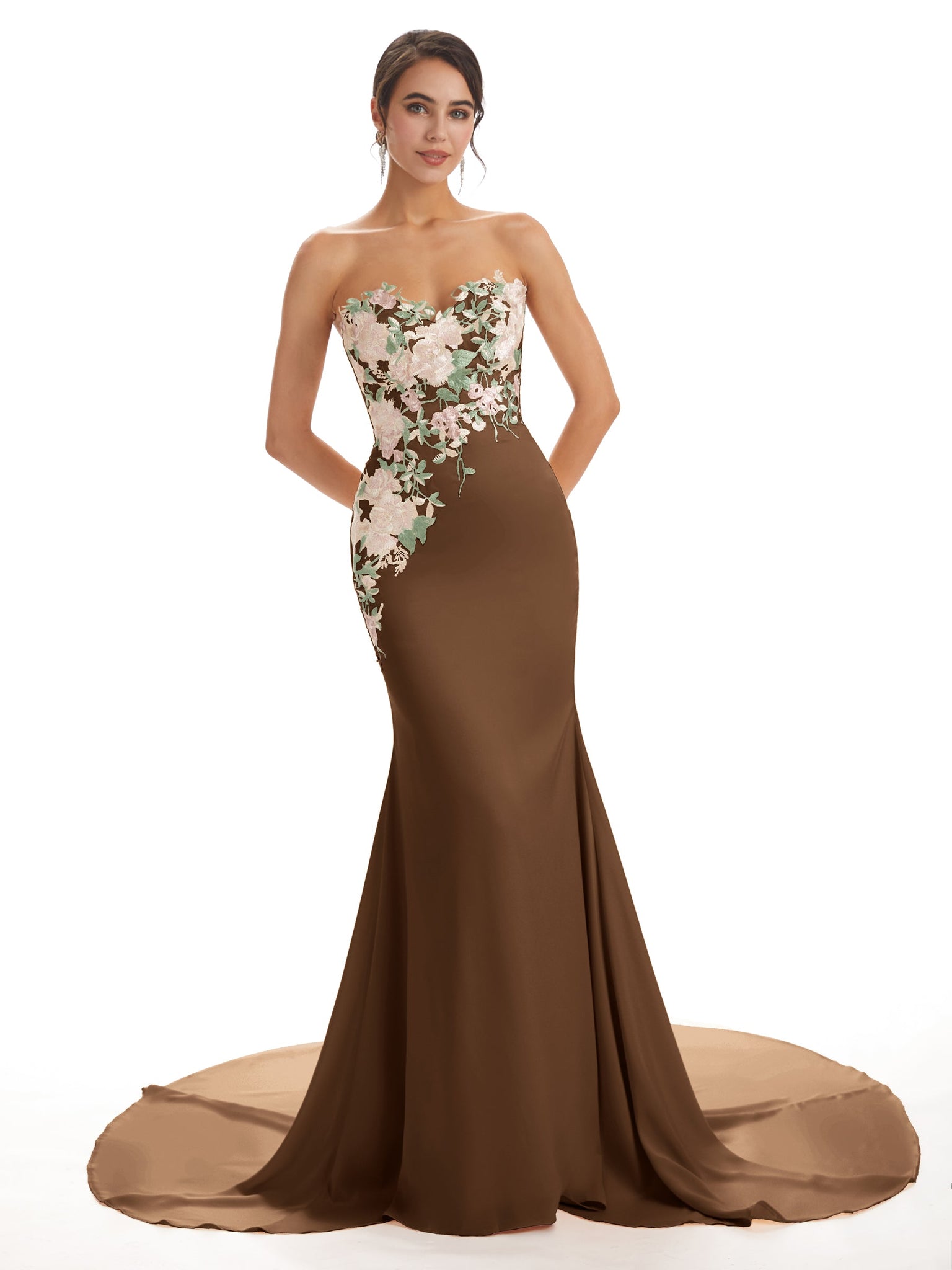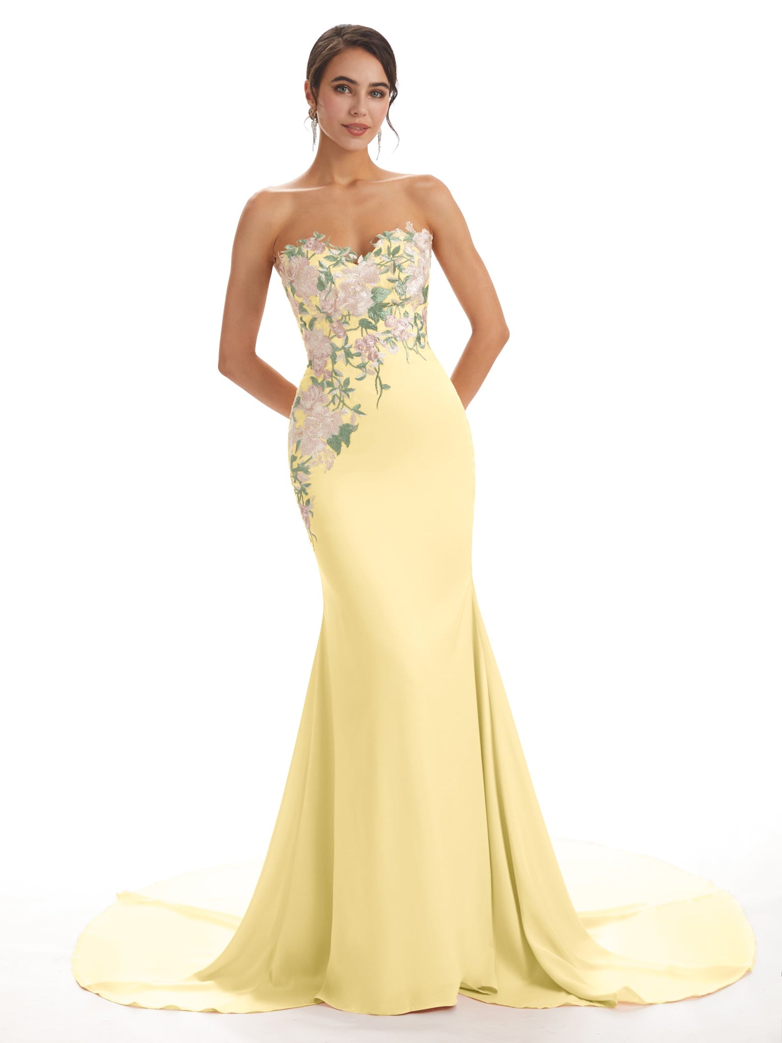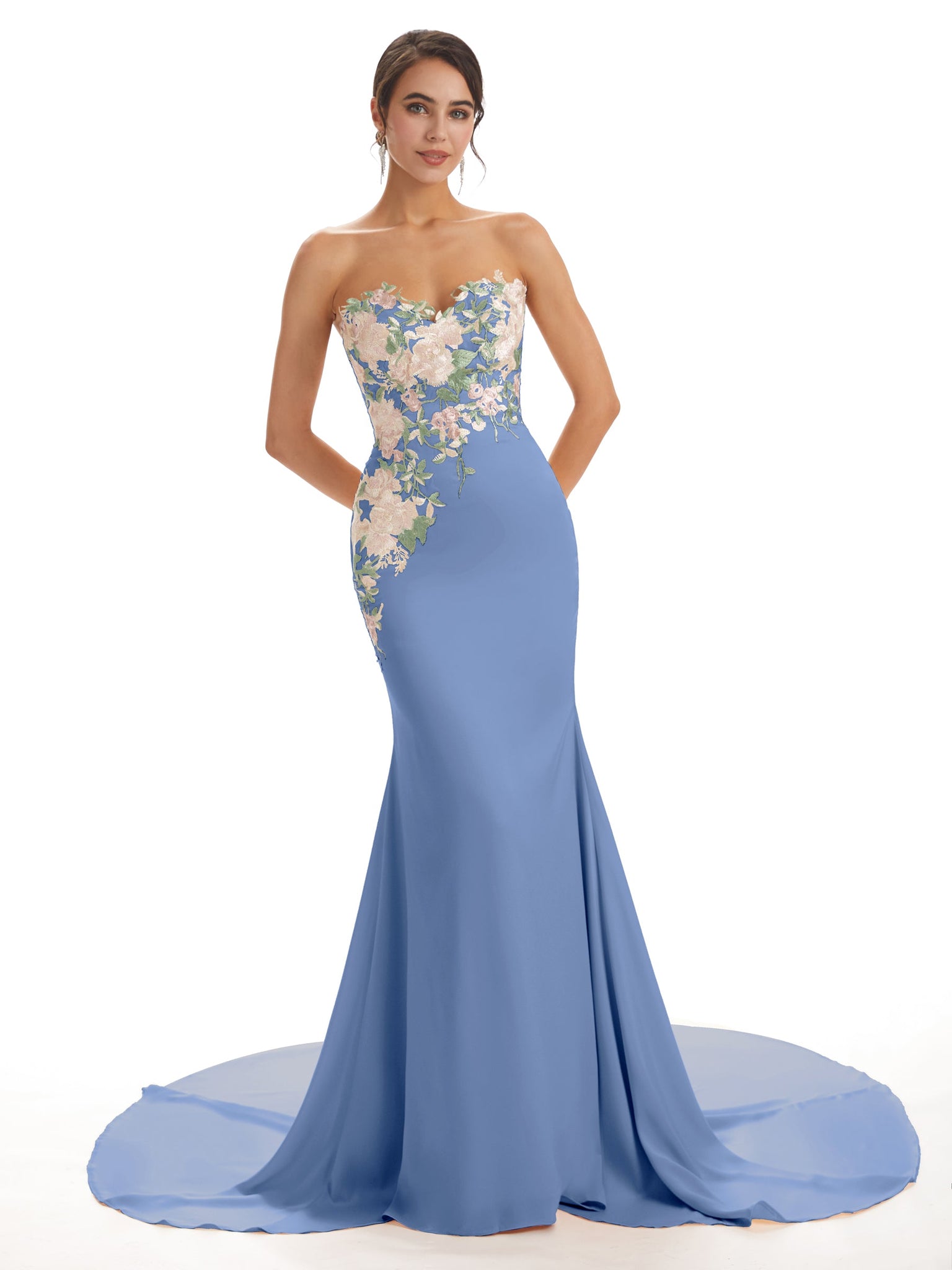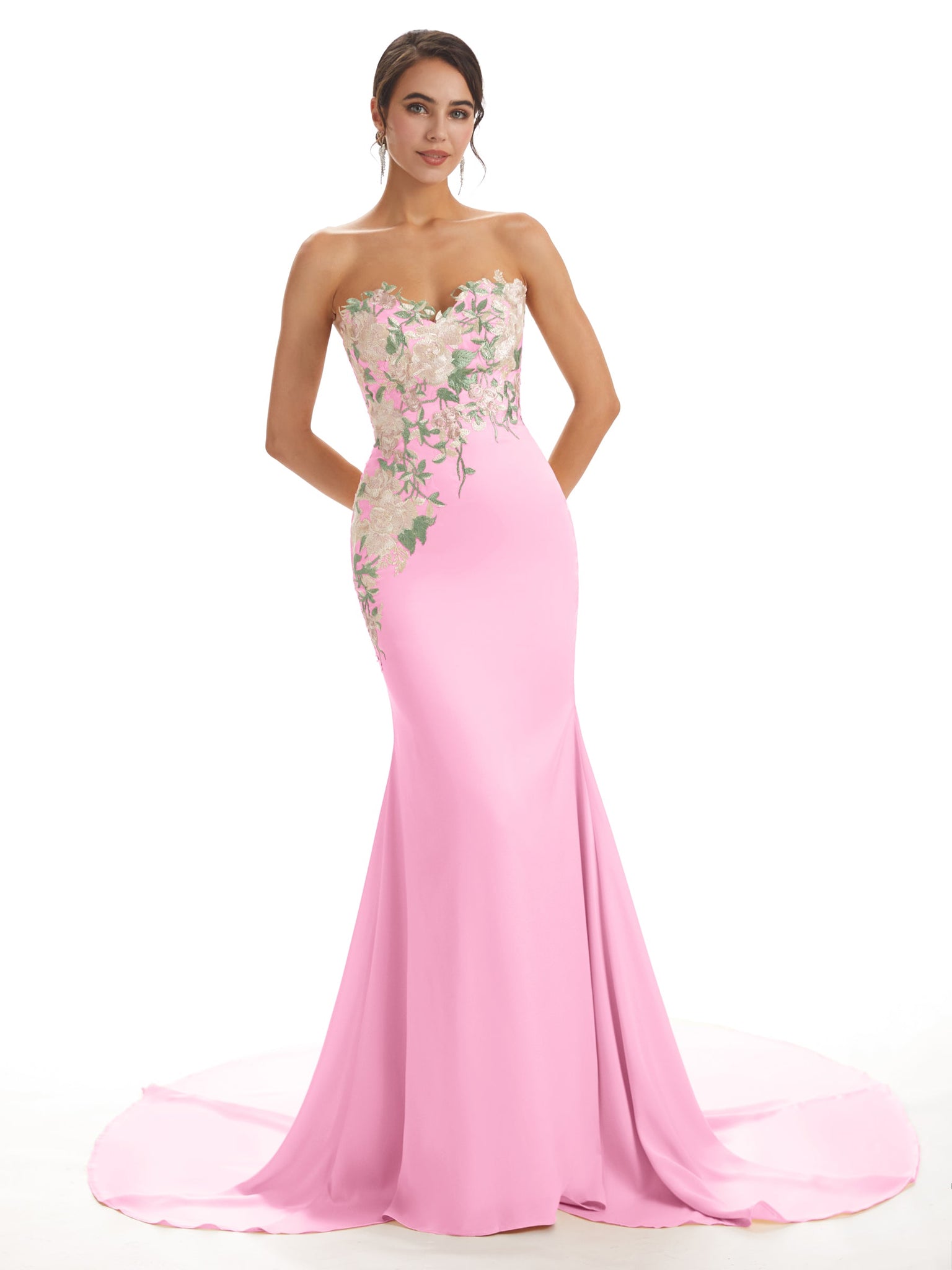 Modern Sweetheart Soft Satin Lace Applique Mermaid Long Wedding Bridesmaid Dresses - ChicSew – ChicSew