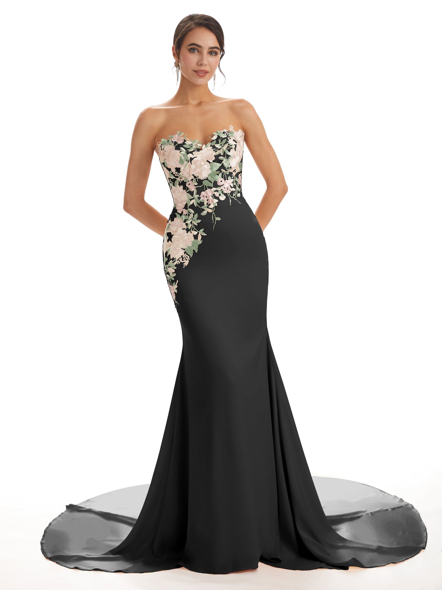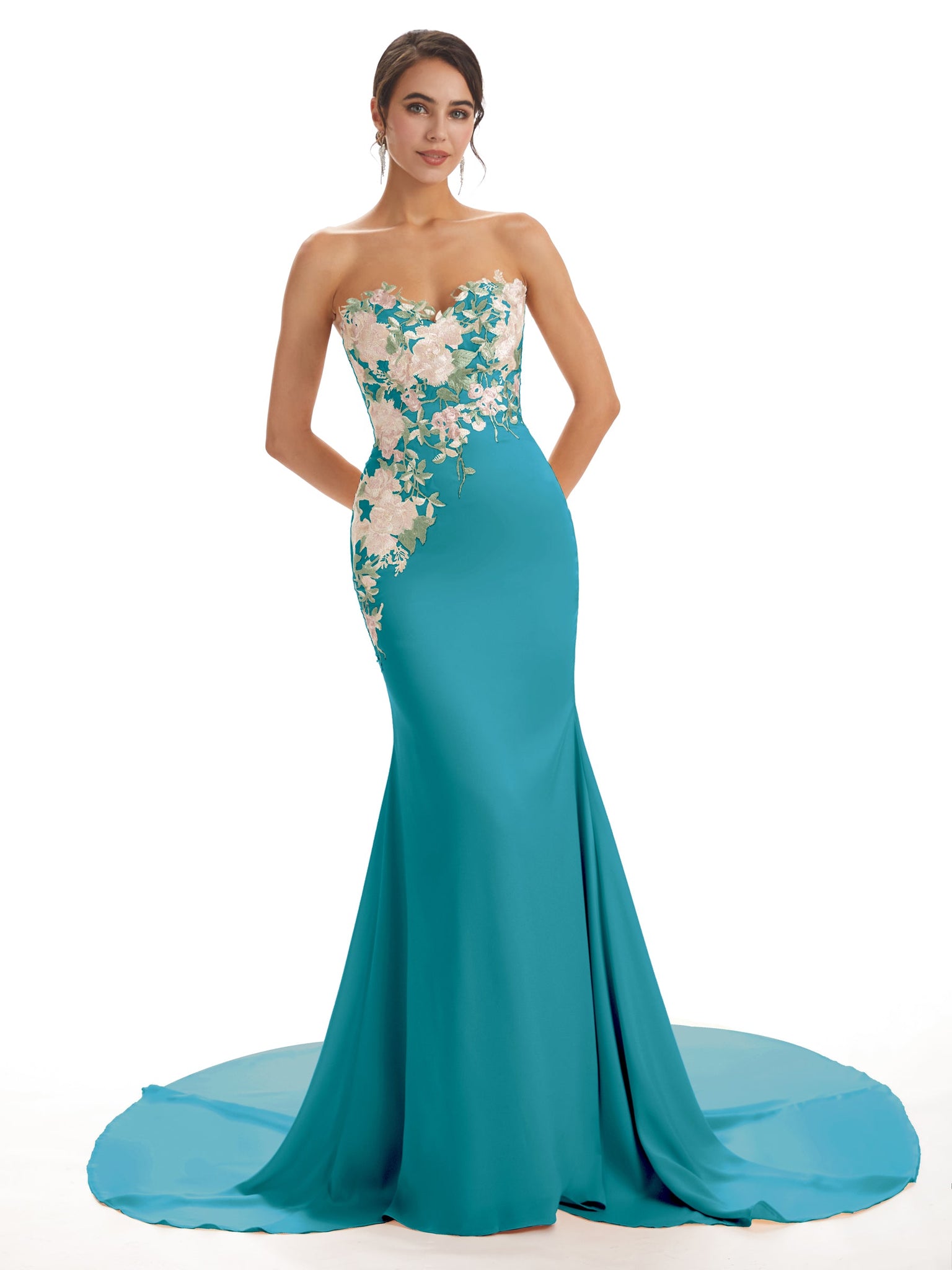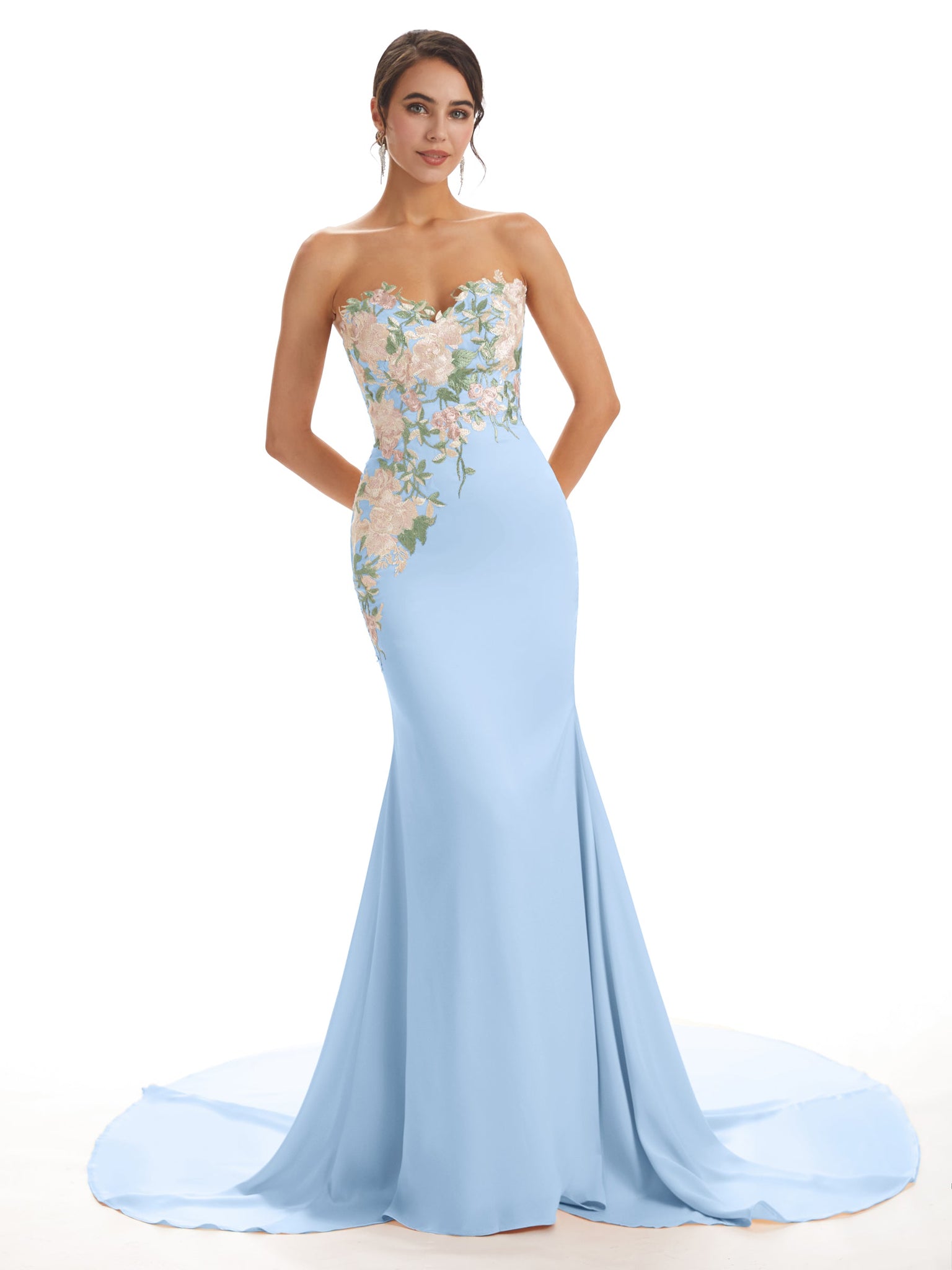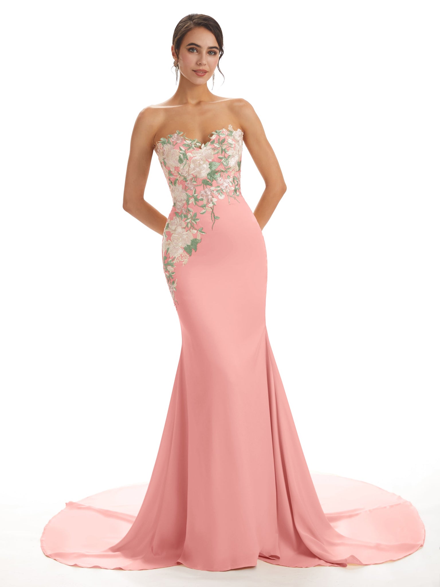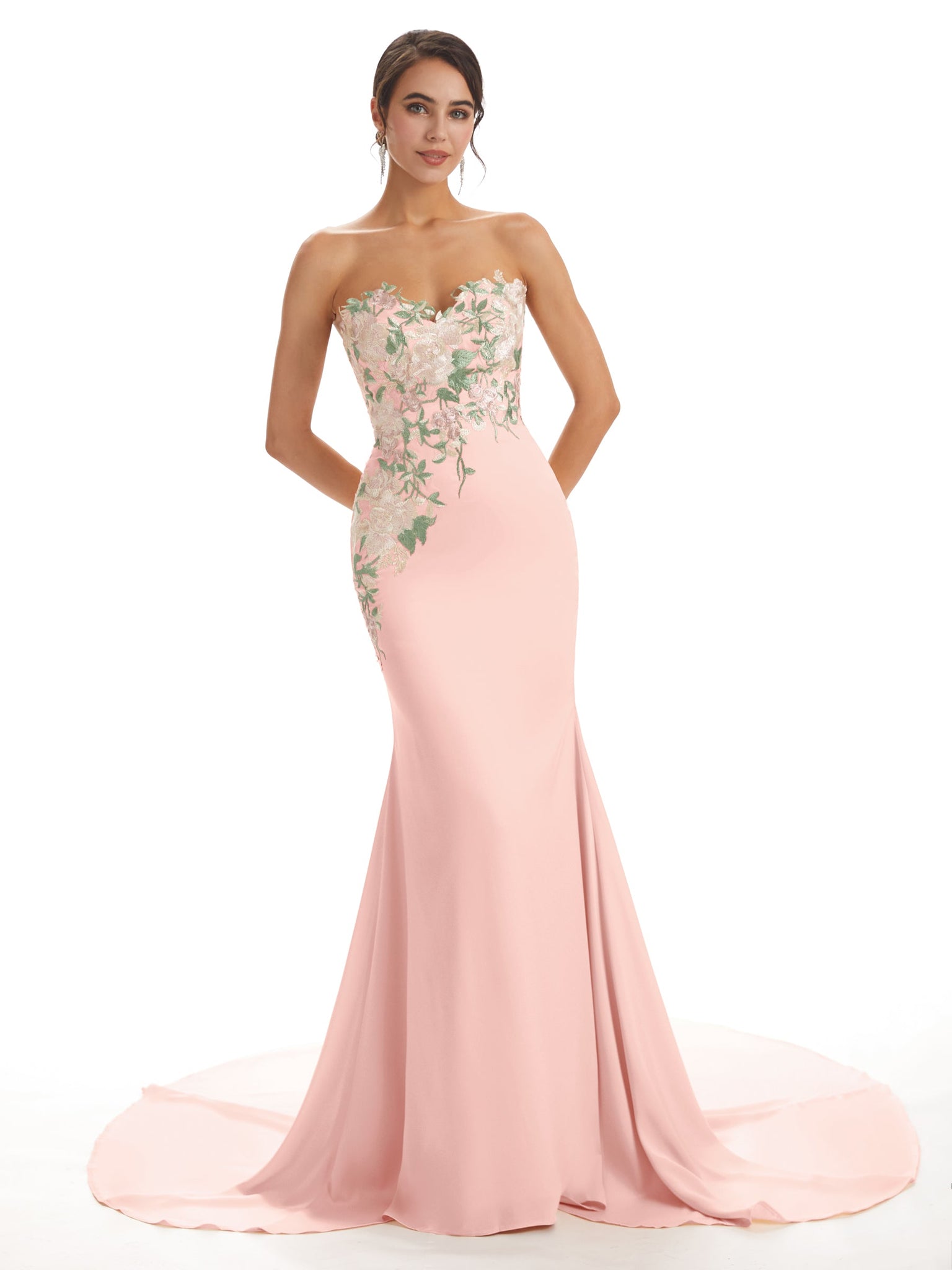 Modern Sweetheart Soft Satin Lace Applique Mermaid Long Wedding Bridesmaid Dresses - ChicSew – ChicSew