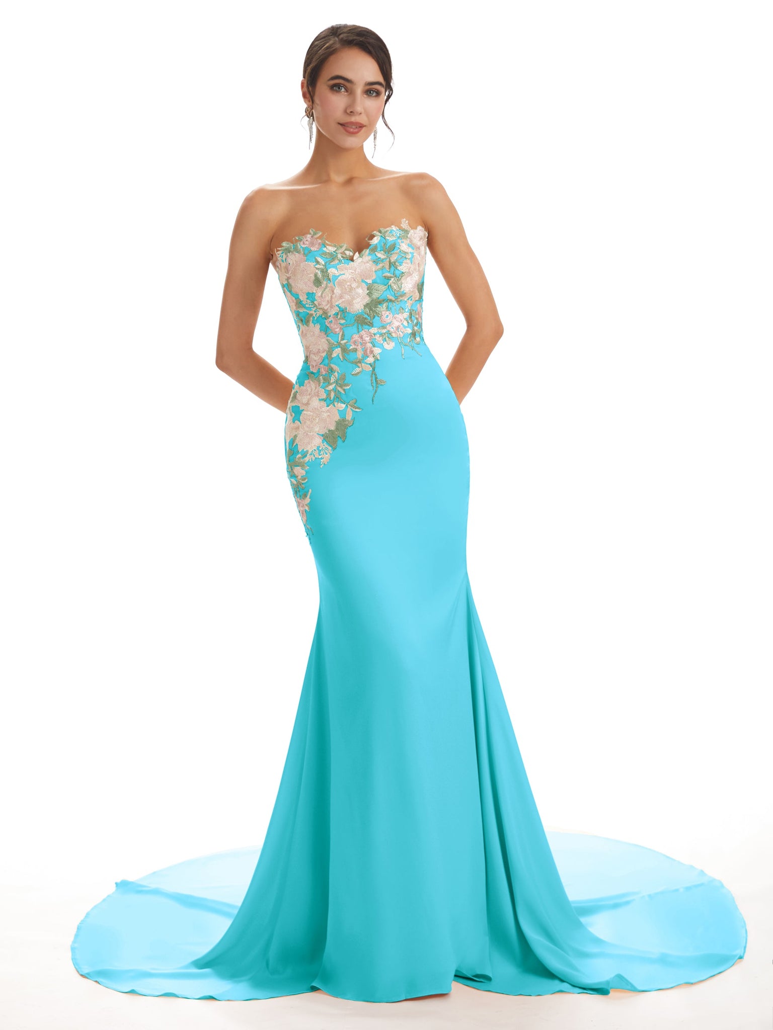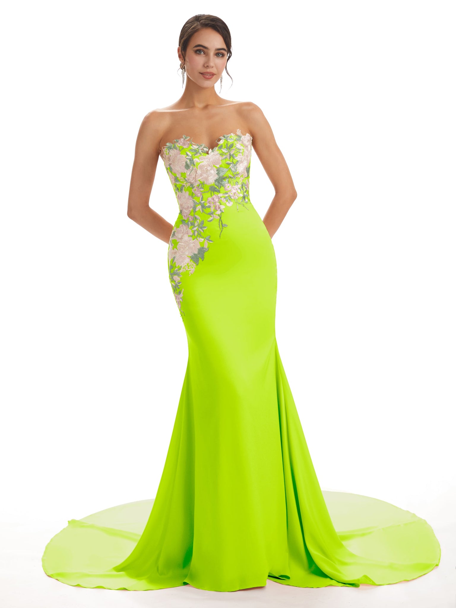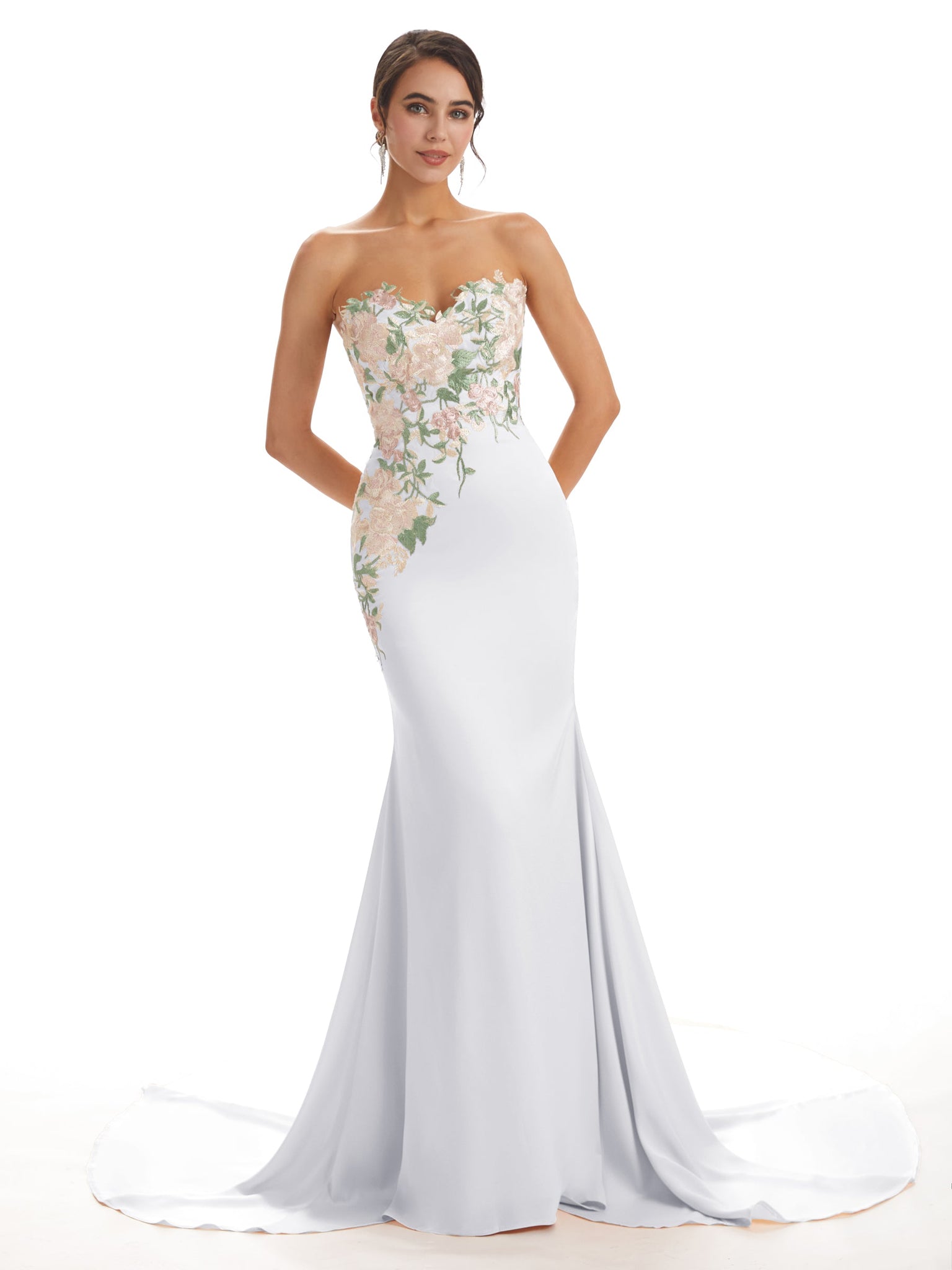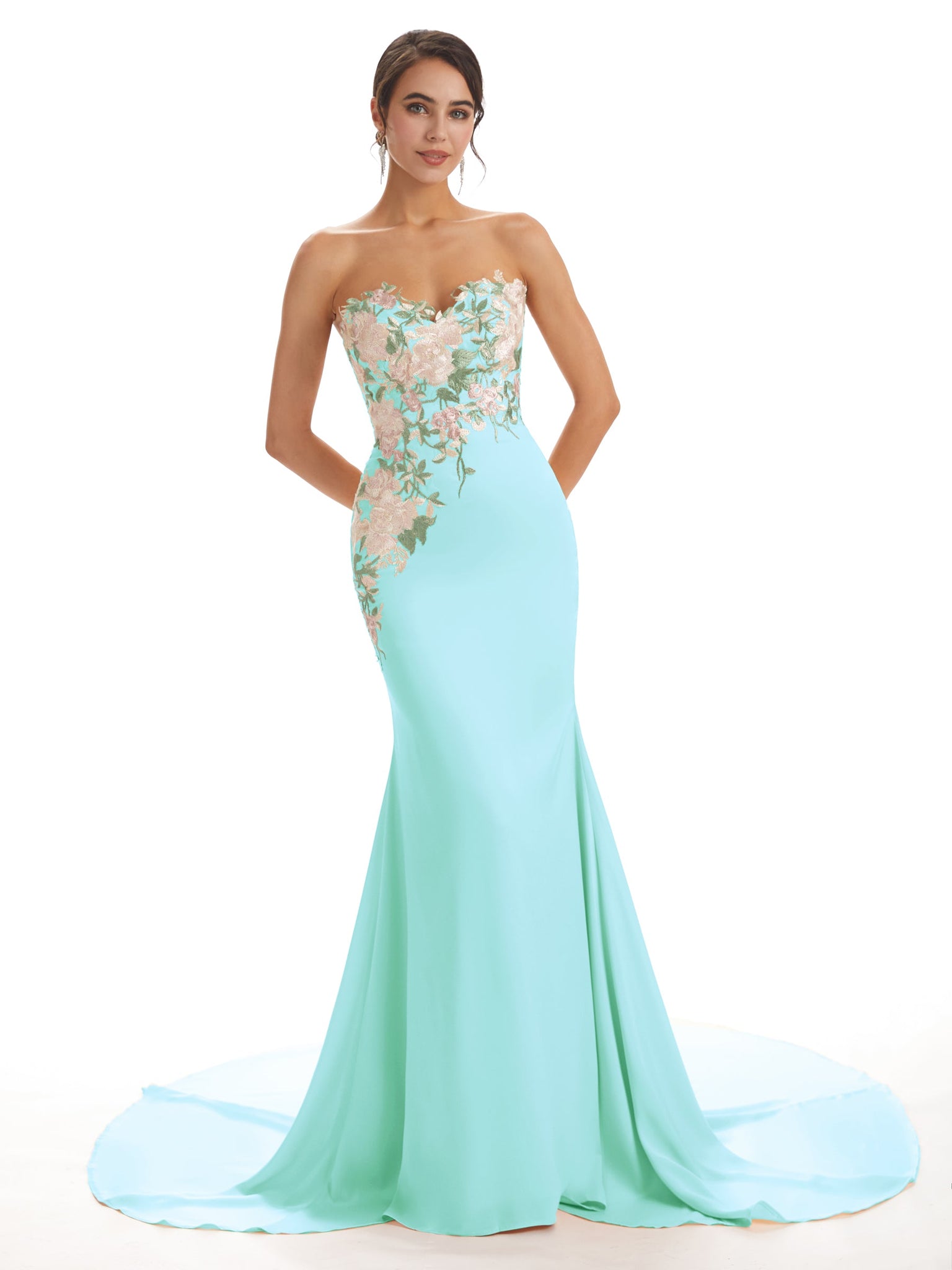 Modern Sweetheart Soft Satin Lace Applique Mermaid Long Wedding Bridesmaid Dresses - ChicSew – ChicSew