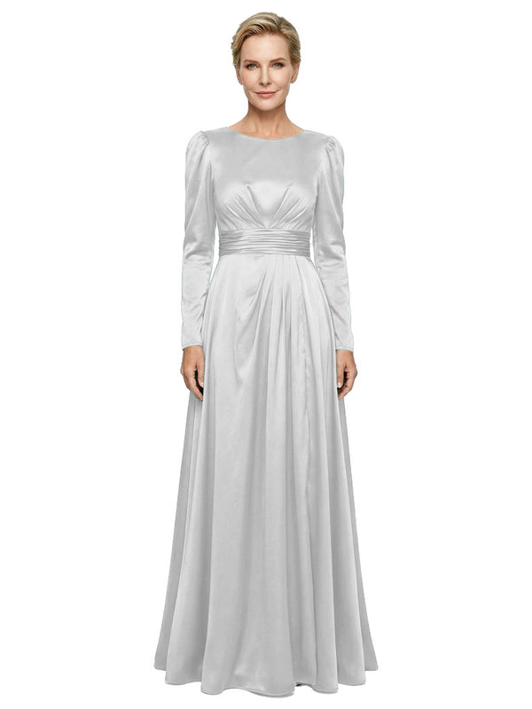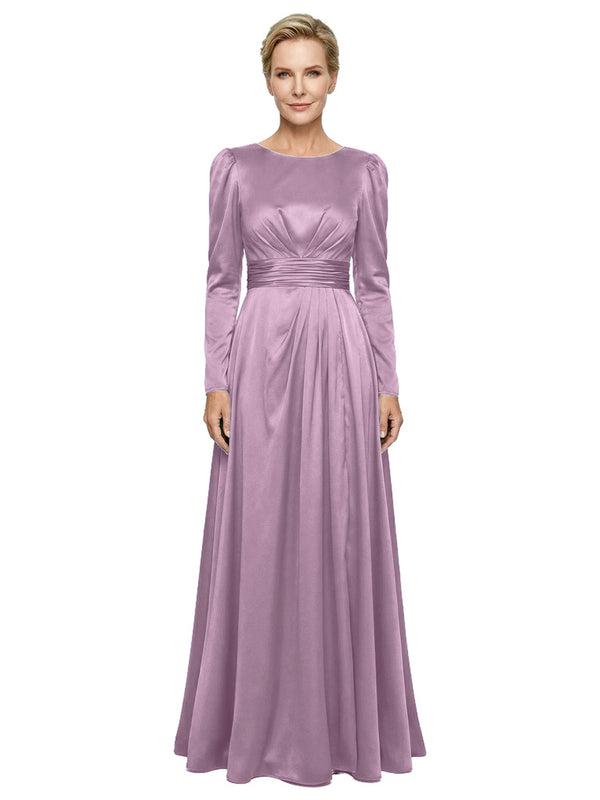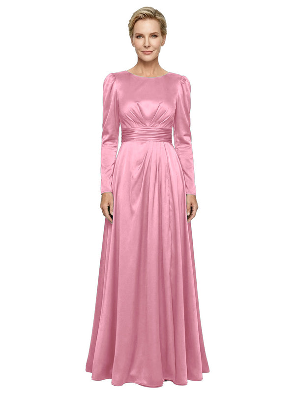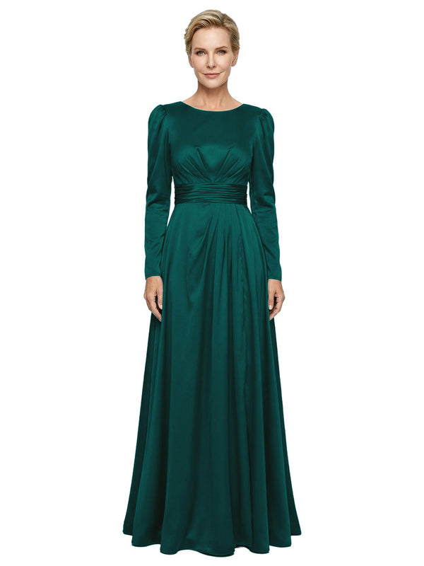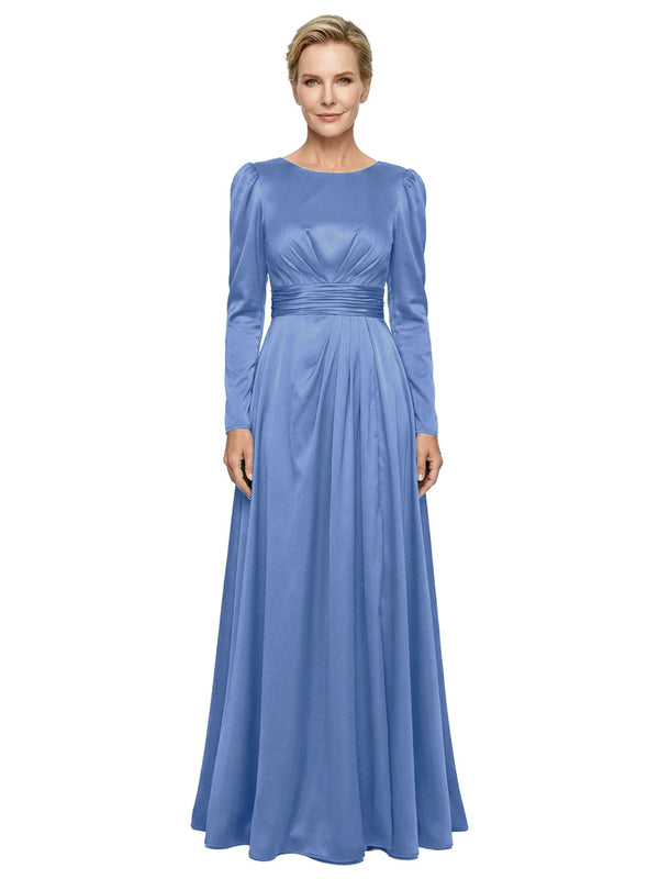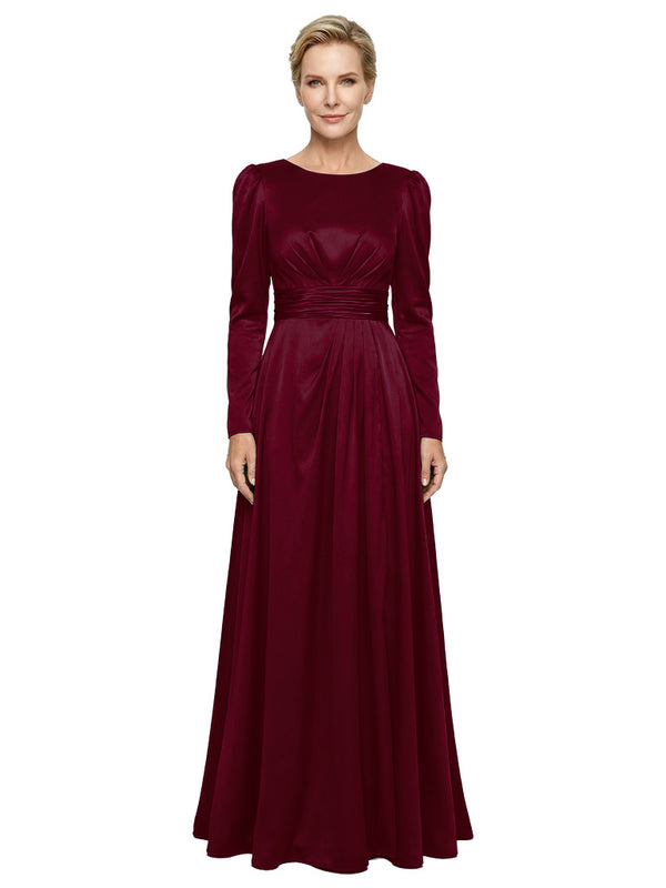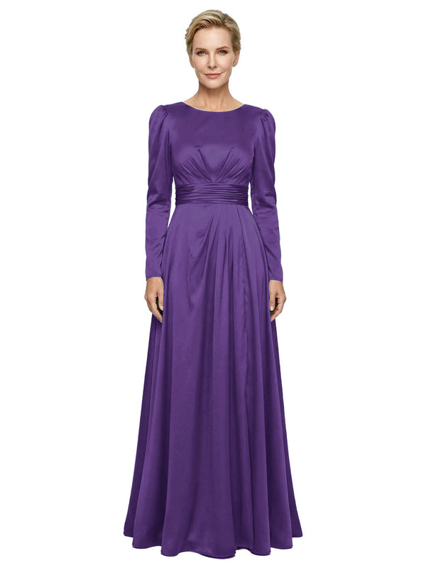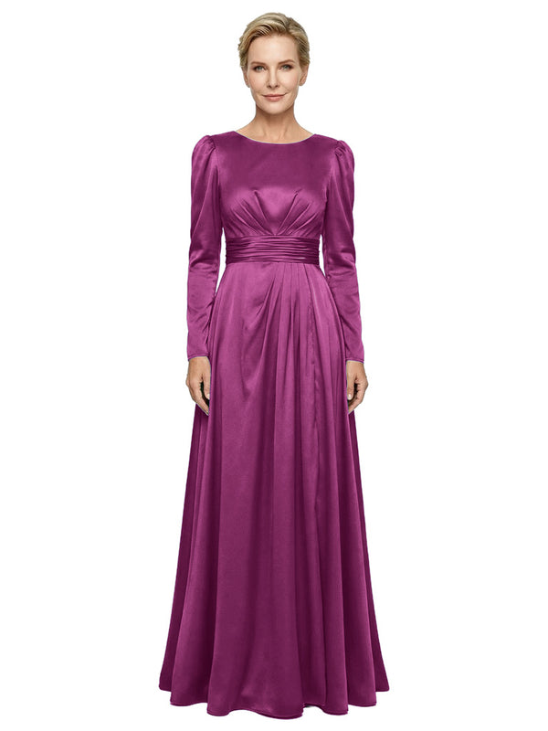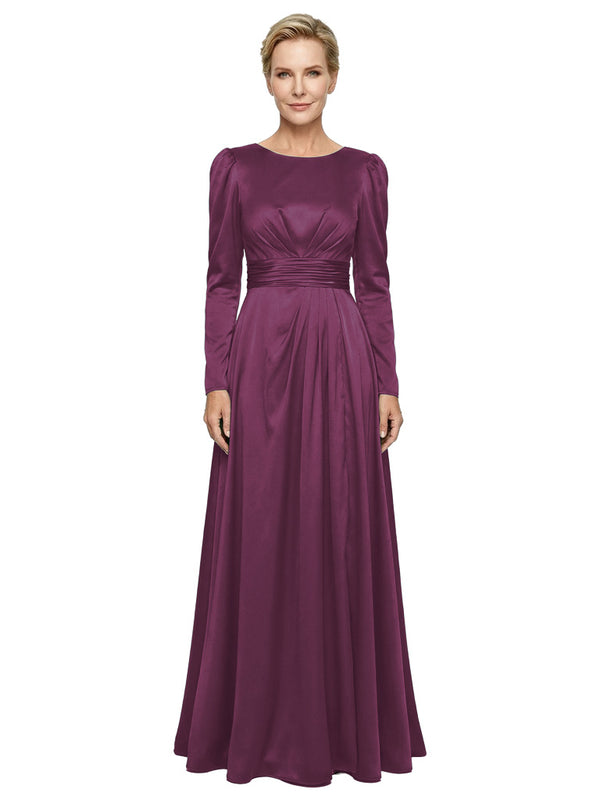 Modest Long Sleeves Scoop Neckline Satin Pleated Mother Of The Bride Gown- ChicSew – ChicSew