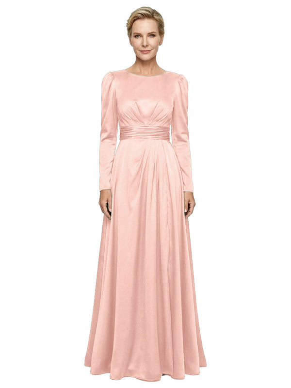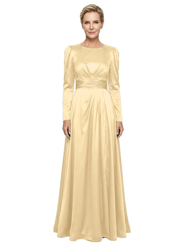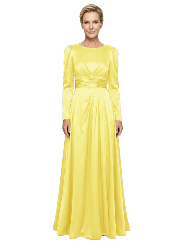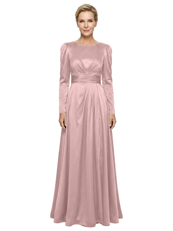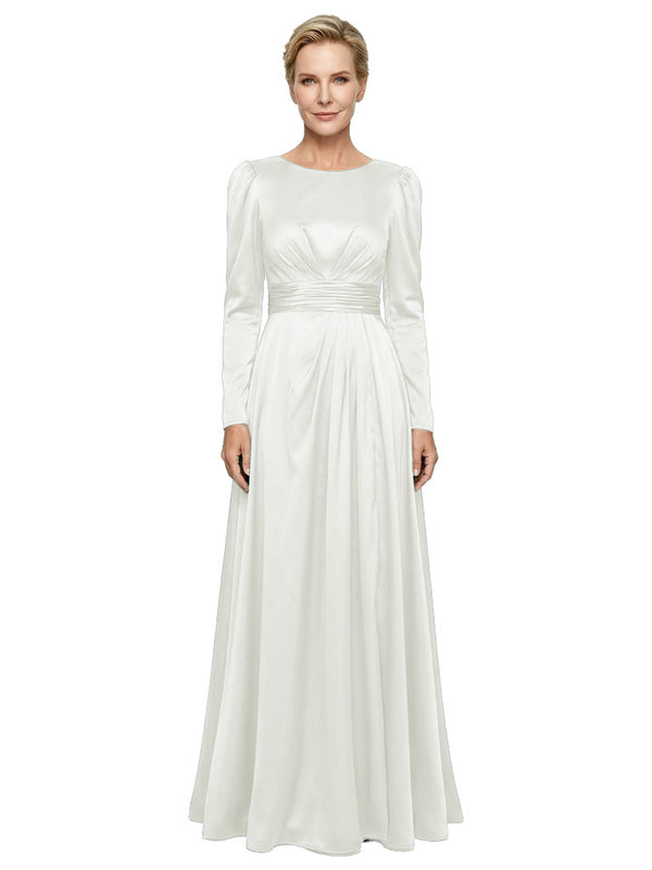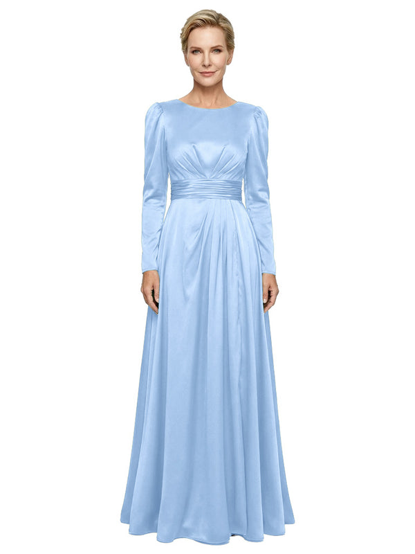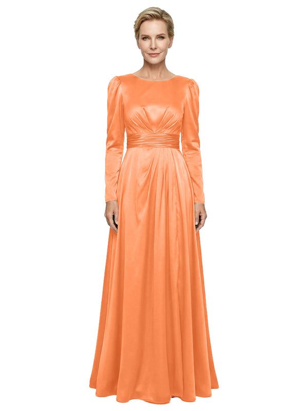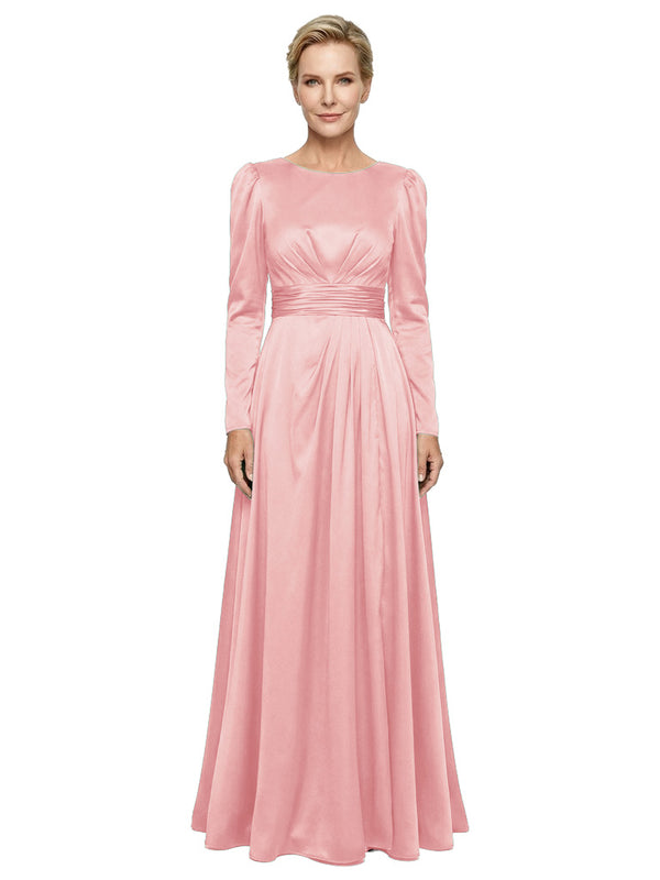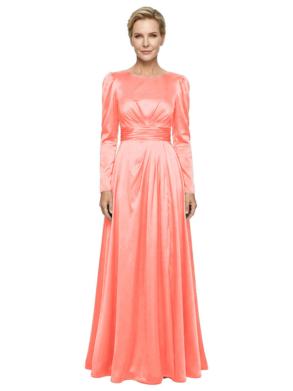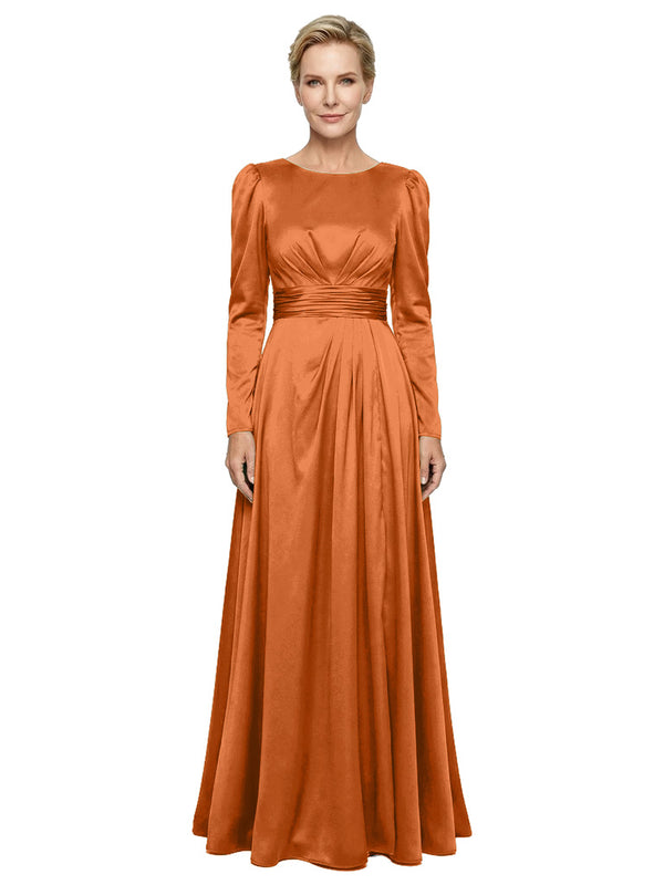 Modest Long Sleeves Scoop Neckline Satin Pleated Mother Of The Bride Gown- ChicSew – ChicSew