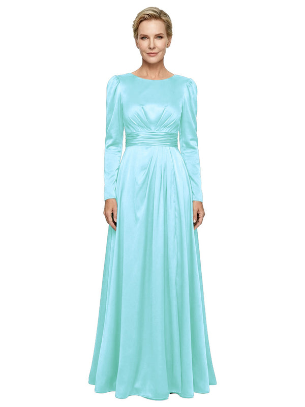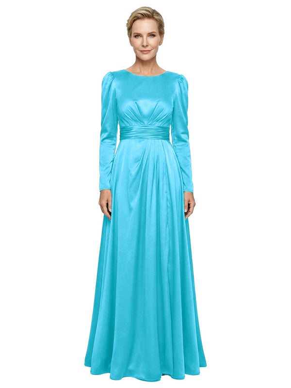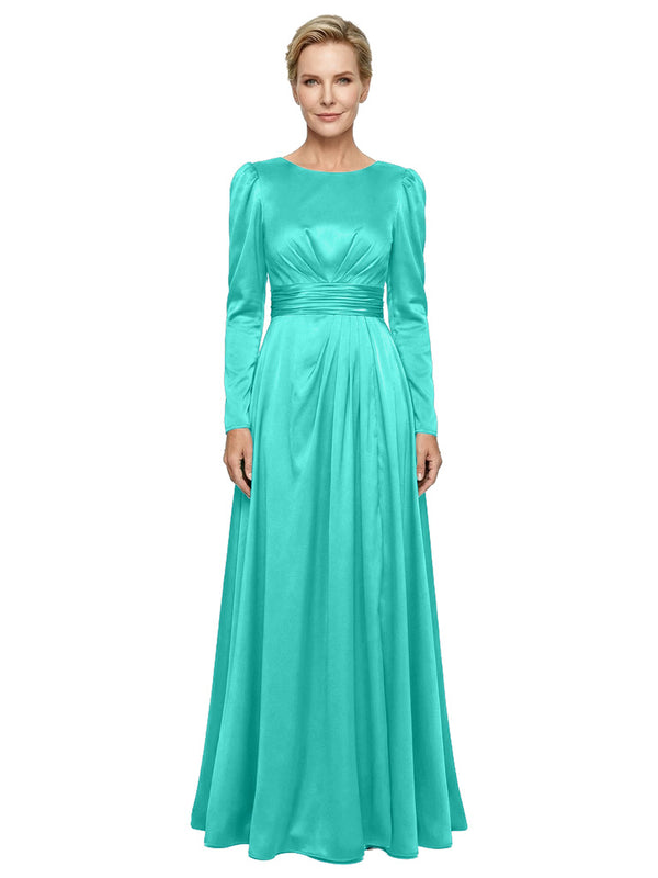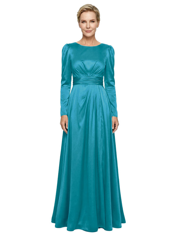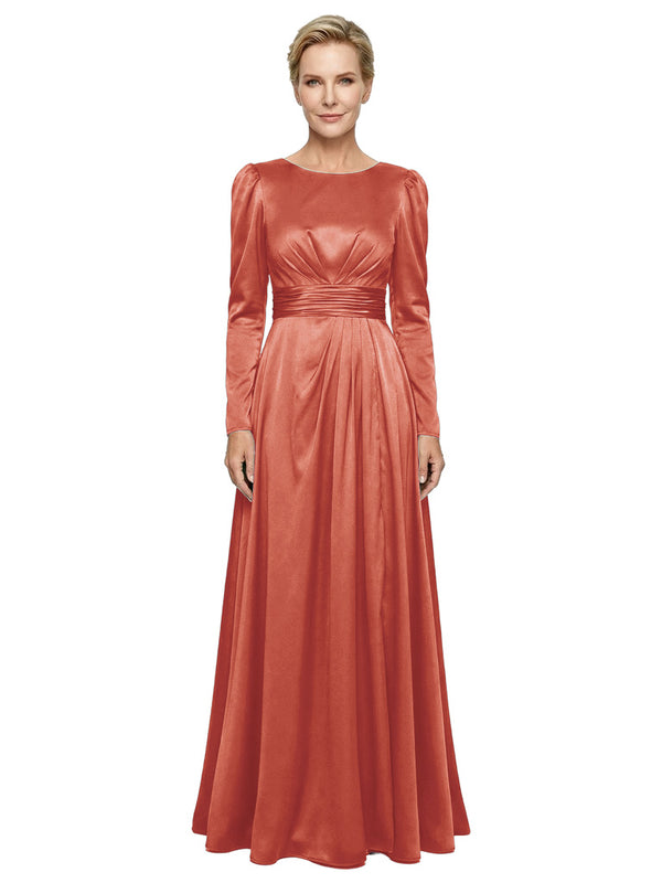 Modest Long Sleeves Scoop Neckline Satin Mother Of The Bride Gown