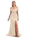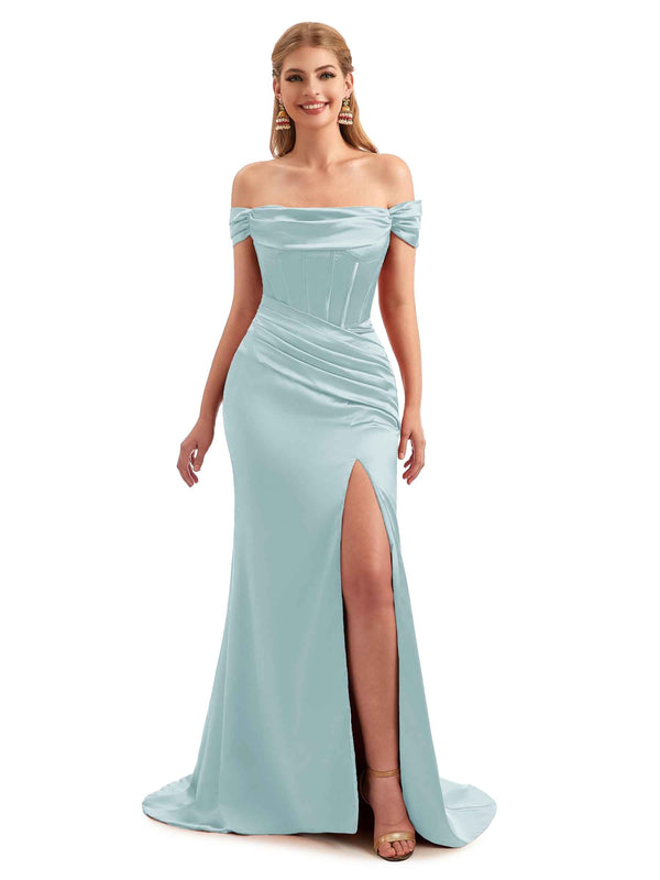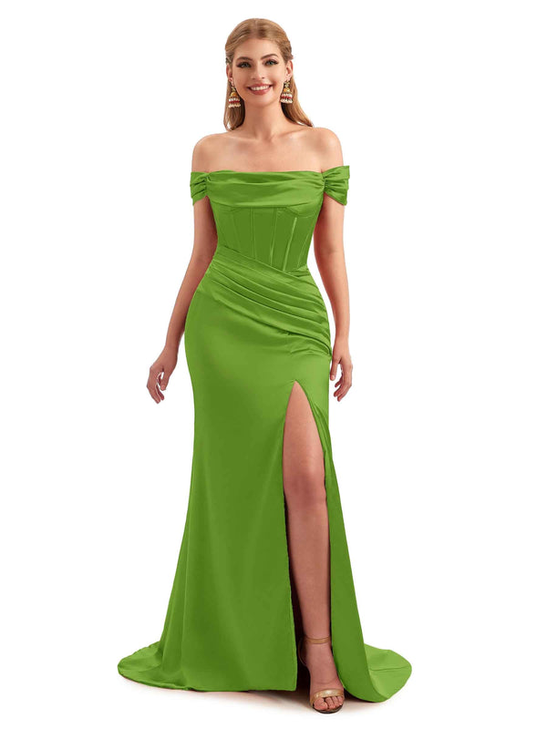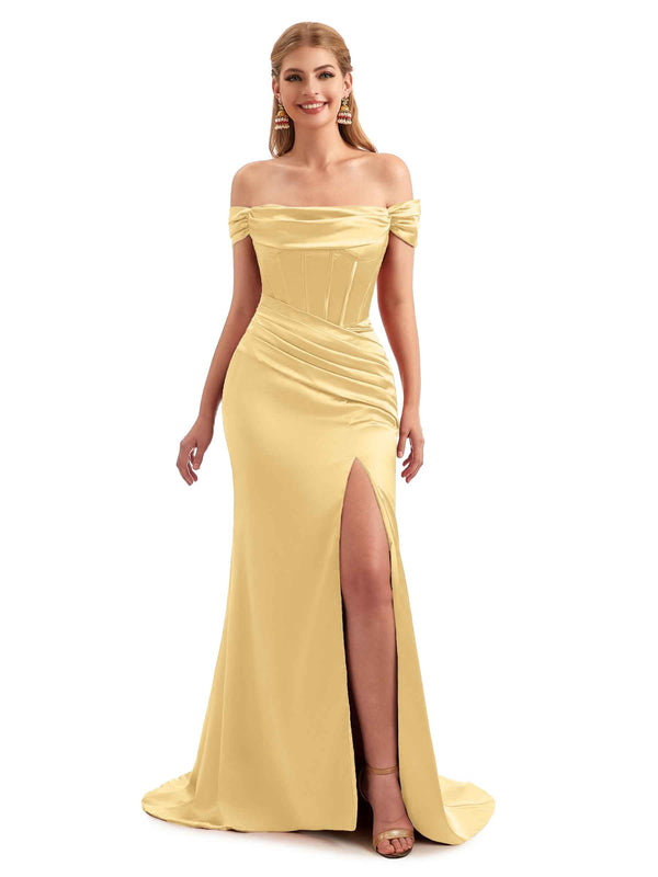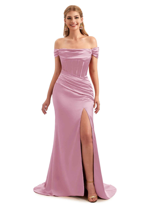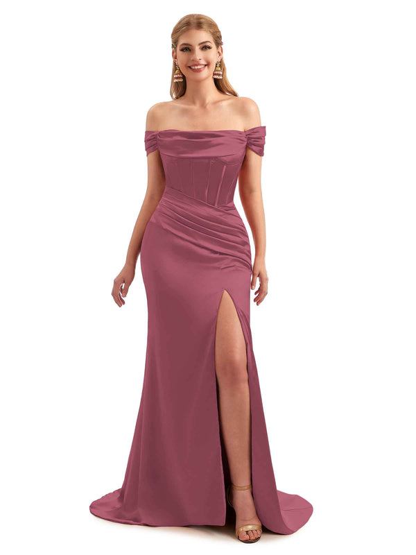 Off-Shoulder Corset Boho Floor-Length Satin Bridesmaid Dress