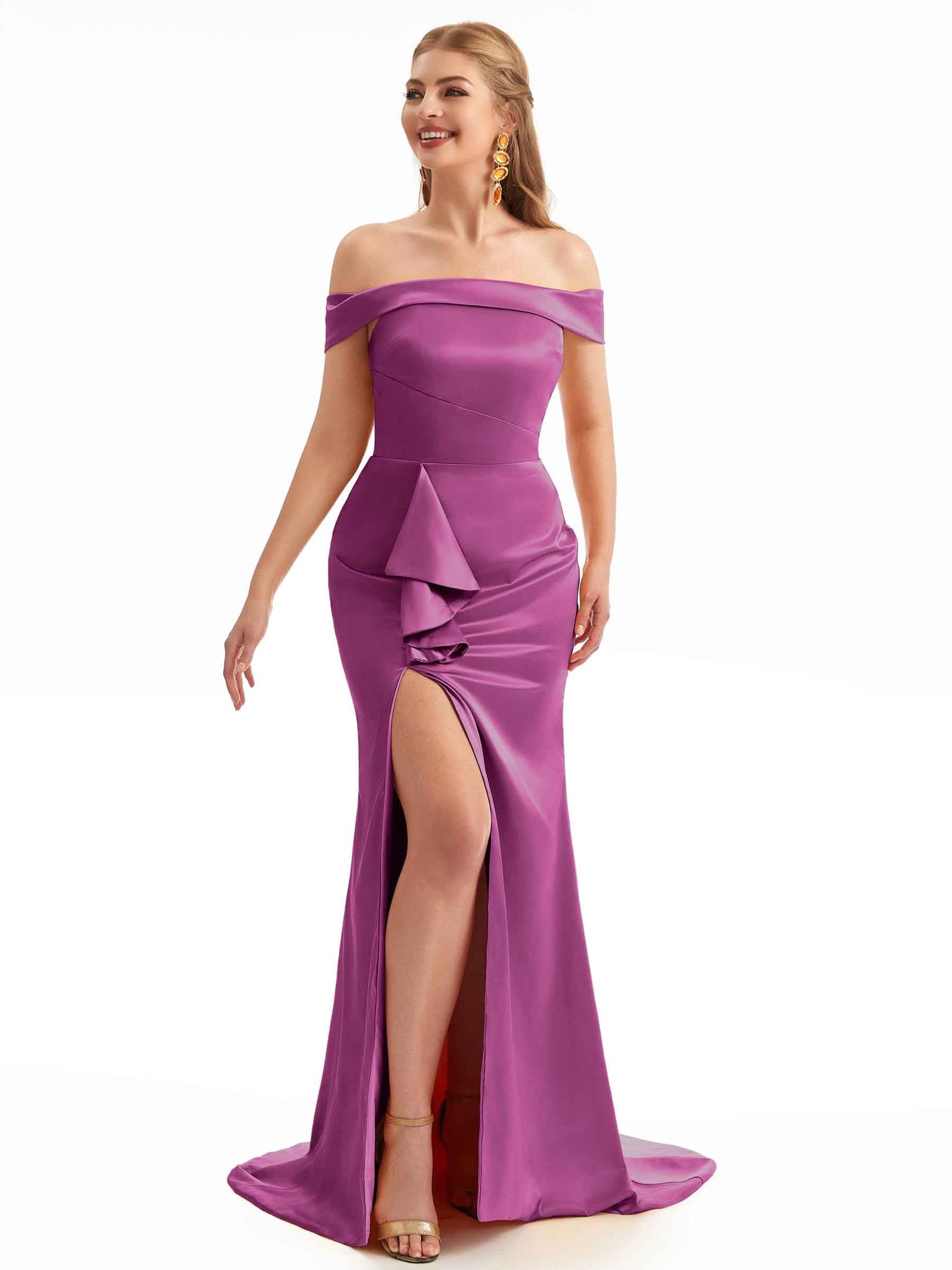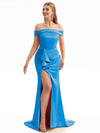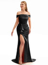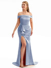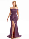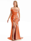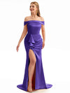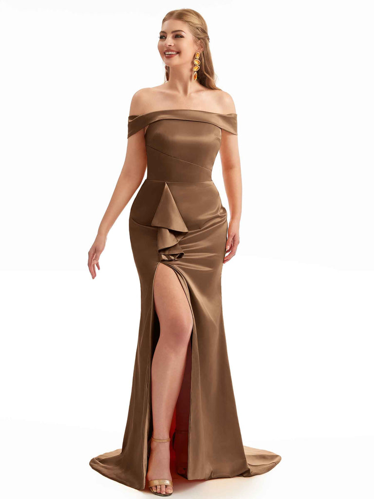 Off The Shoulder Champagne Satin Silky Bridesmaid Dresses