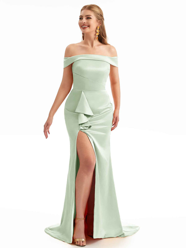 Off The Shoulder Summer Satin Silky Bridesmaid Dresses