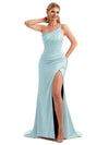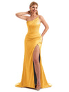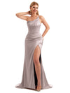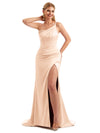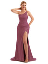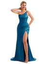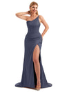 One Shoulder Satin Black Formal Bridesmaid Dresses