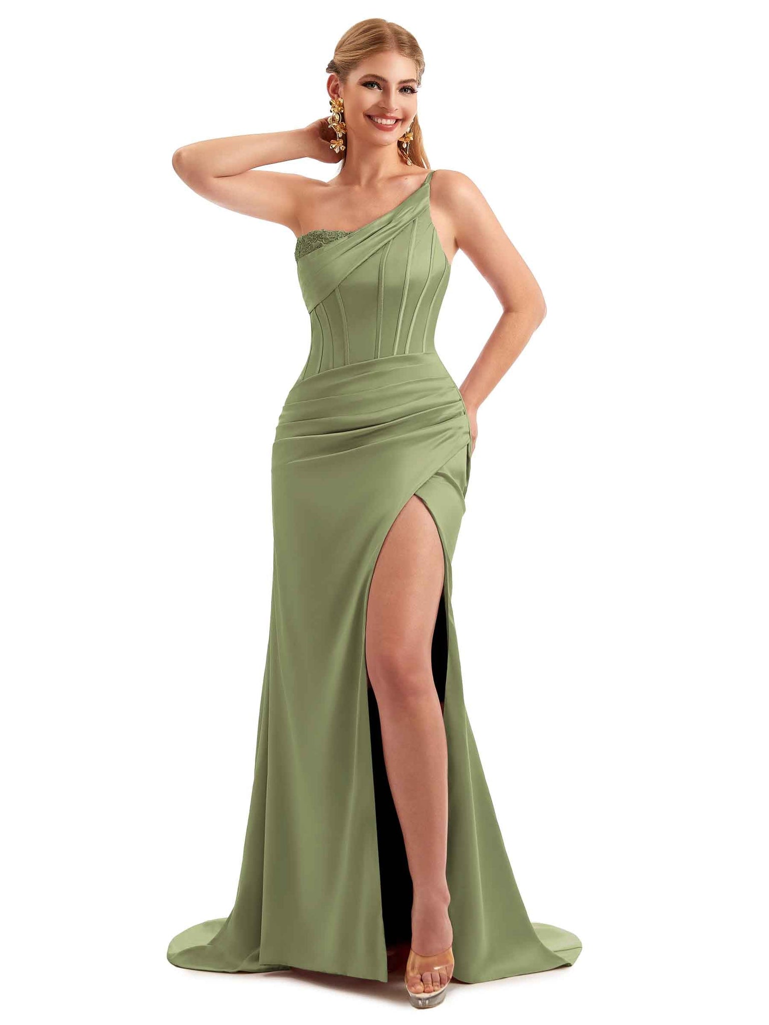 One Shoulder Satin Black Formal Bridesmaid Dresses - ChicSew – ChicSew