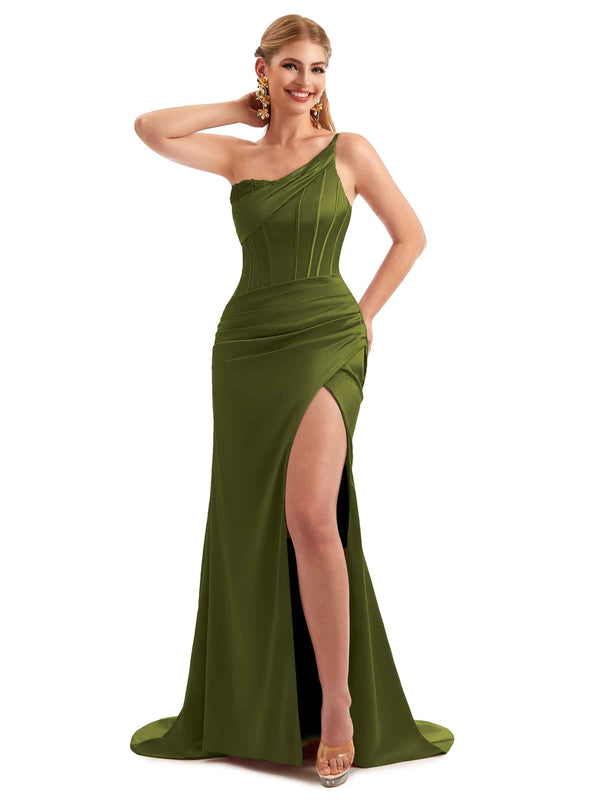 One Shoulder Satin Fall Formal Bridesmaid Dresses - ChicSew – ChicSew