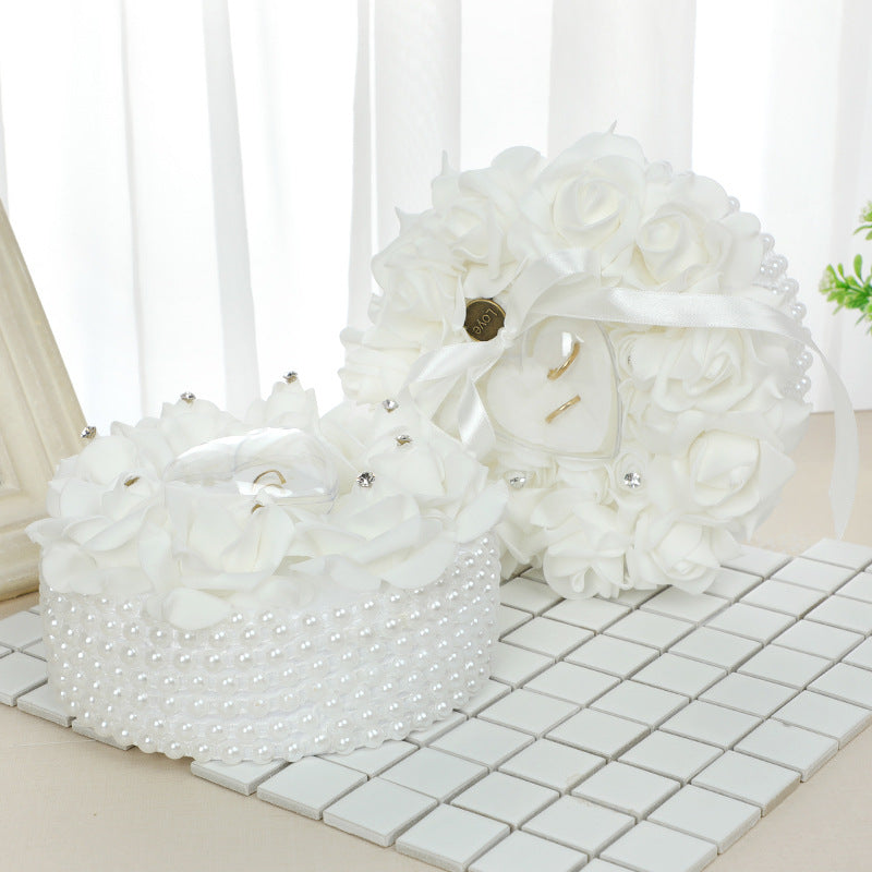 Pearl And Rose Accessories Wedding Ring Pillow Lace Creative Cake Shap – ChicSew