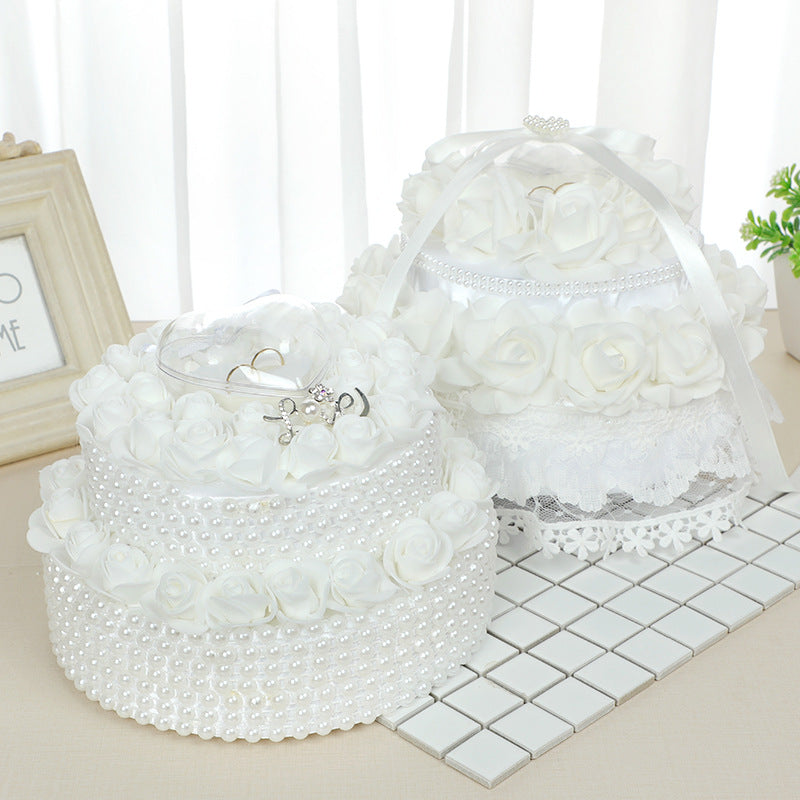 Pearl And Rose Accessories Wedding Ring Pillow Lace Creative Cake Shape Wedding Ring Box, 5904