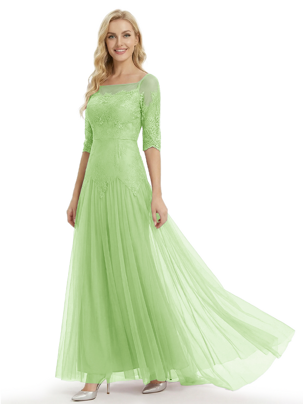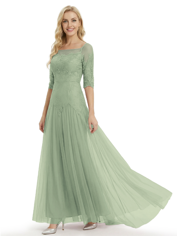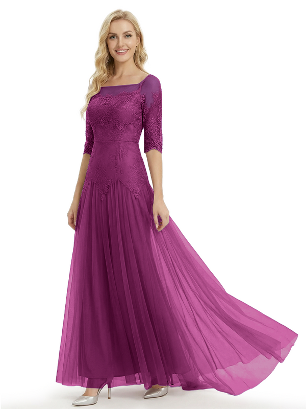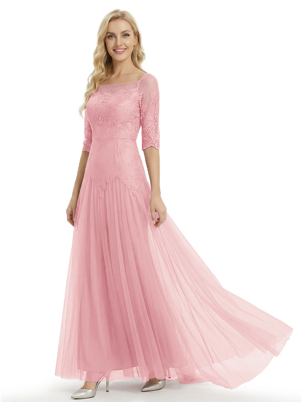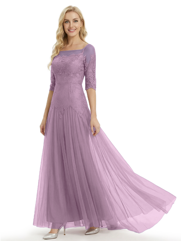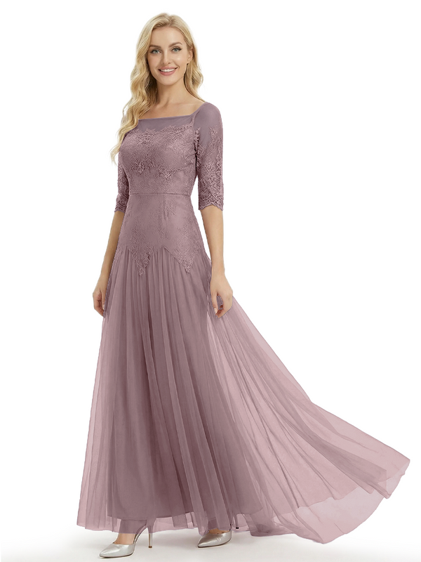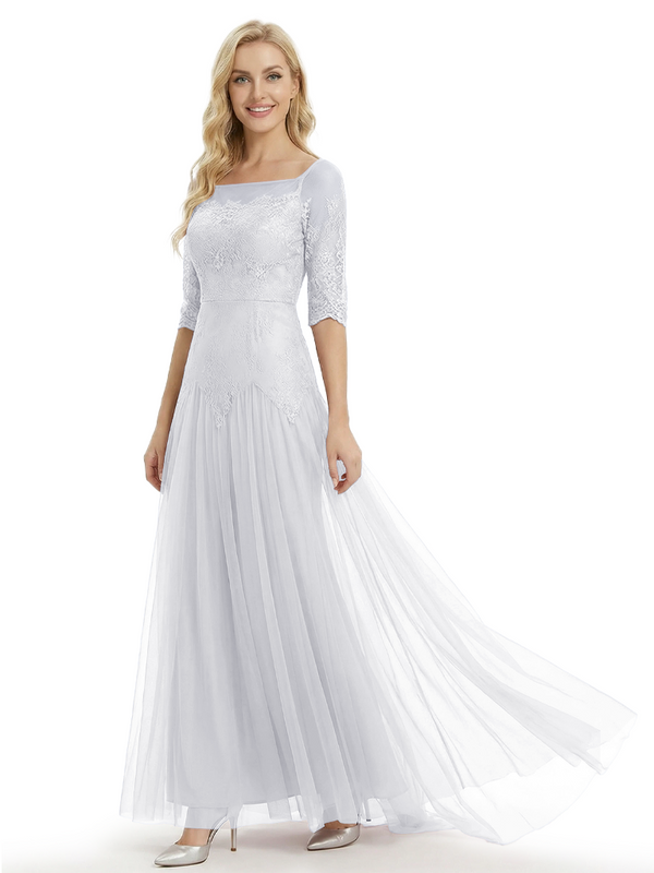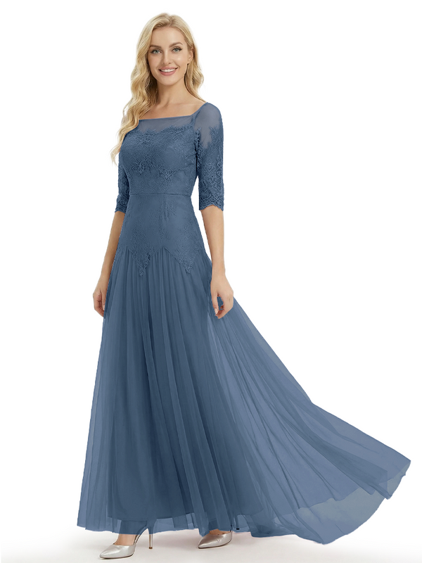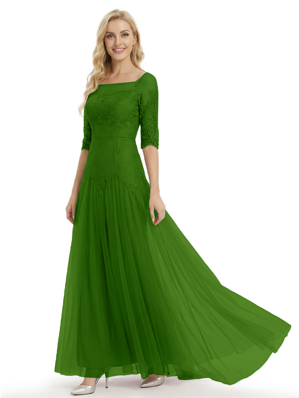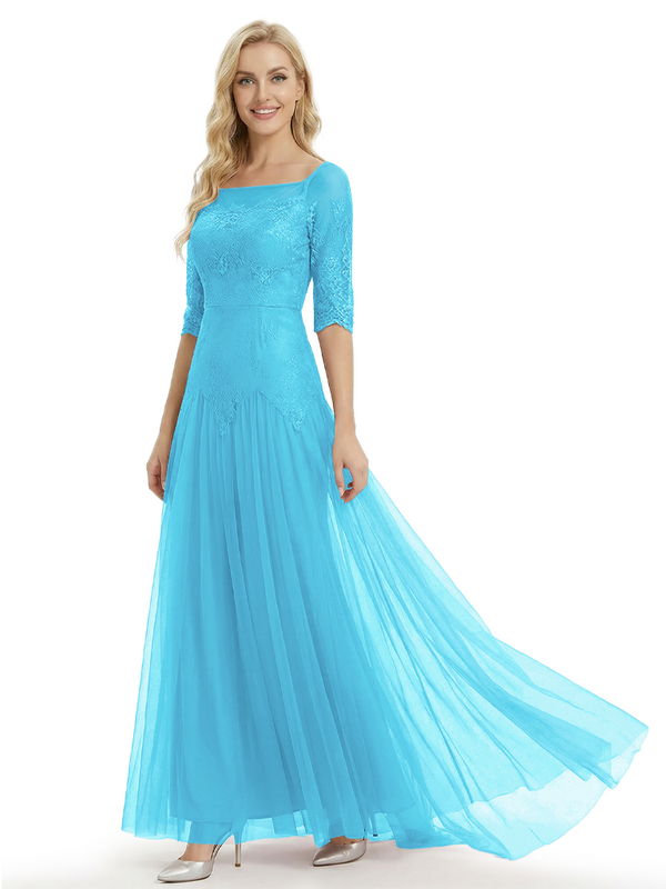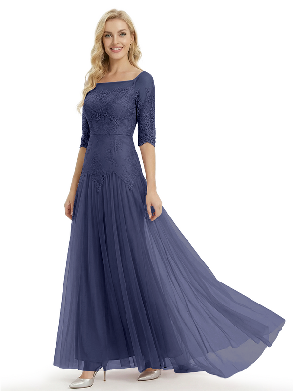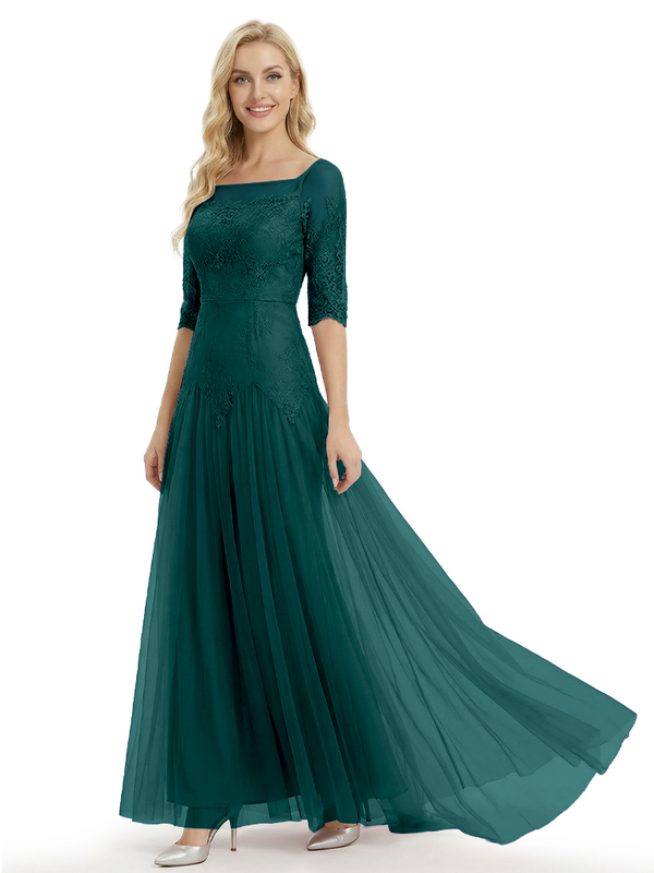 Pretty Lace Mother of the Groom Gown Chiffon Square Half Sleeves Maxi Dress - ChicSew – ChicSew