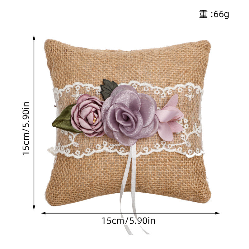 Purple Artificial Flower Lace Wedding Ring Pillow For Brides And Groom, JZH-5974