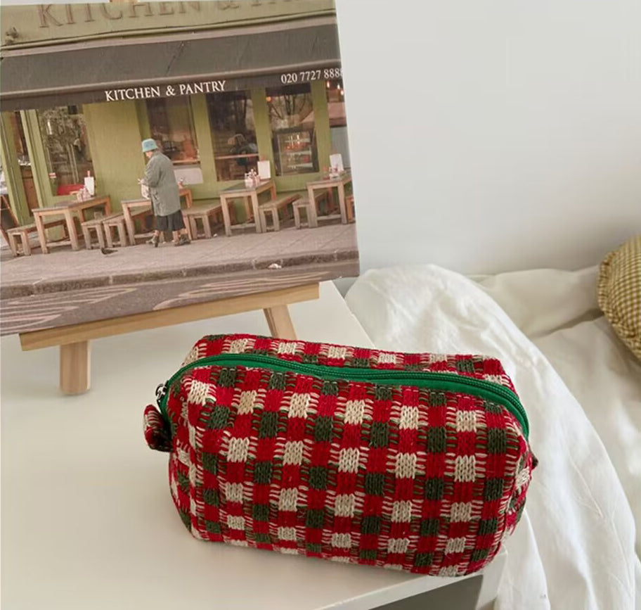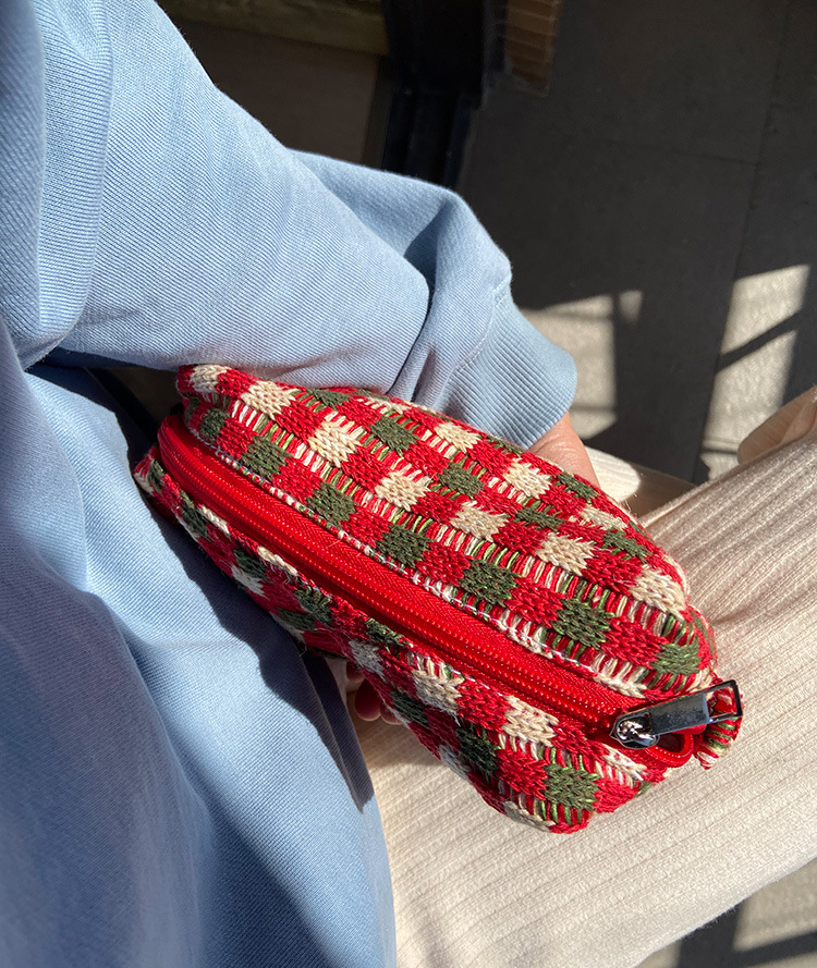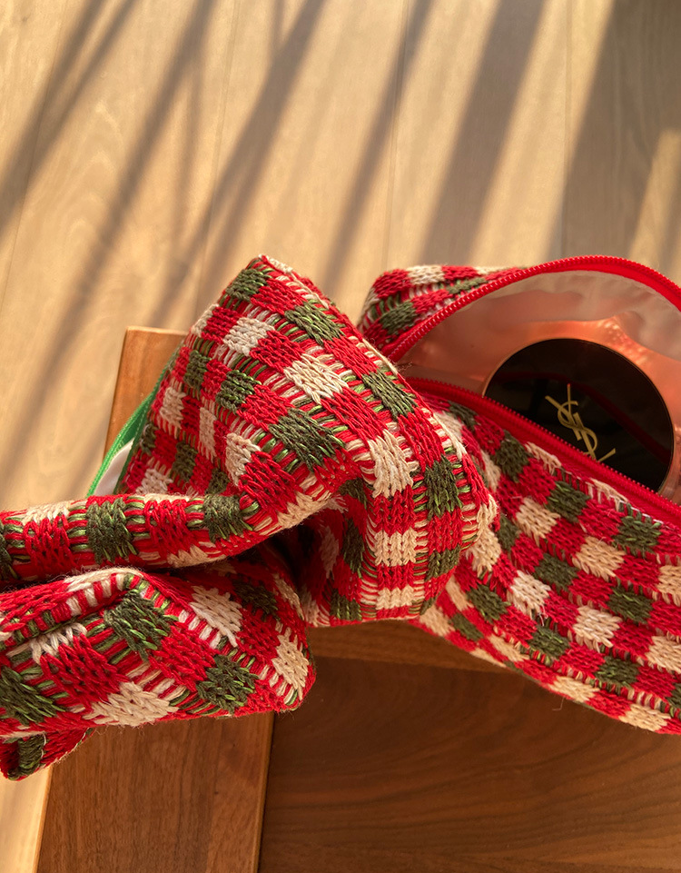 Retro Christmas Thick Knitted Plaid Portable Large-capacity Cosmetic B – ChicSew