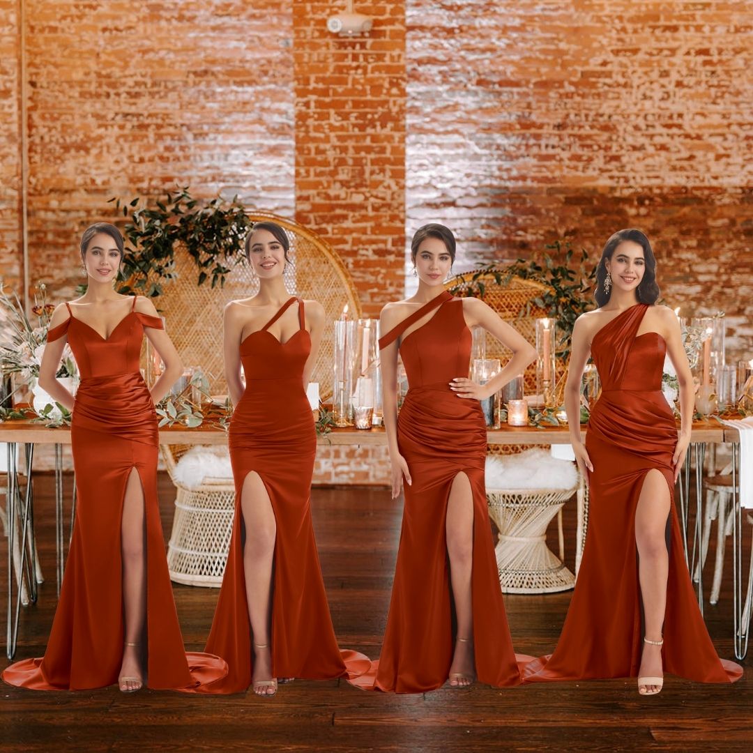 Rust Sexy Chic Silky Mismatched Soft Satin Mermaid Long Bridesmaid Dre – ChicSew