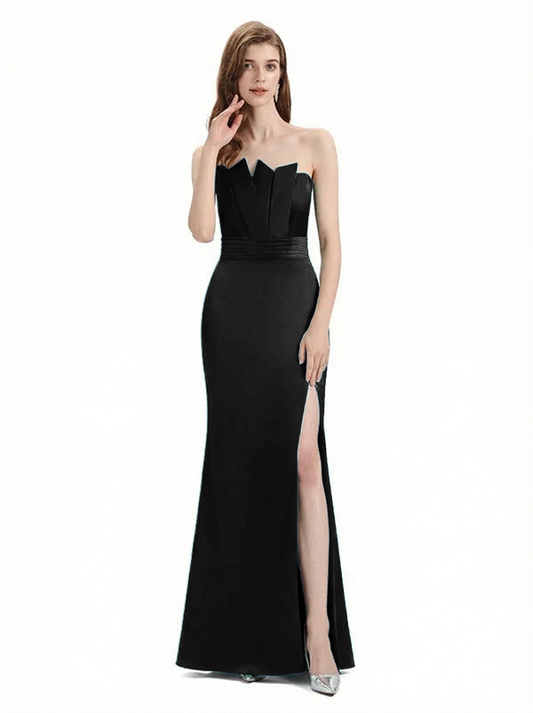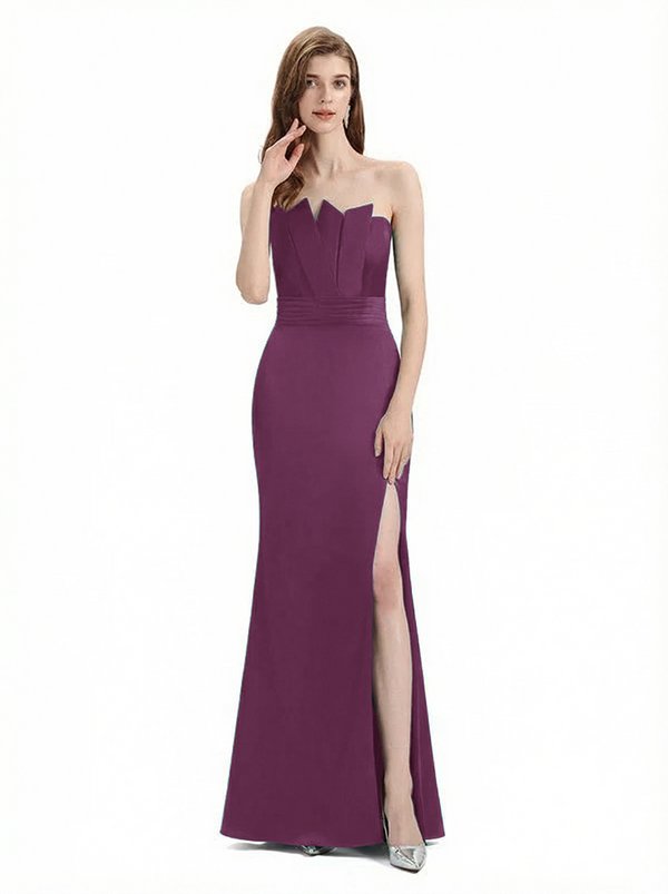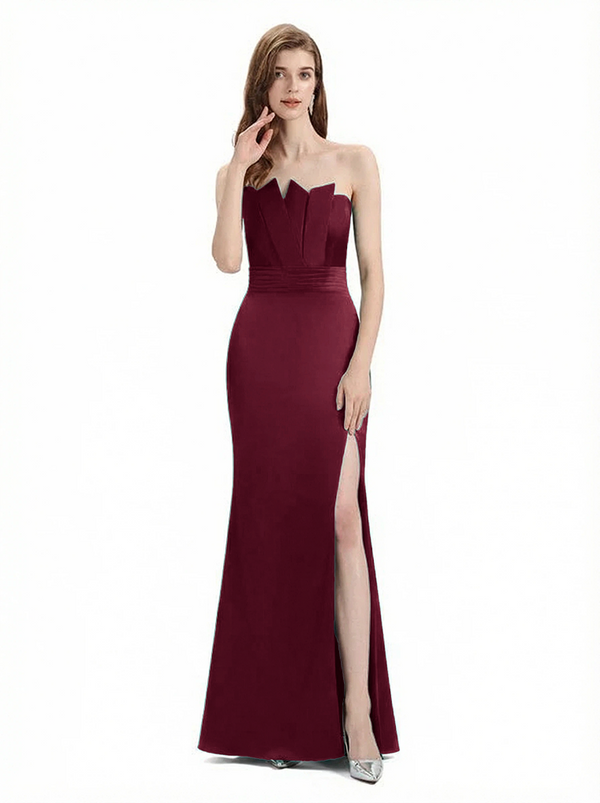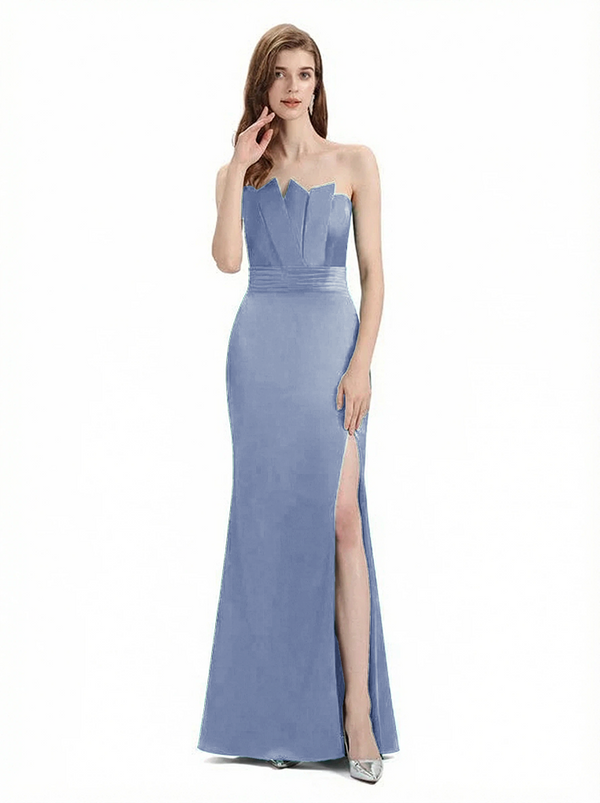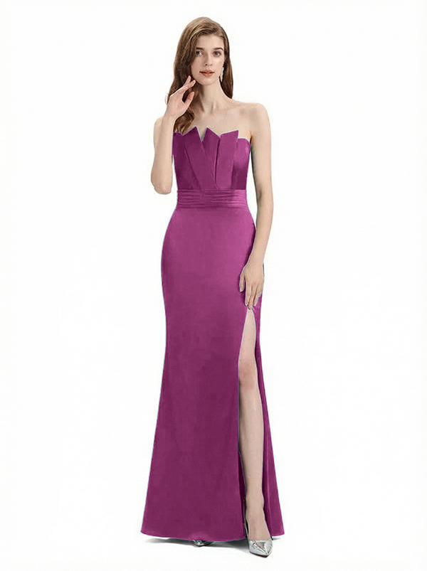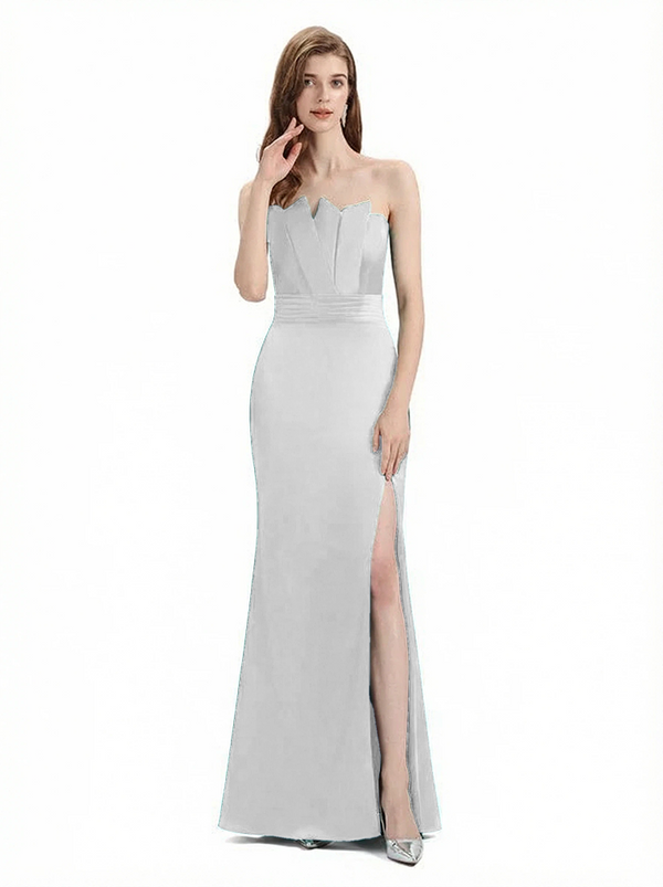 Sexy Asymmetrical Strapless Side Slit Mermaid Soft Satin Long Formal Dresses - ChicSew – ChicSew