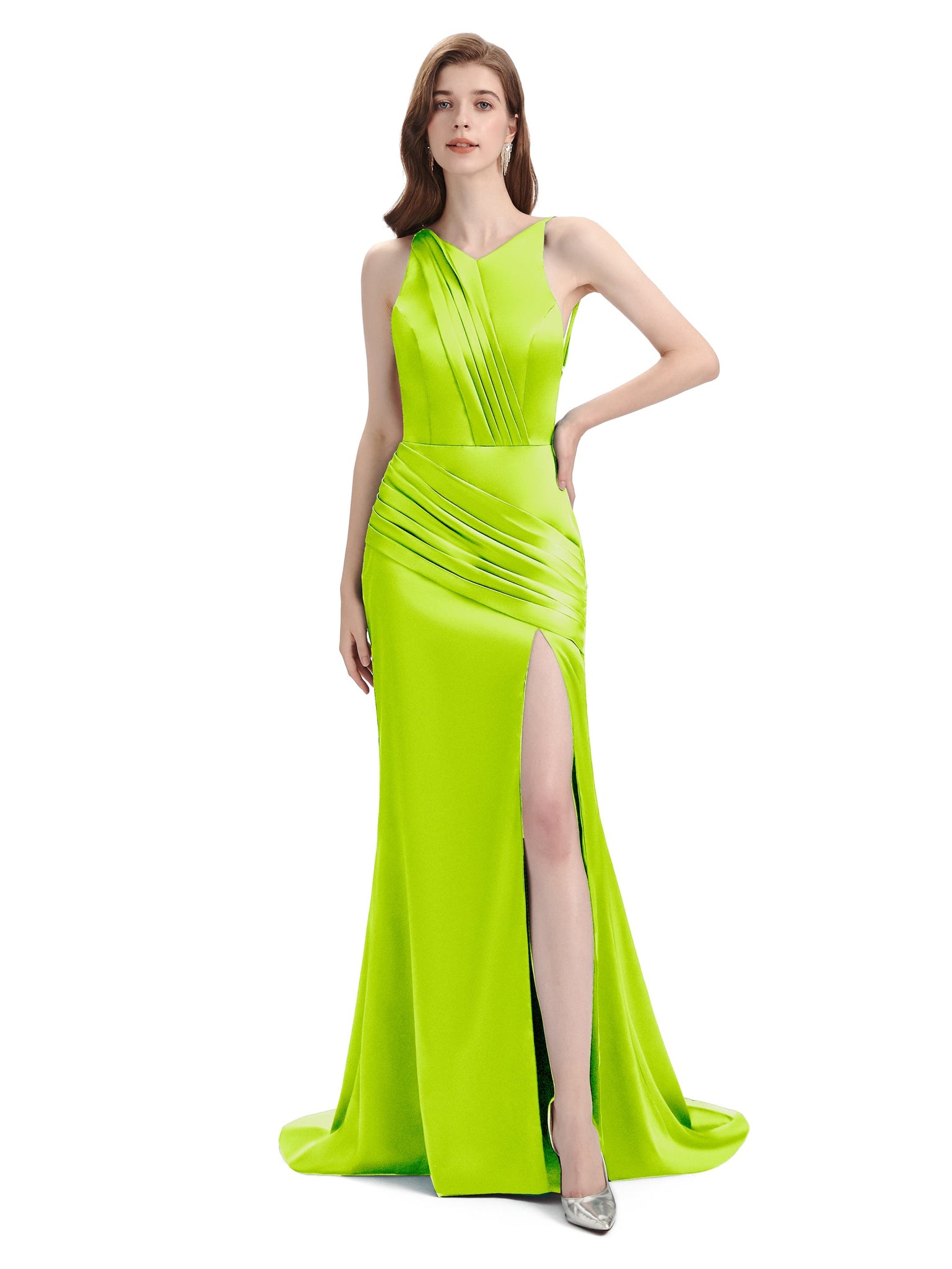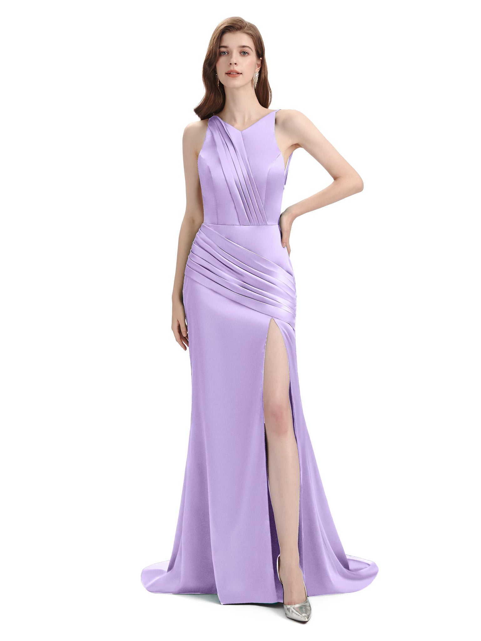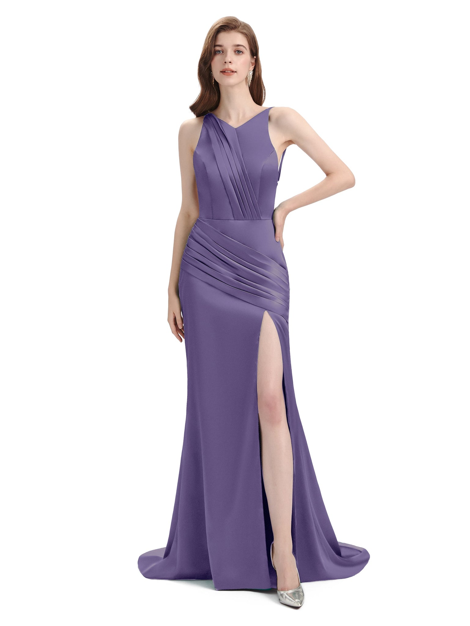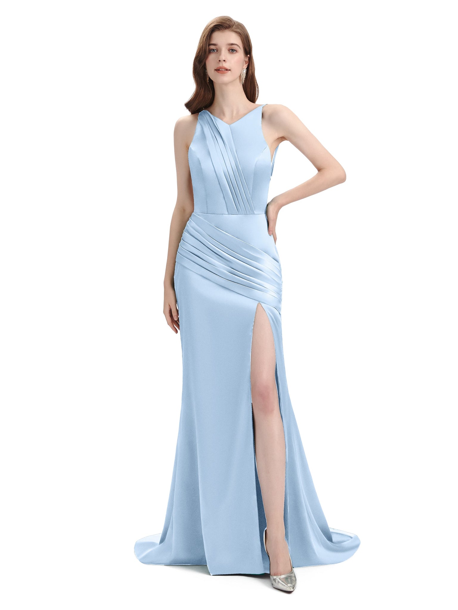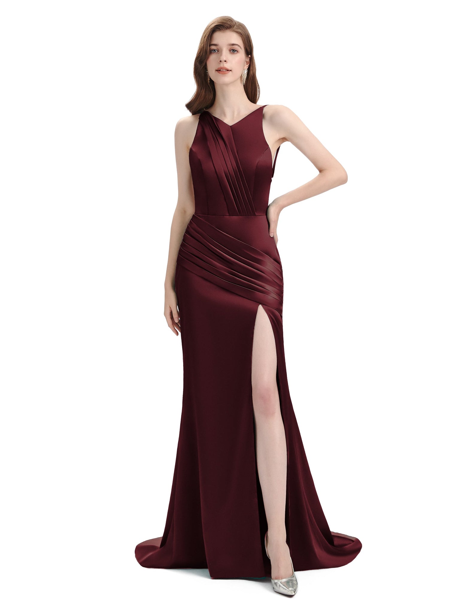 Sexy Backless Mermaid Side Slit Soft Satin Long Mermaid Formal Evening Dresses