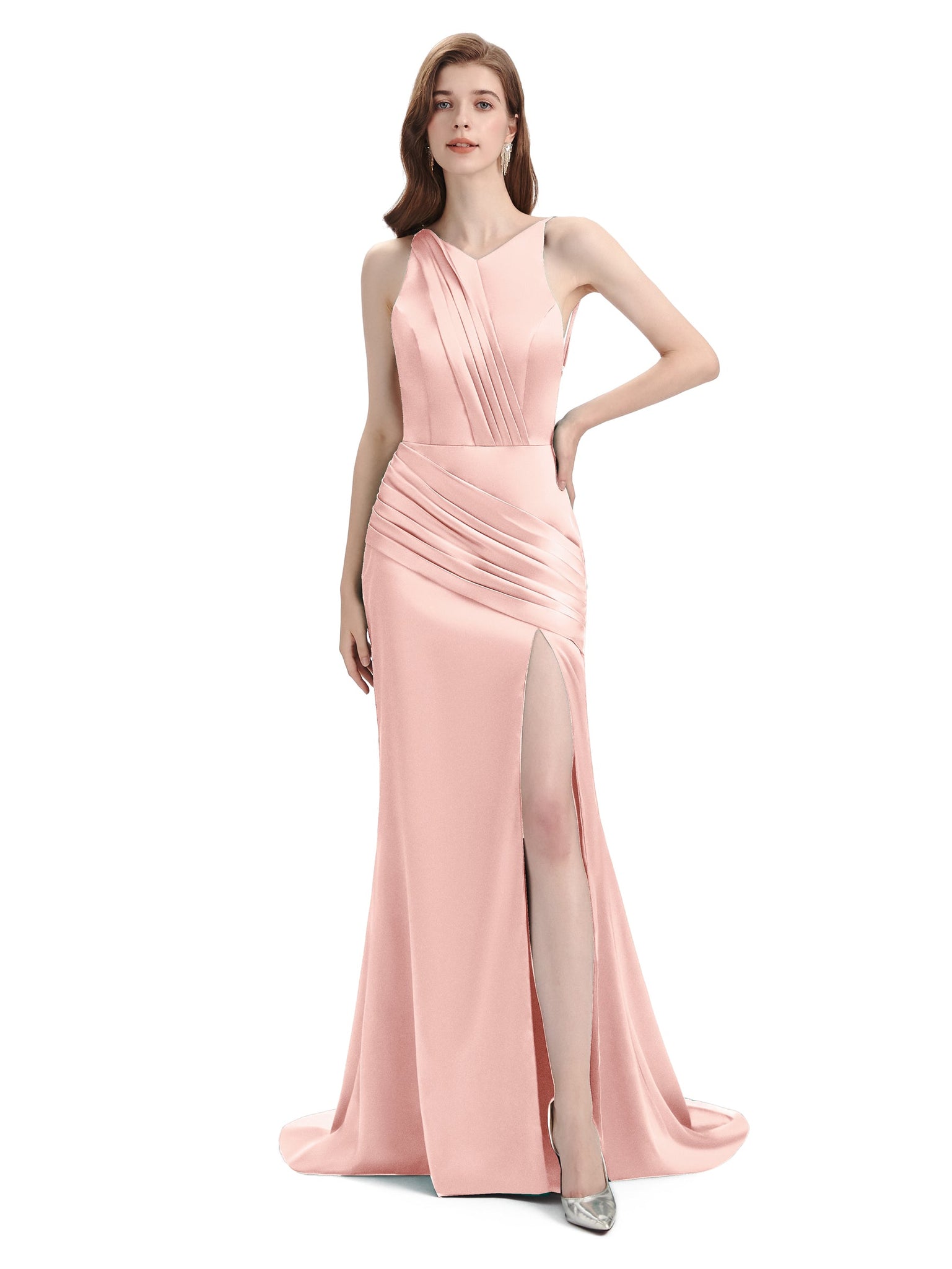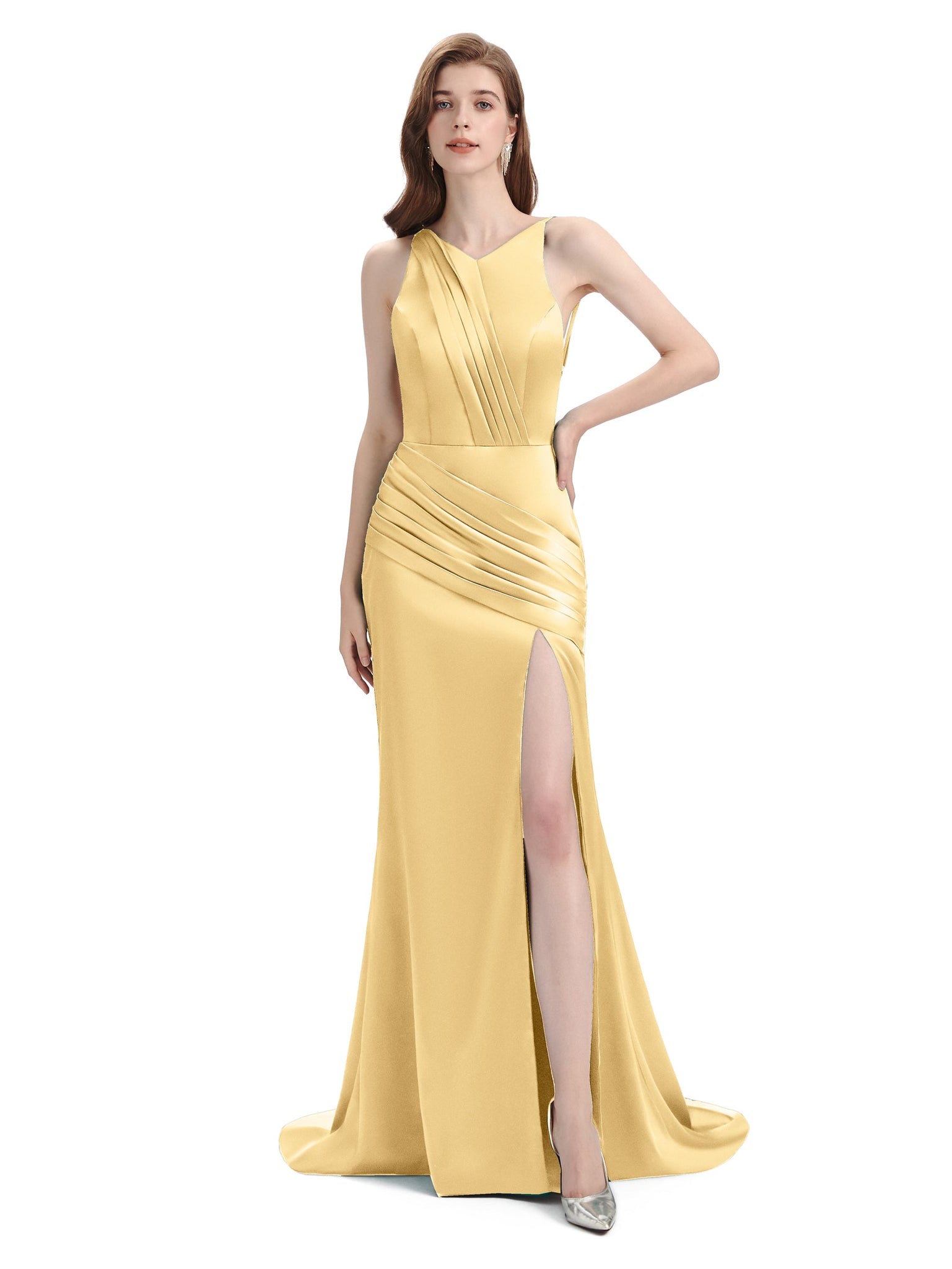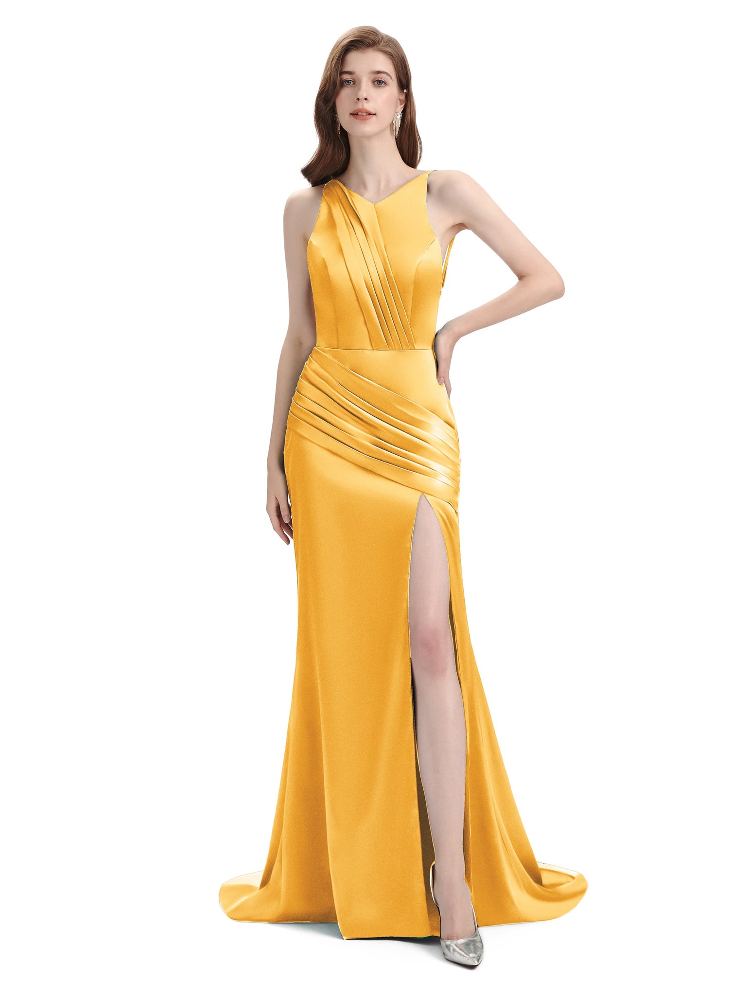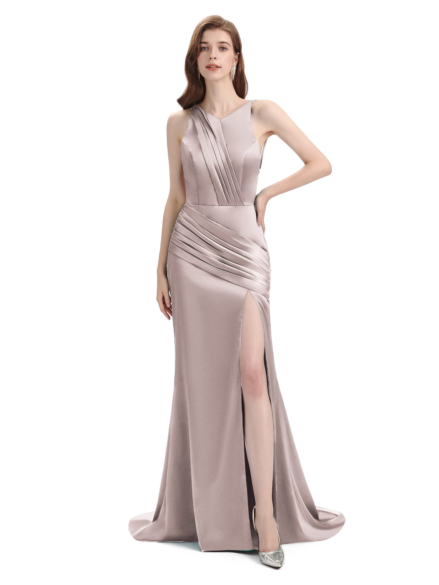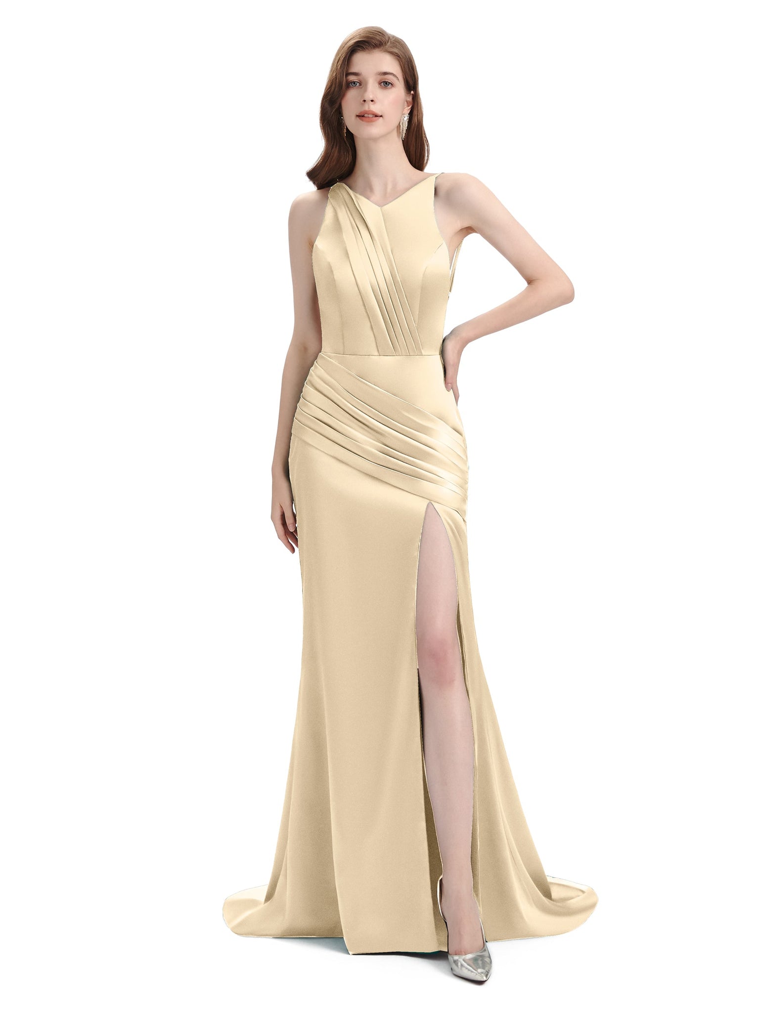 Sexy Backless Mermaid Side Slit Soft Satin Long Mermaid Formal Evening Dresses