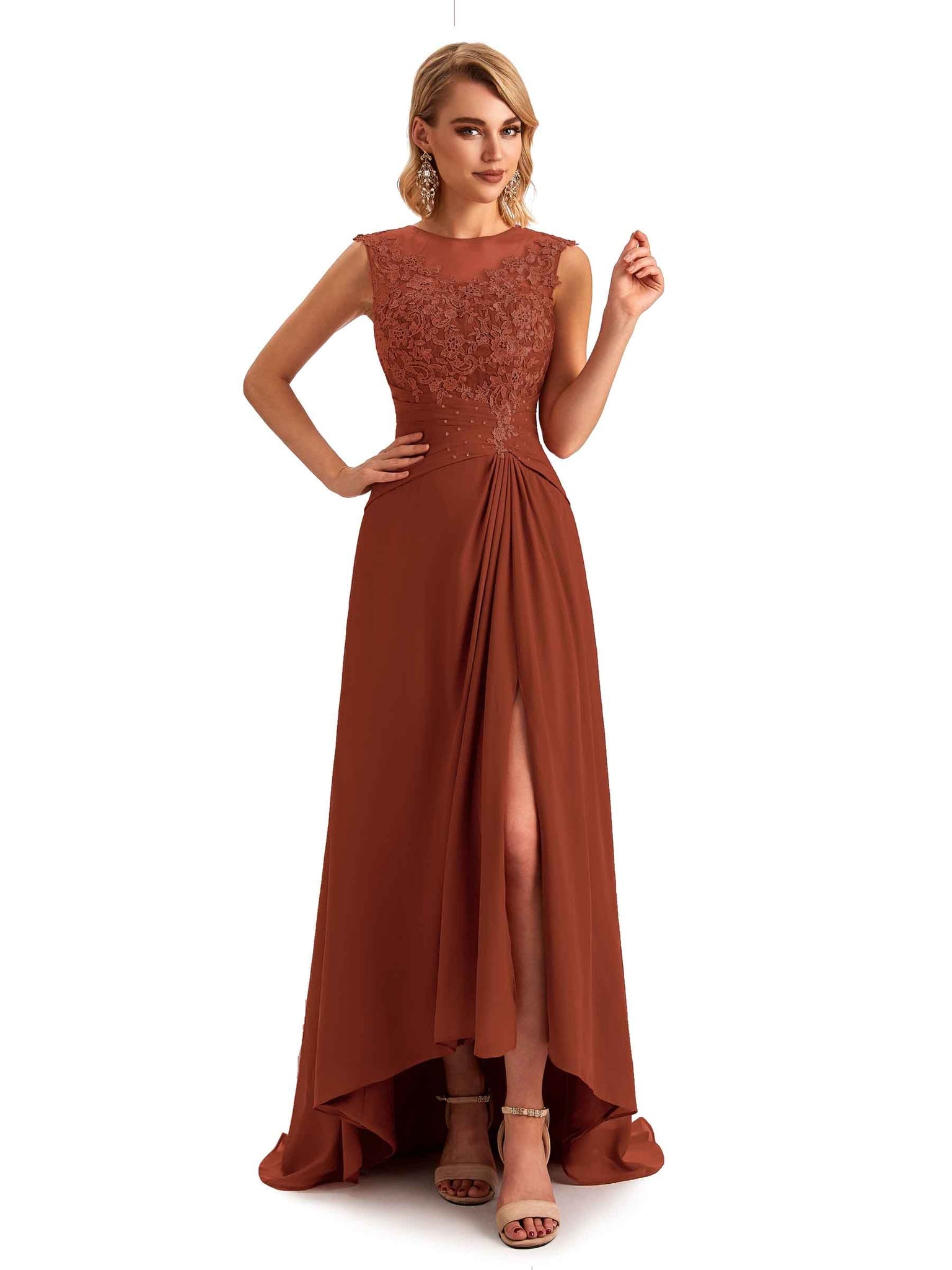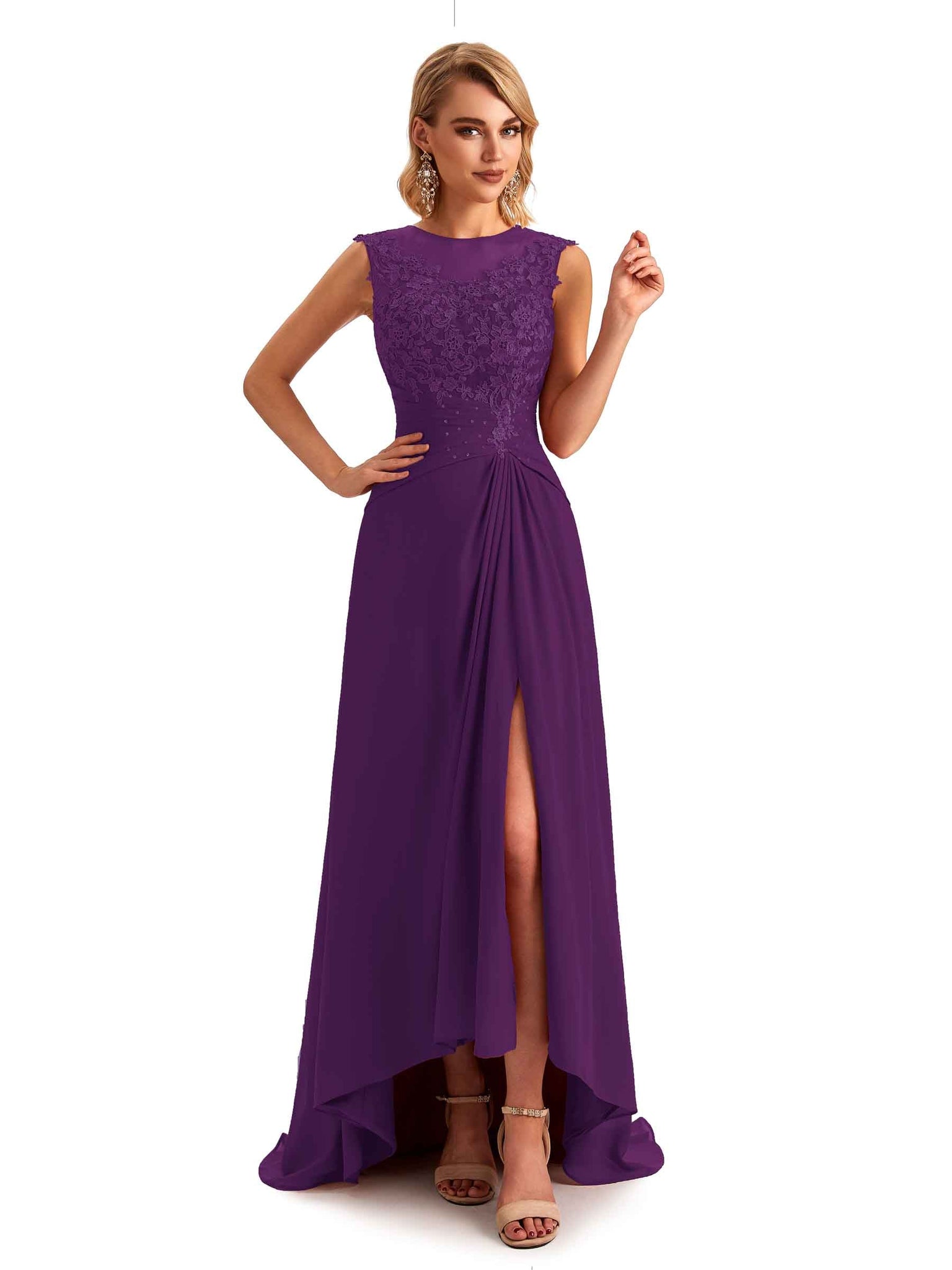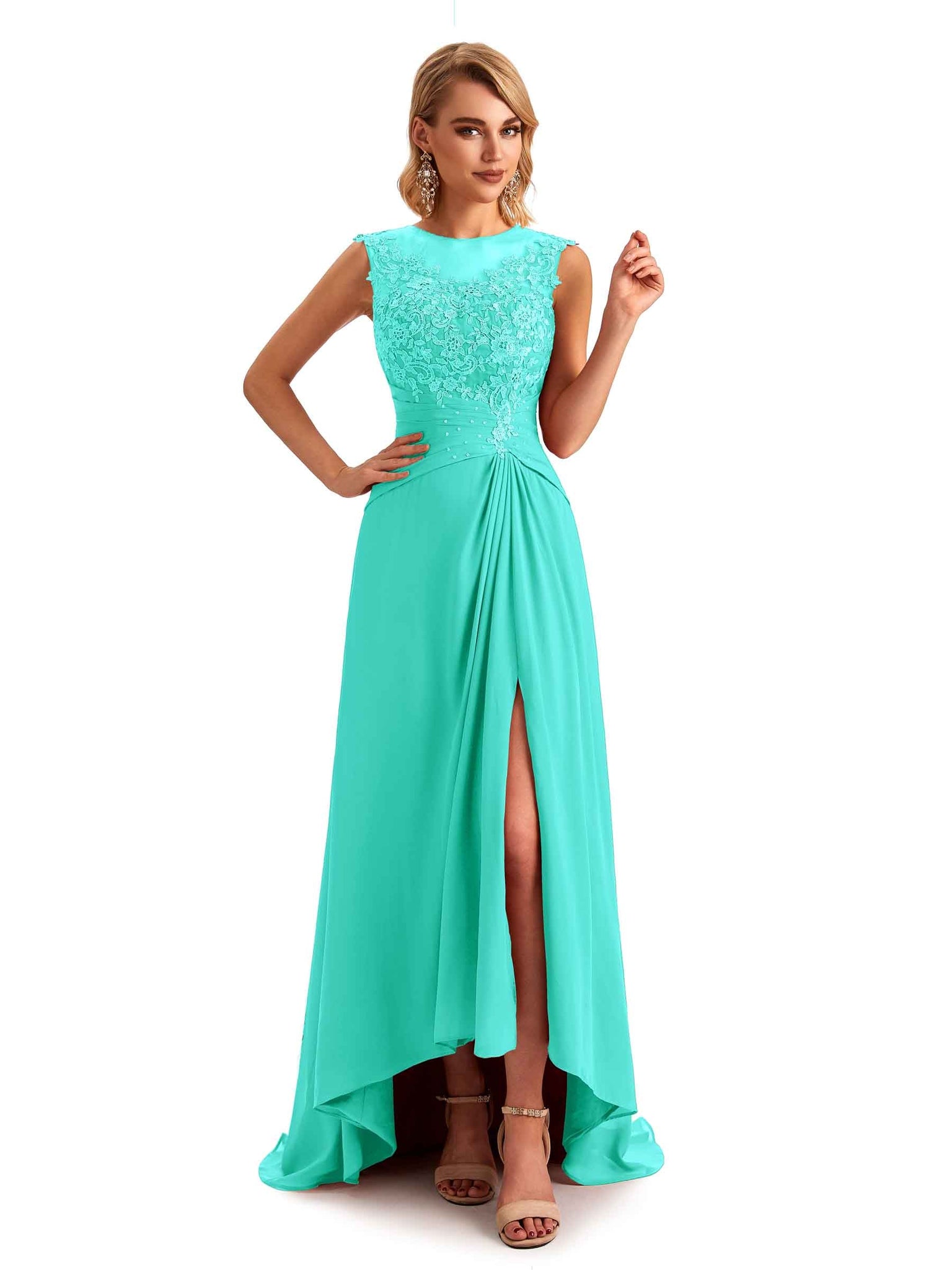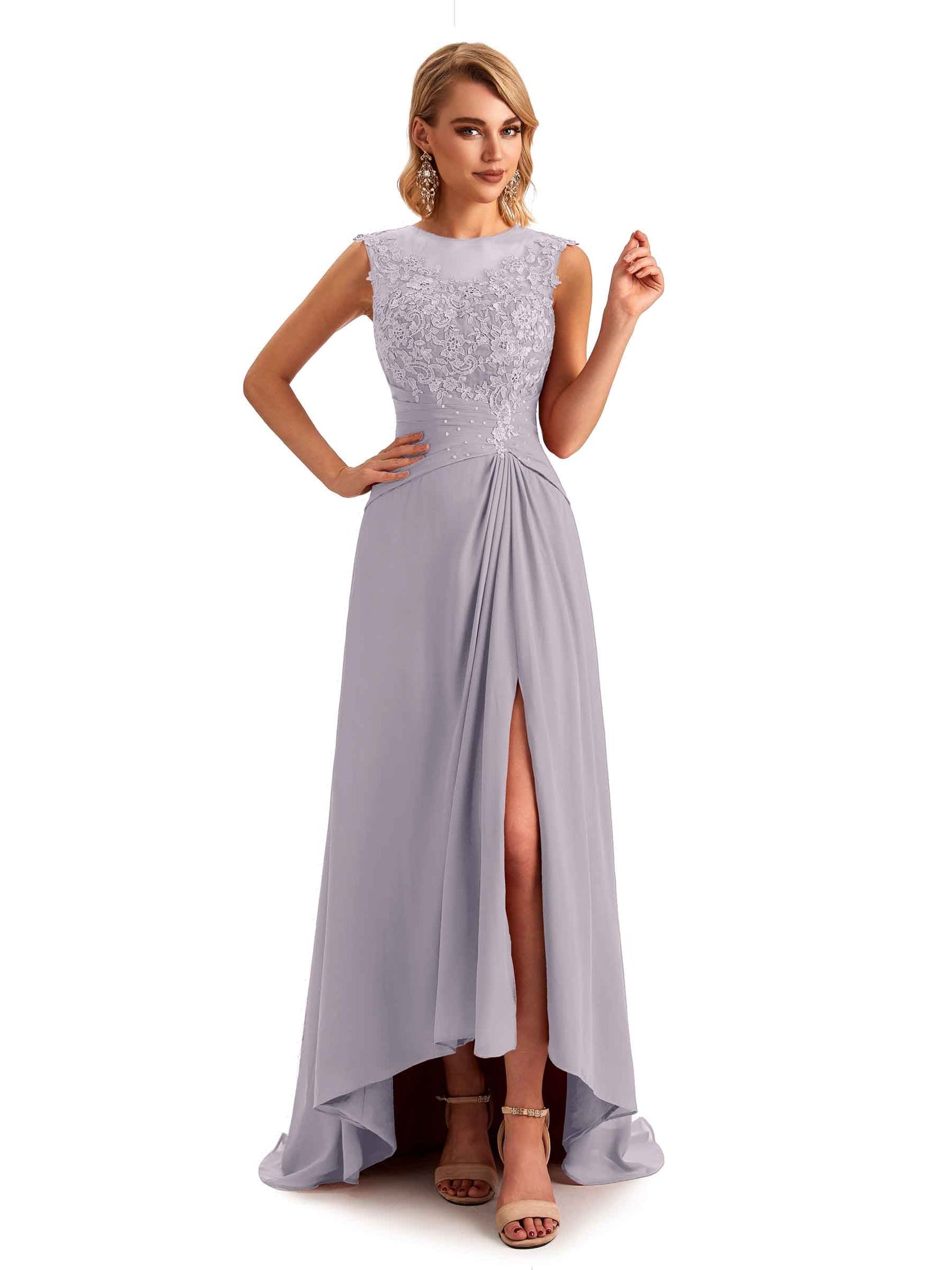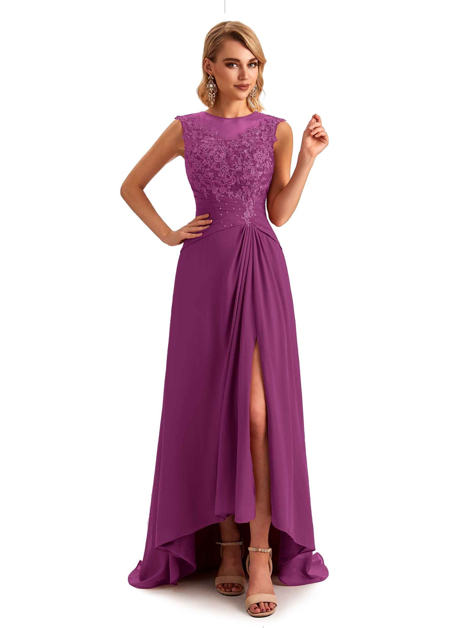 Sexy Chiffon A-line Jewel Side Slit Sleeveless Long Lace Mother of the Brides Dresses - ChicSew – ChicSew