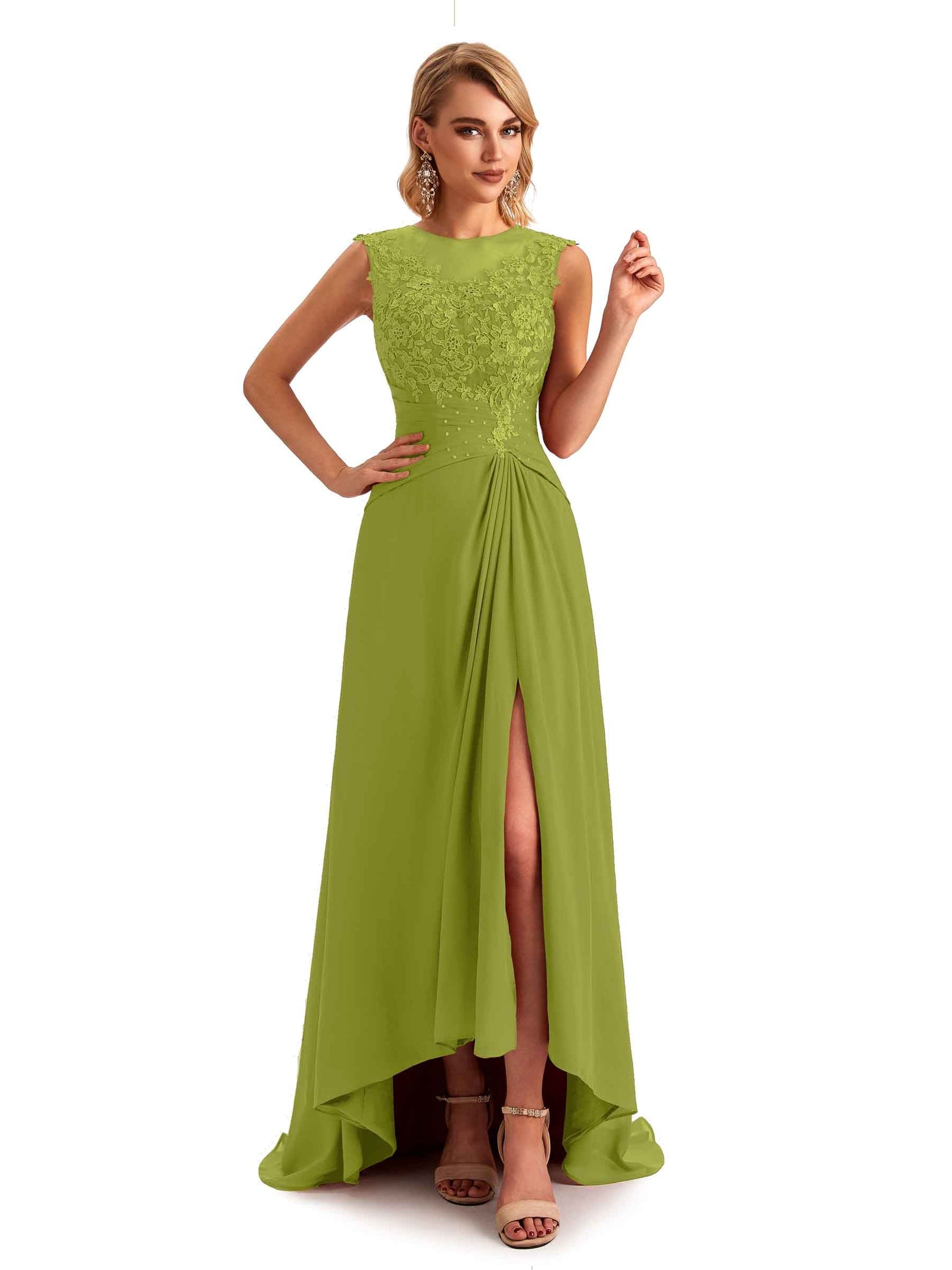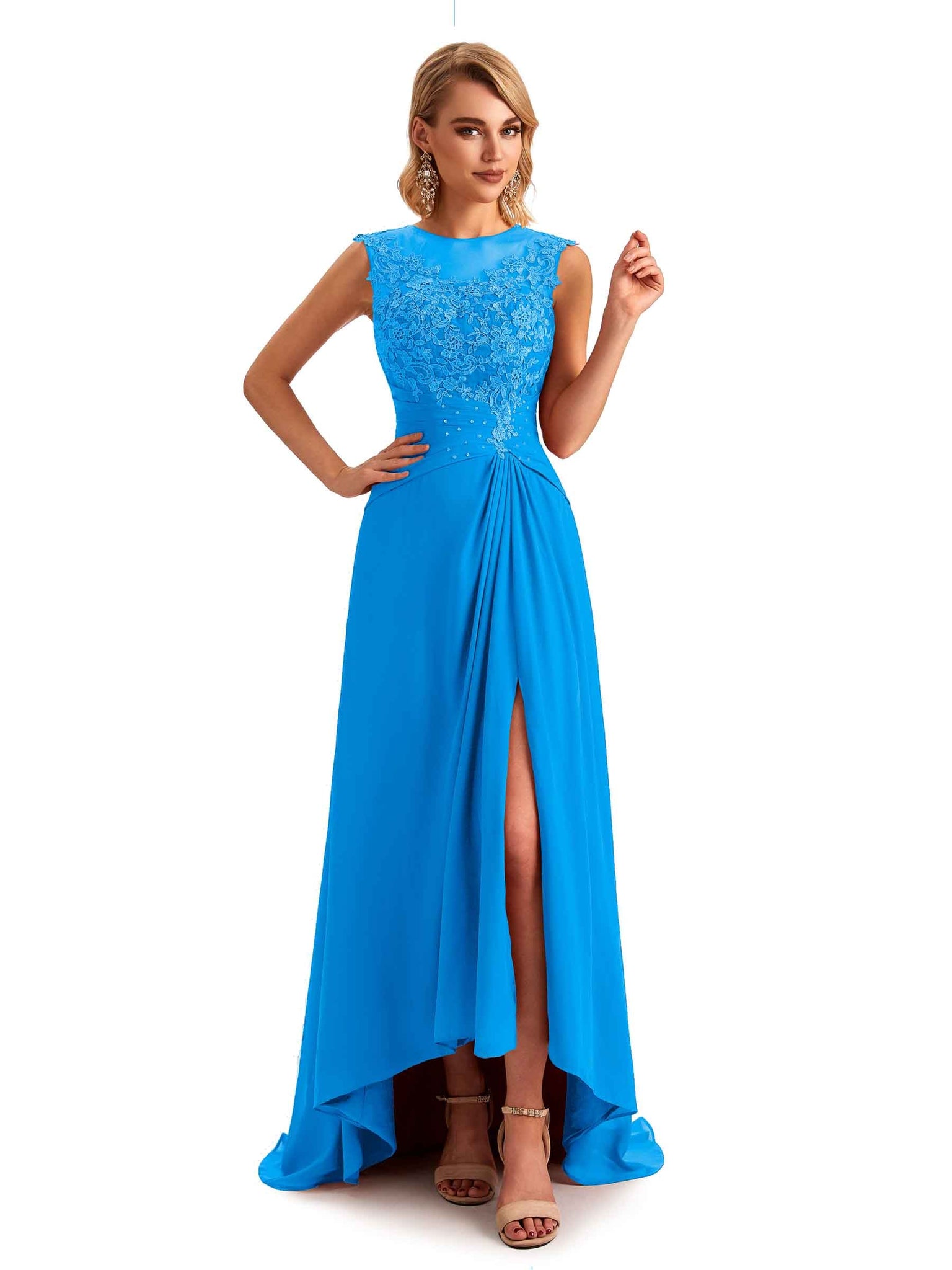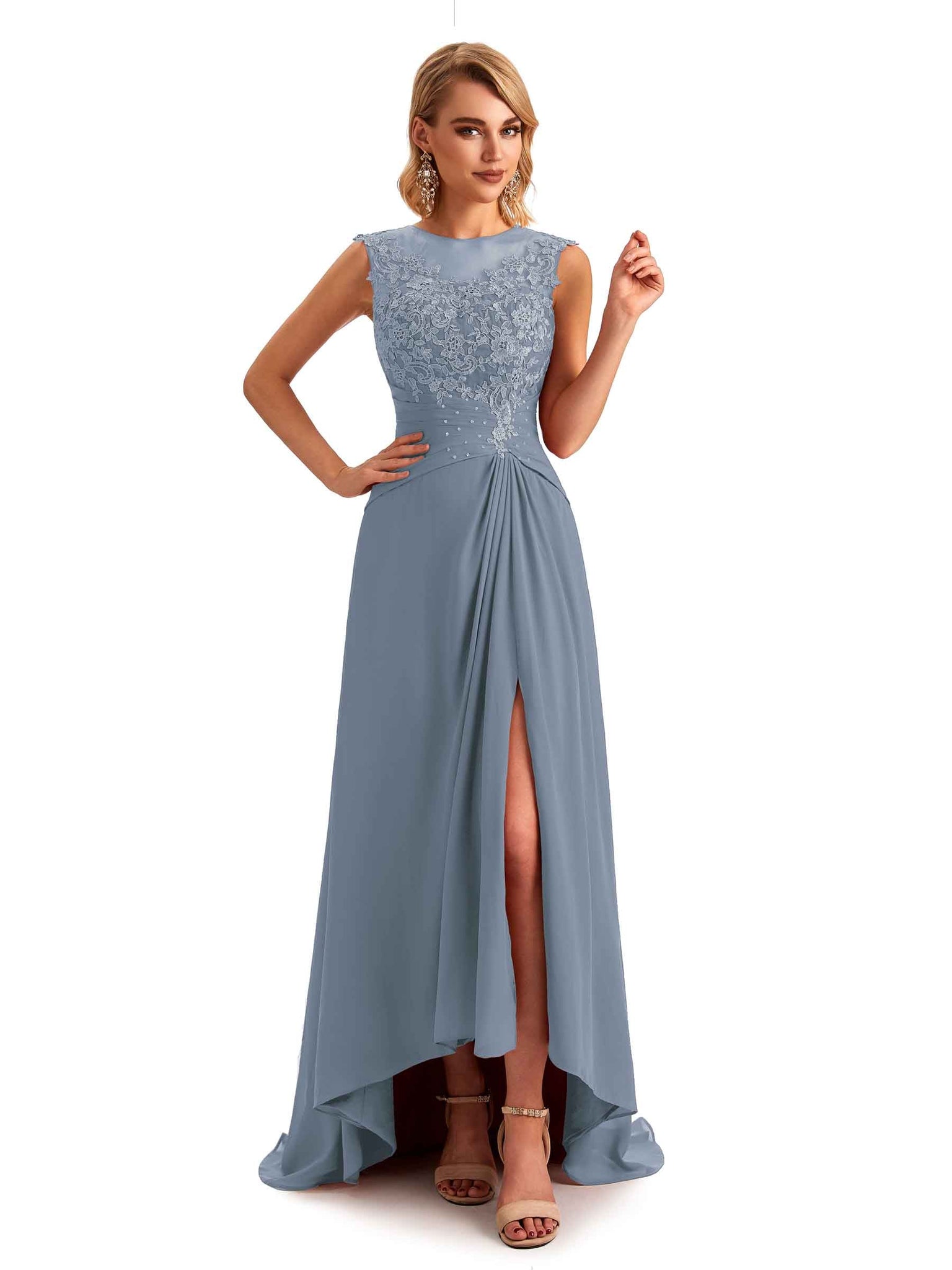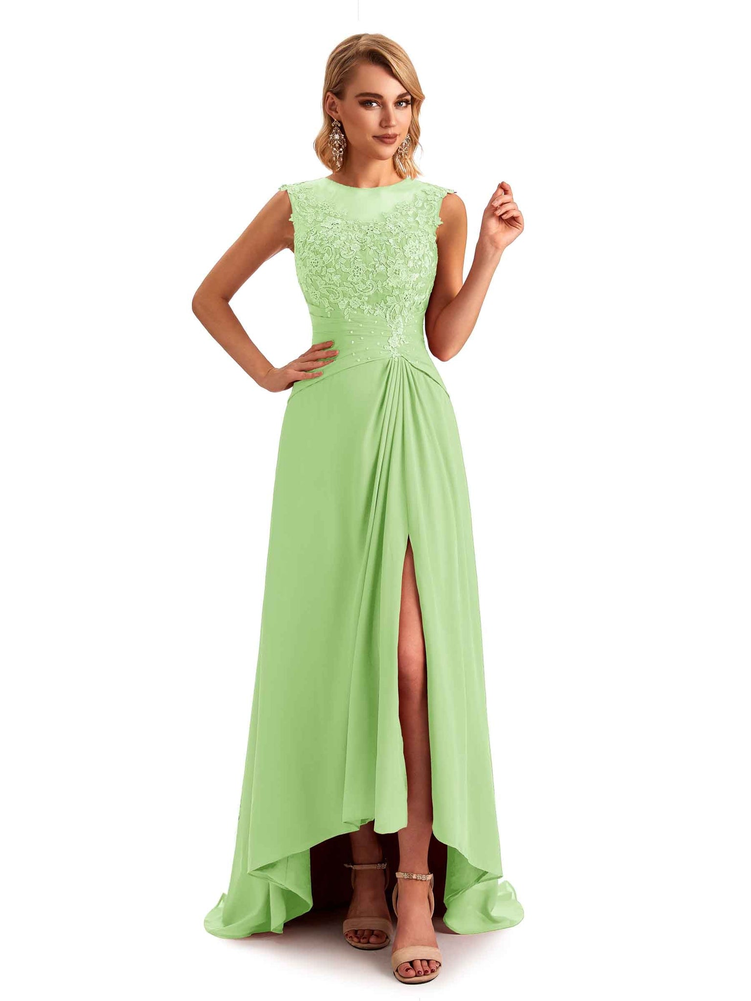 Sexy Chiffon A-line Jewel Side Slit Sleeveless Long Lace Mother of the Brides Dresses - ChicSew – ChicSew