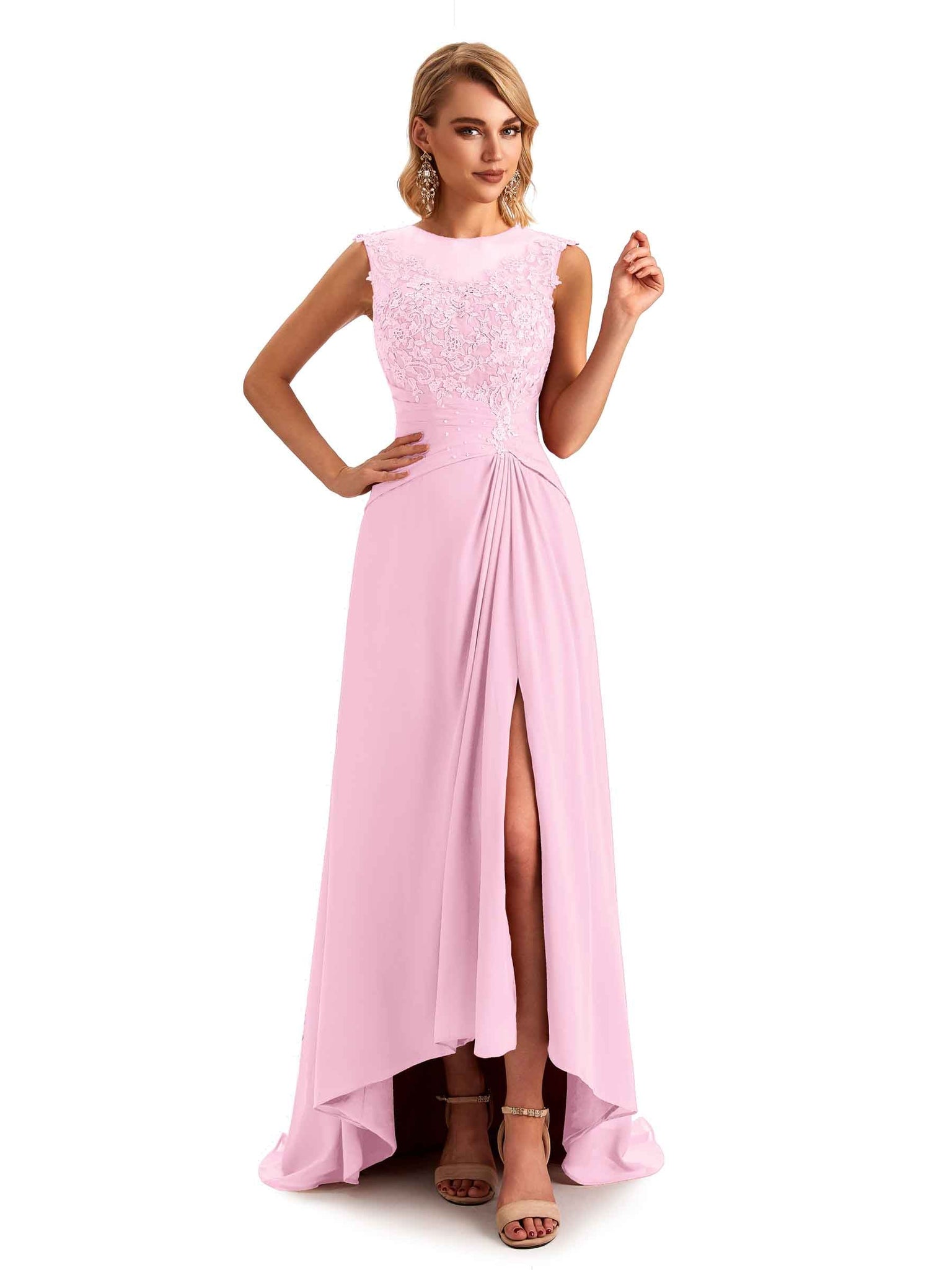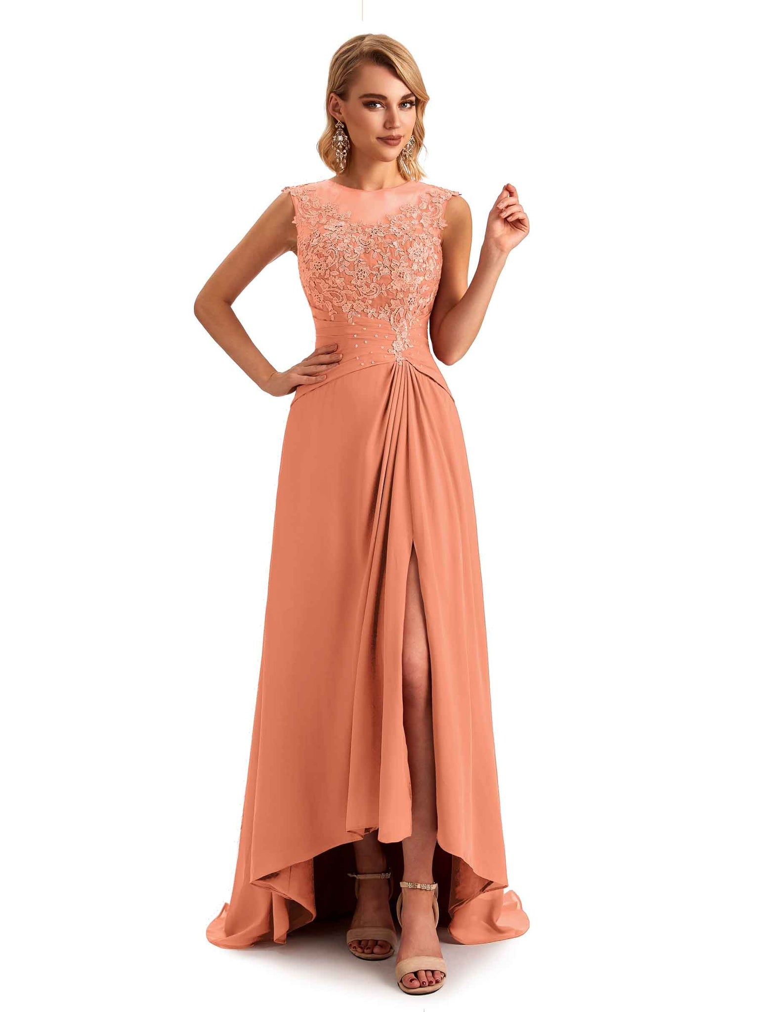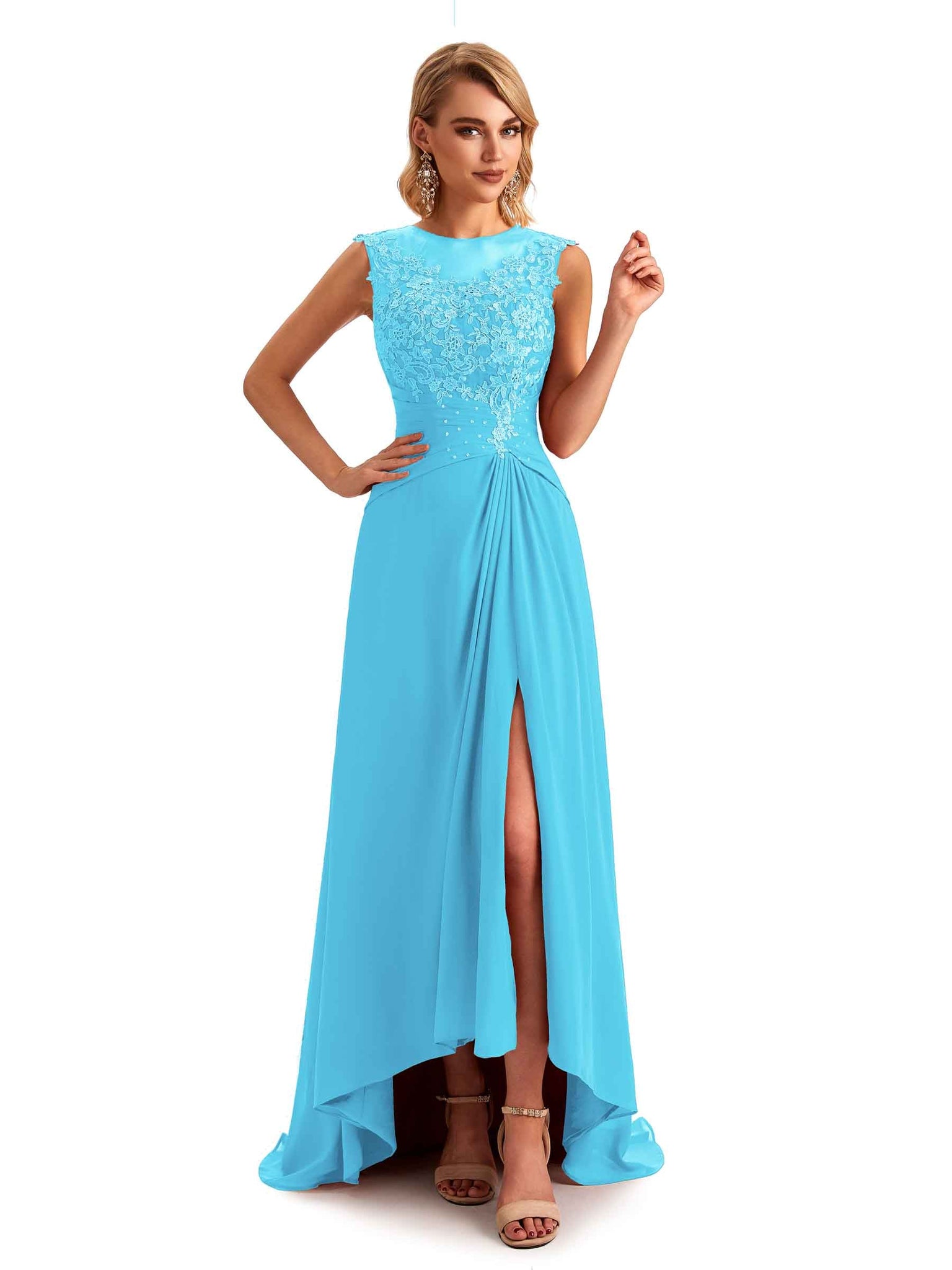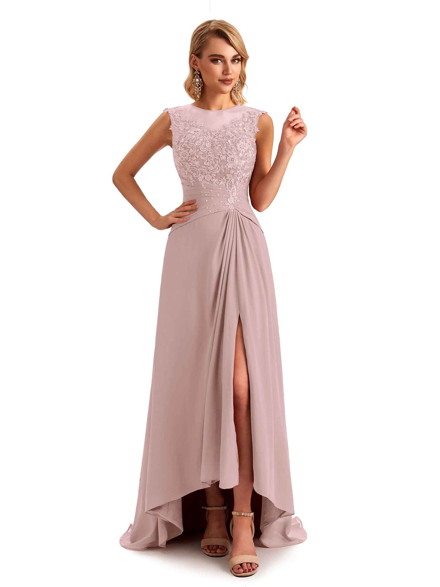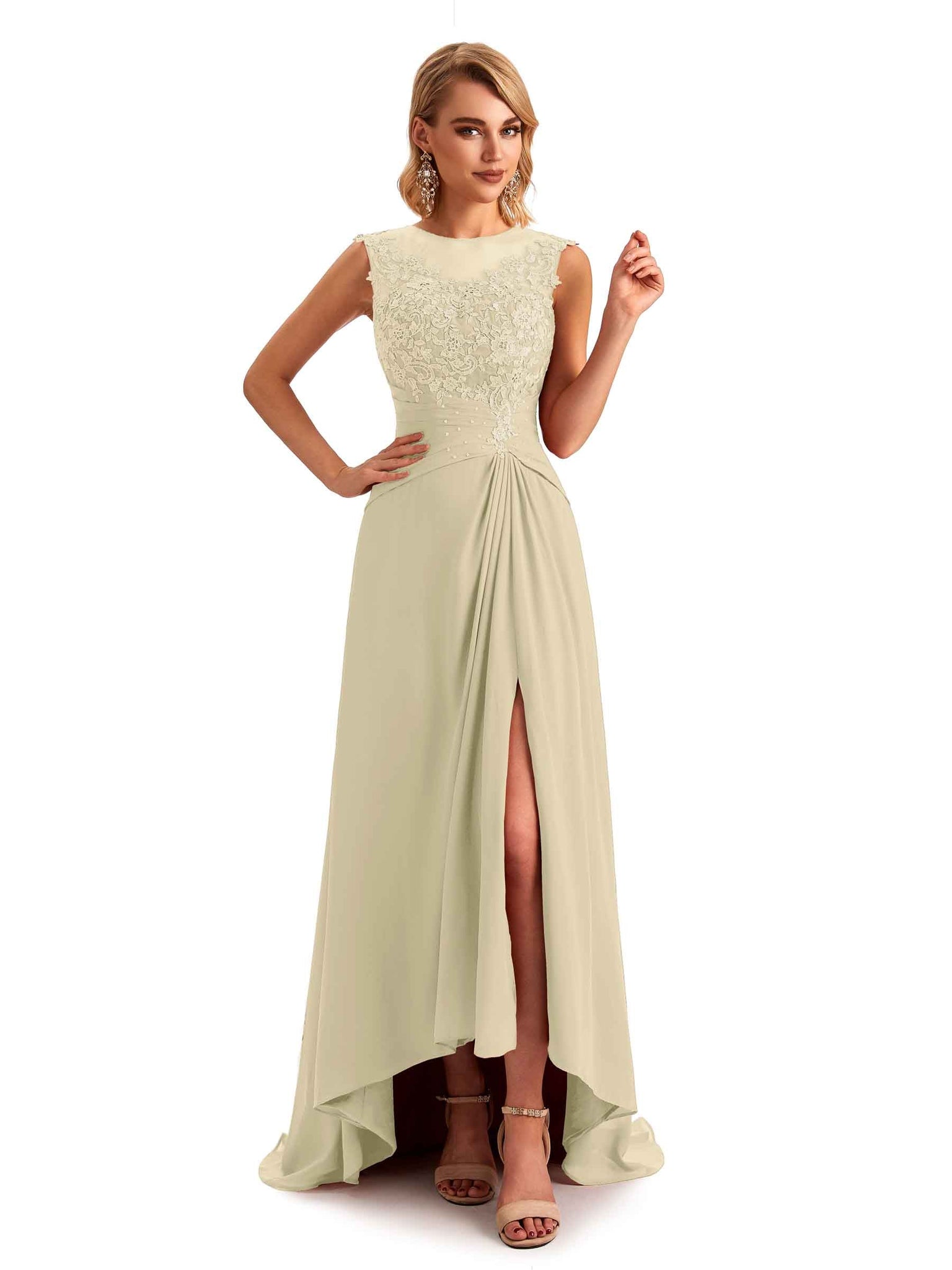Sexy Chiffon A-line Jewel Side Slit Sleeveless Long Lace Mother of the Brides Dresses - ChicSew – ChicSew