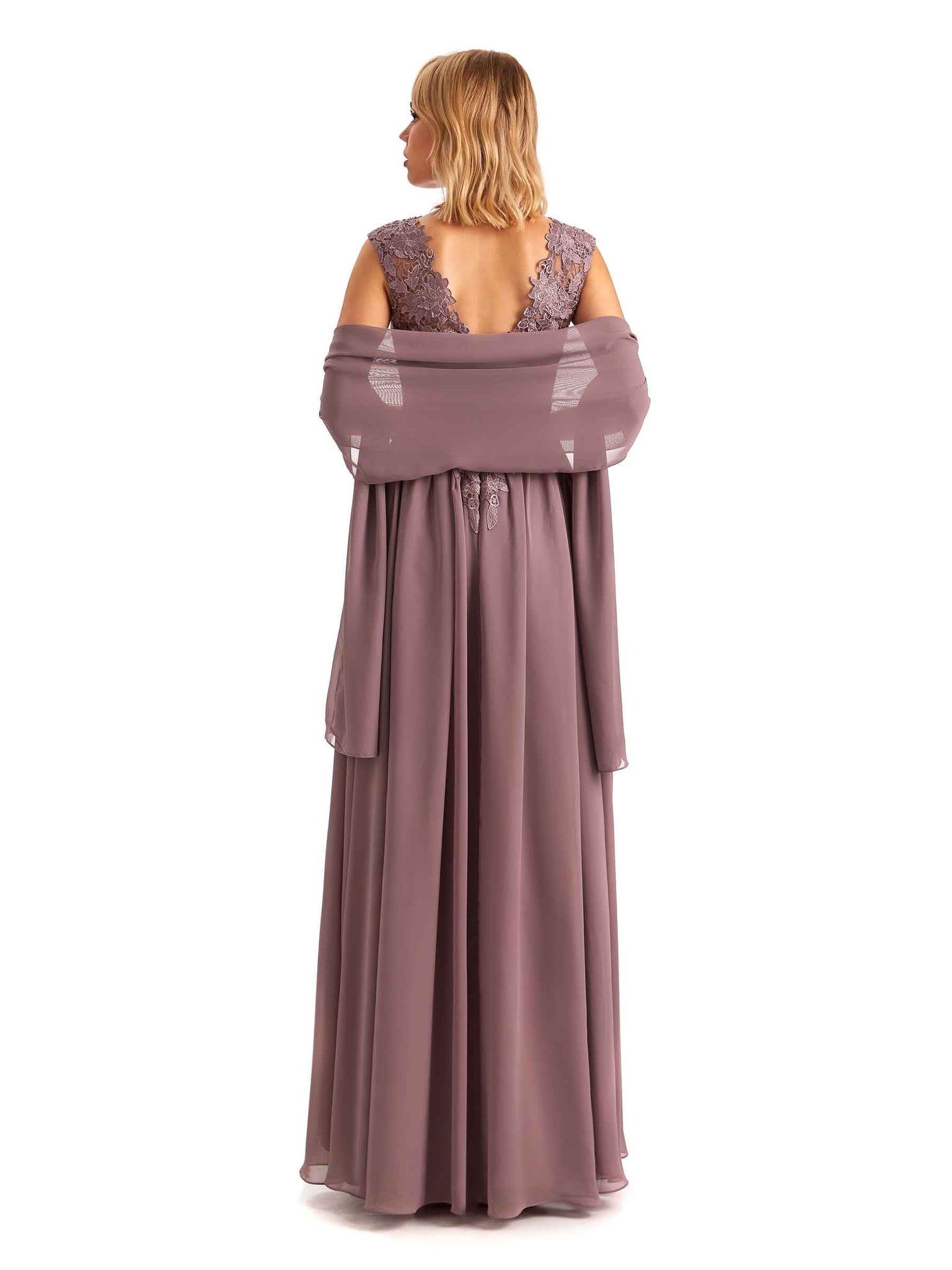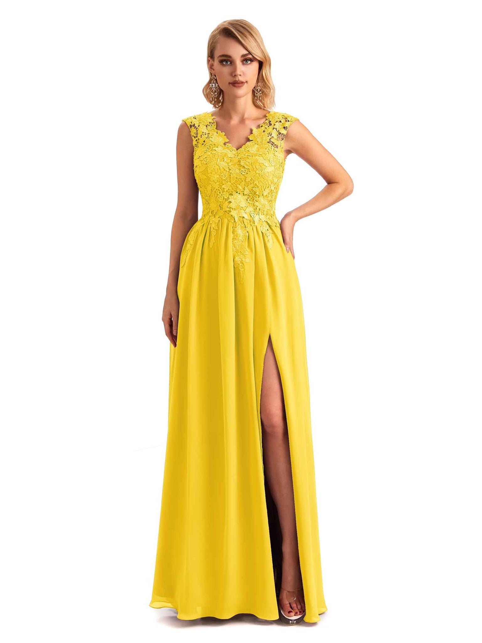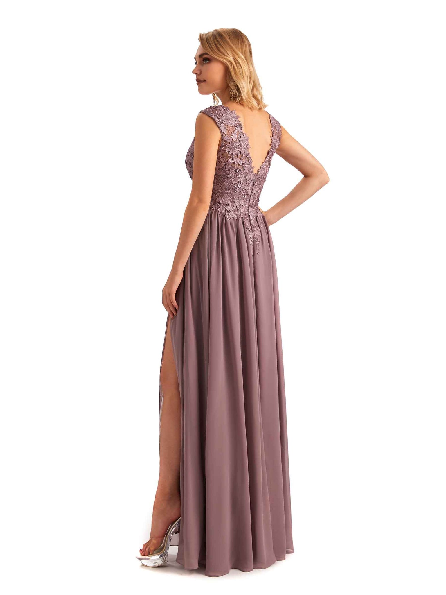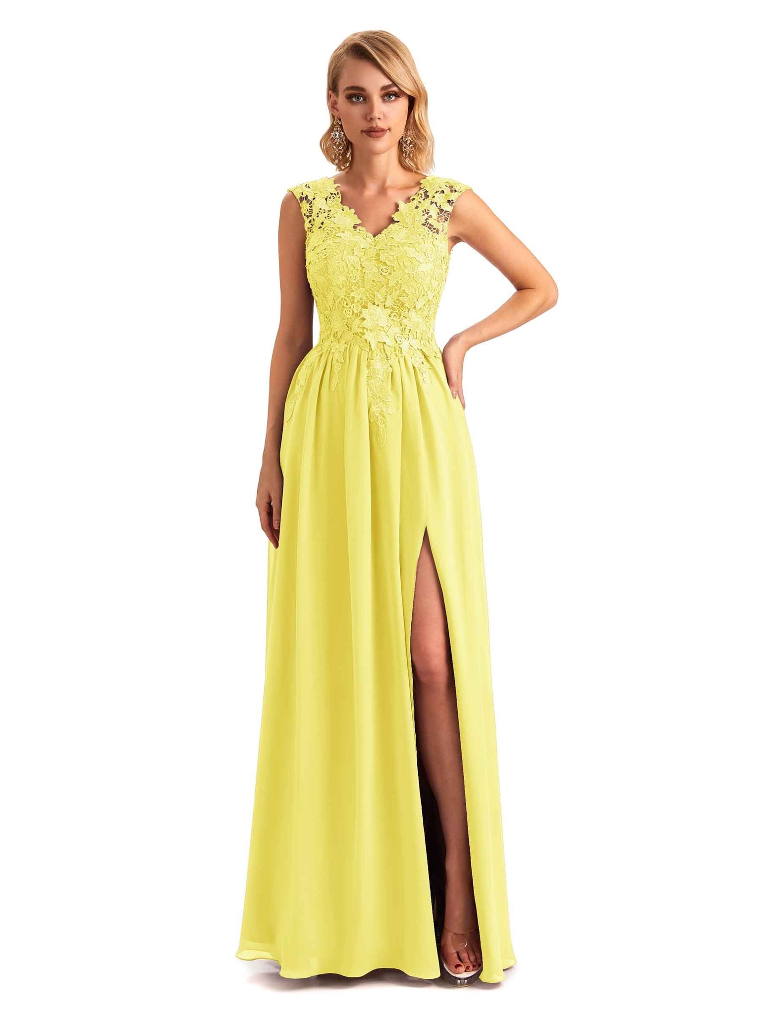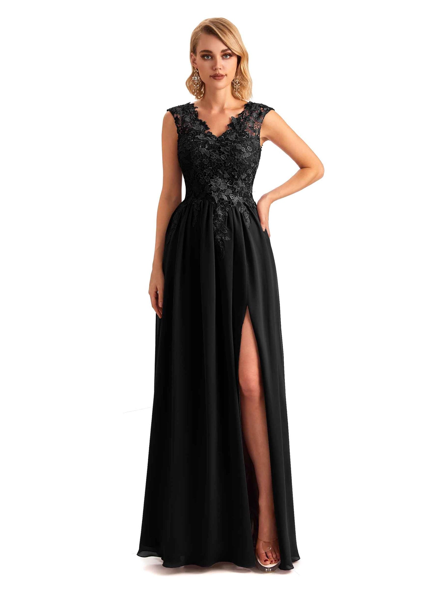Sexy Chiffon V-neck A-line Side Slit Sleeveless Long Lace Mother of the Brides Dresses - ChicSew – ChicSew