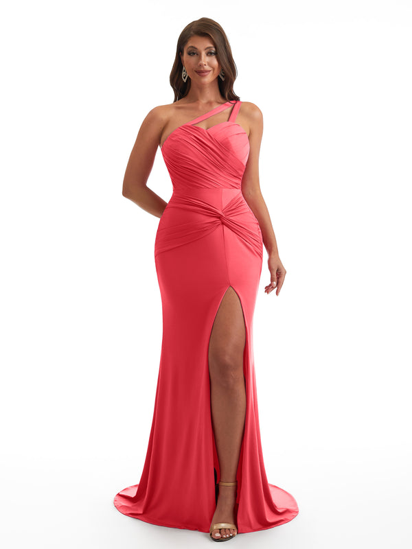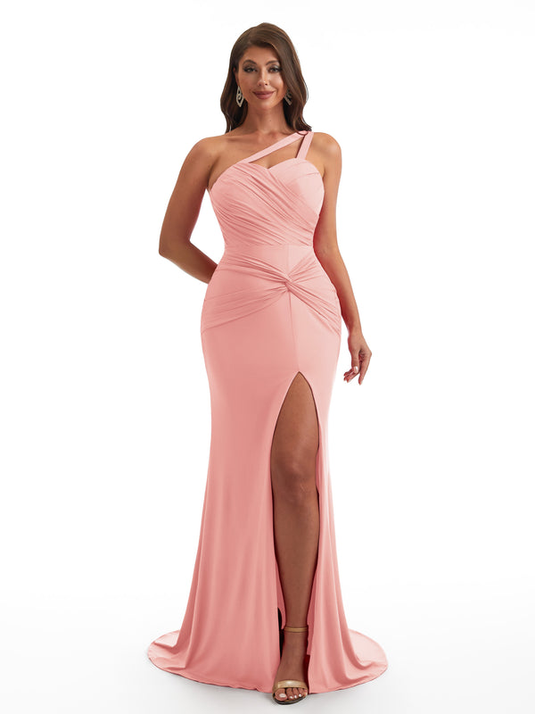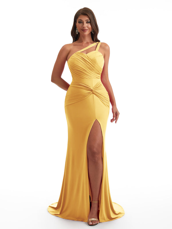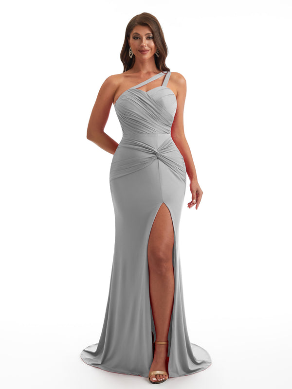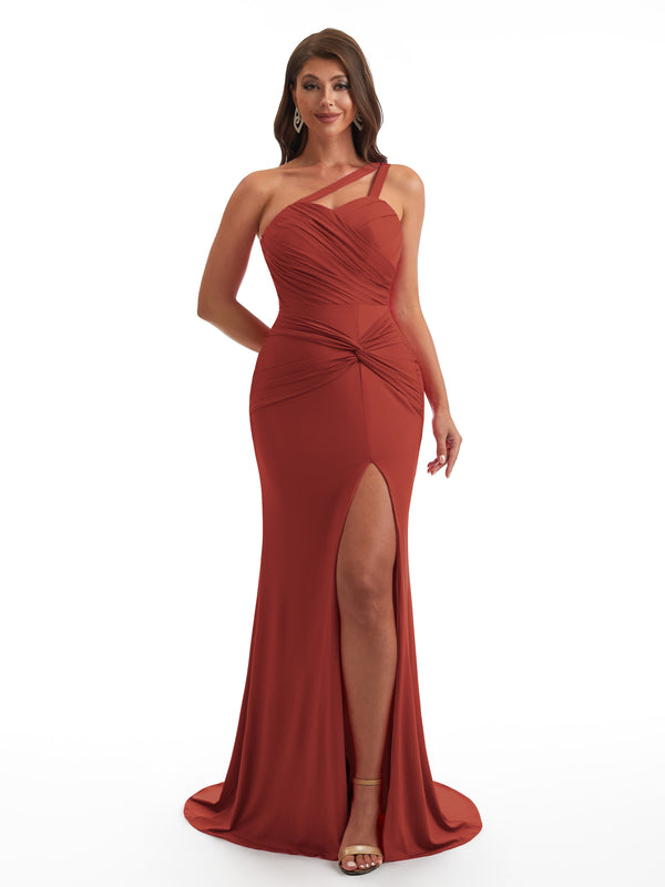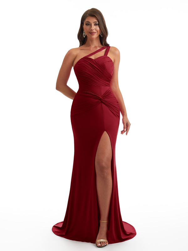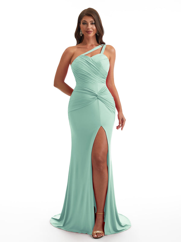 Sexy Mermaid One Shoulder Side Slit Stretchy Jersey Long Bridesmaid Dresses - ChicSew – ChicSew