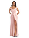 Sexy Off Shoulder Satin Long Wedding Bridesmaid Dresses With Slit Online For Sale - ChicSew – ChicSew