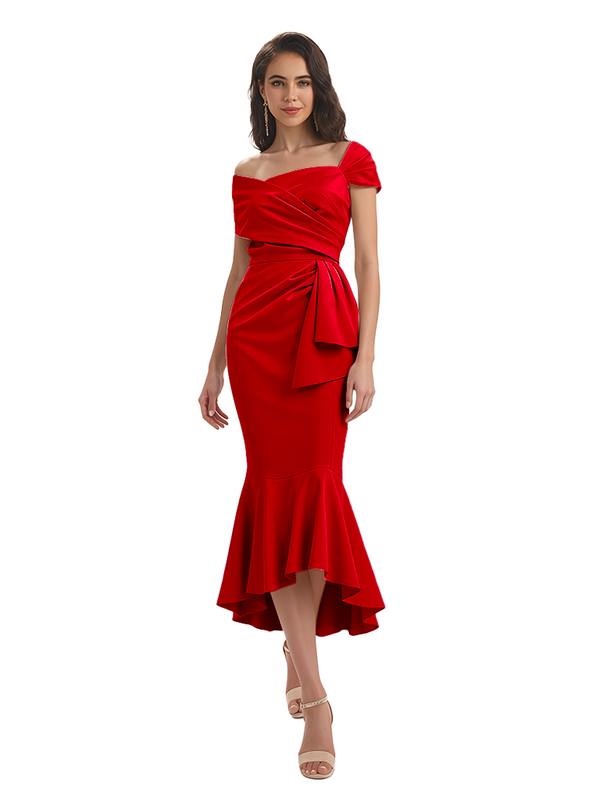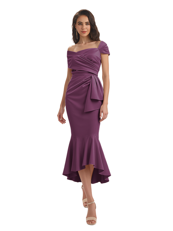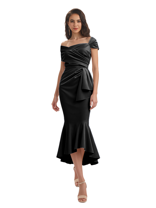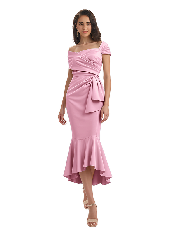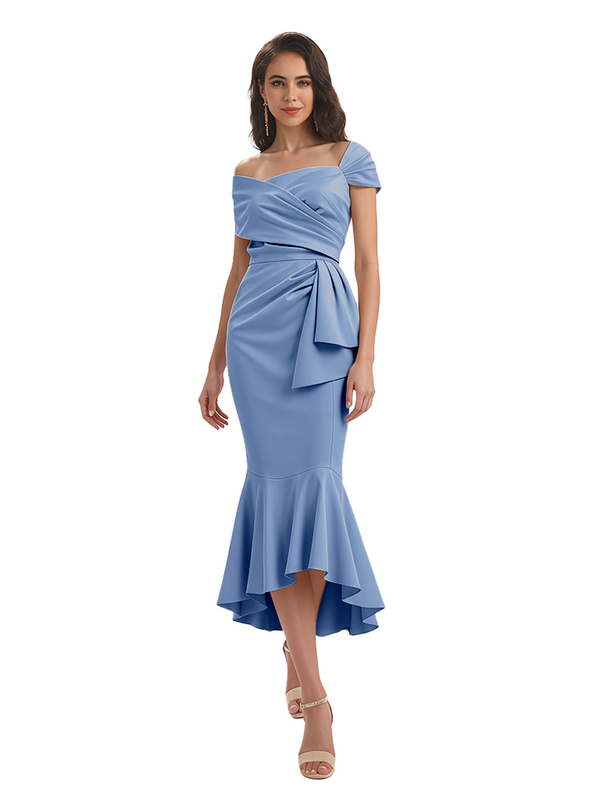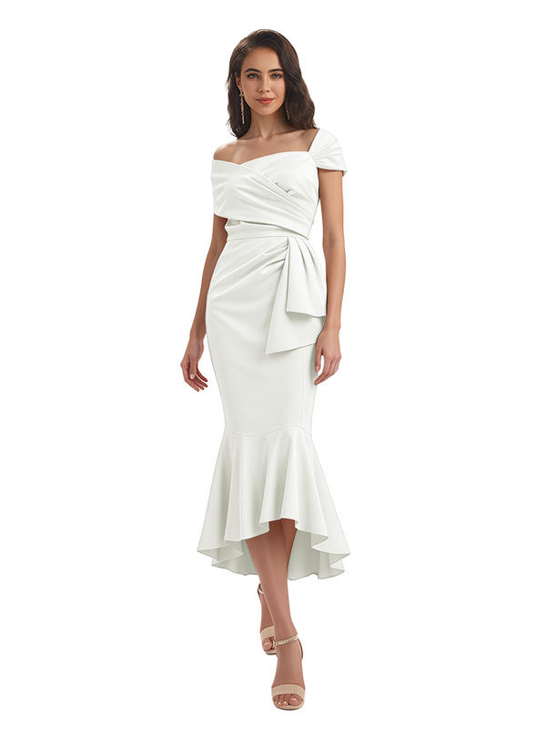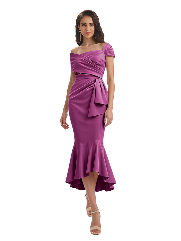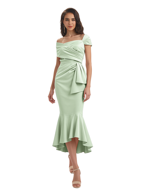 Sexy Off Shoulder Silky Satin Asymmetrical Mermaid Long Formal Evening Dresses For Women - ChicSew – ChicSew