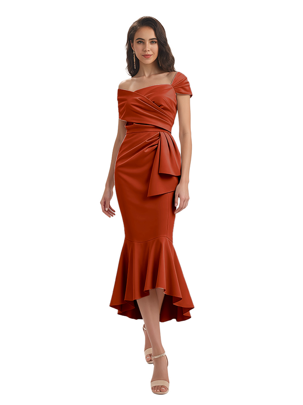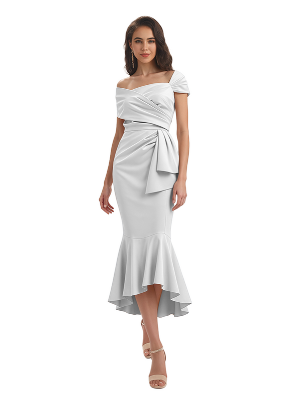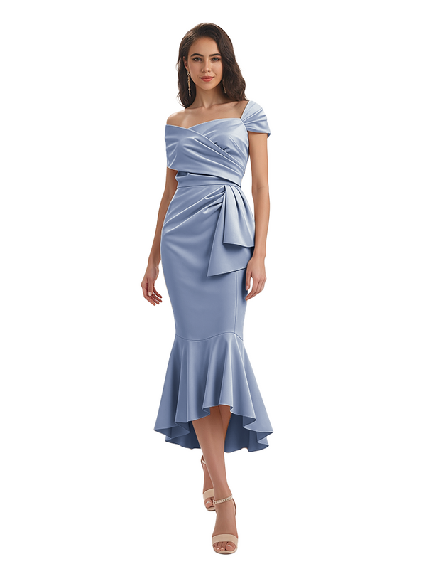 Sexy Off Shoulder Silky Satin Asymmetrical Mermaid Long Formal Evening Dresses For Women