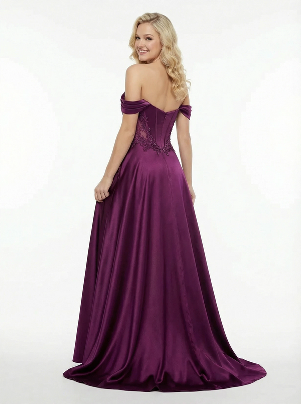 Sexy Off the Shoulder Corset Lace Mermaid Gown With Side Slit Formal Evening Prom Dress - ChicSew – ChicSew