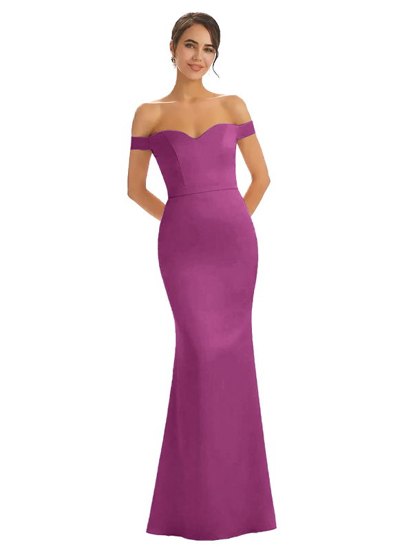 Sexy Off The Shoulder Mermaid Silky Satin Simple Floor Length Formal Evening Dresses - ChicSew – ChicSew