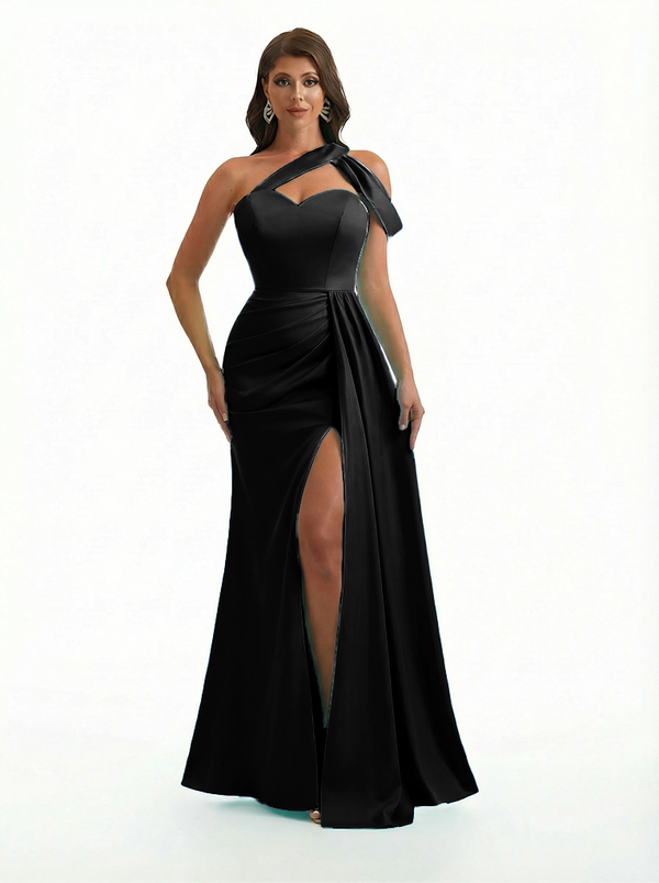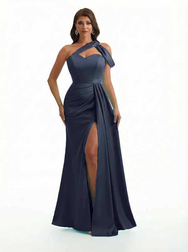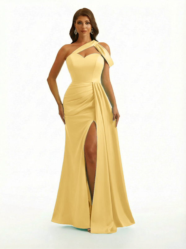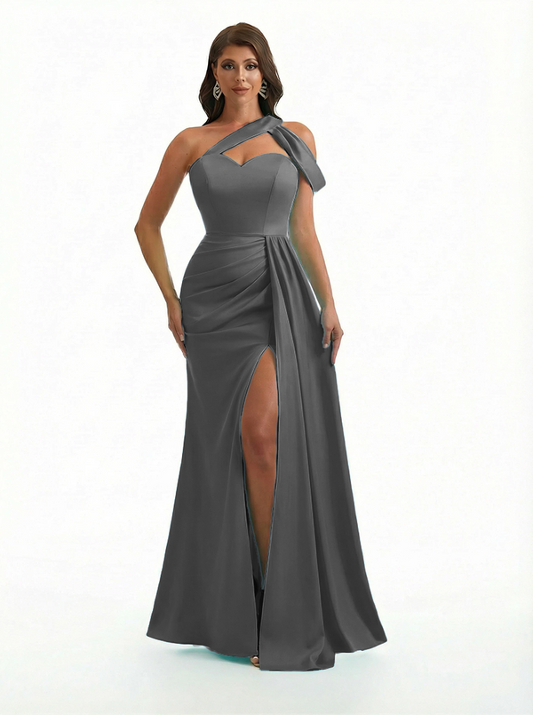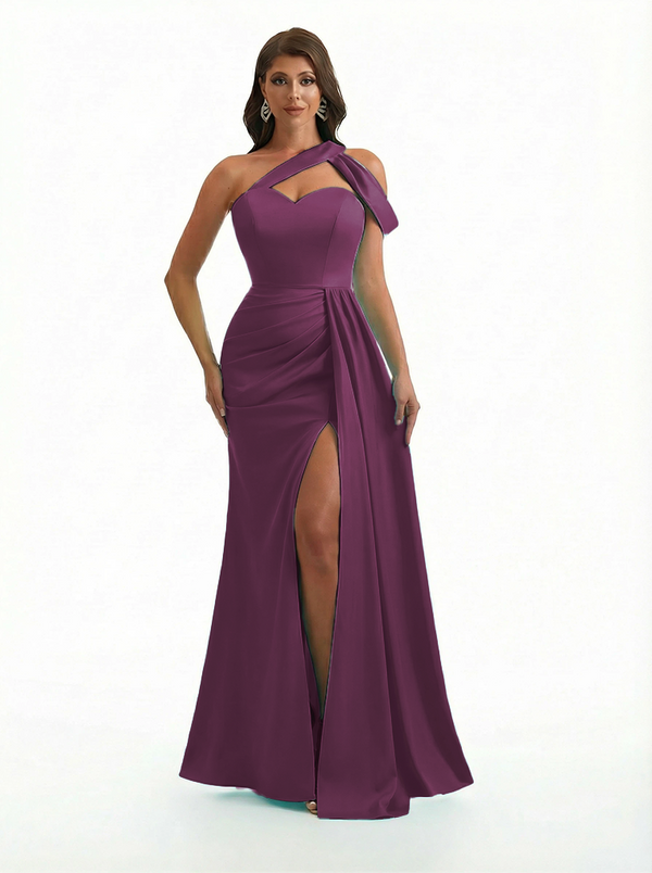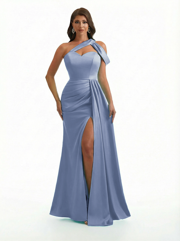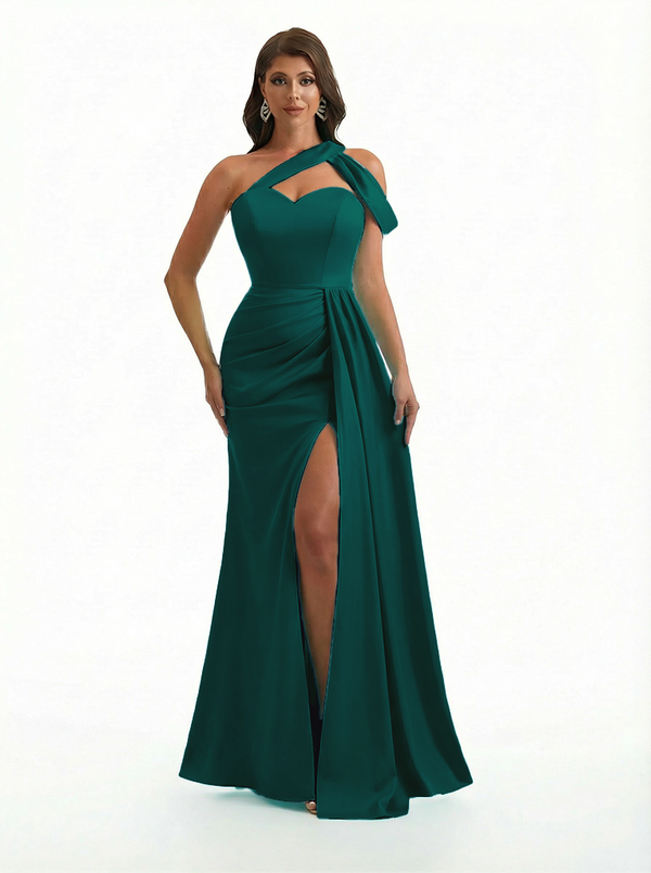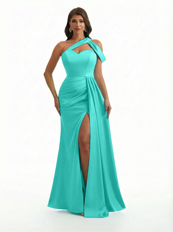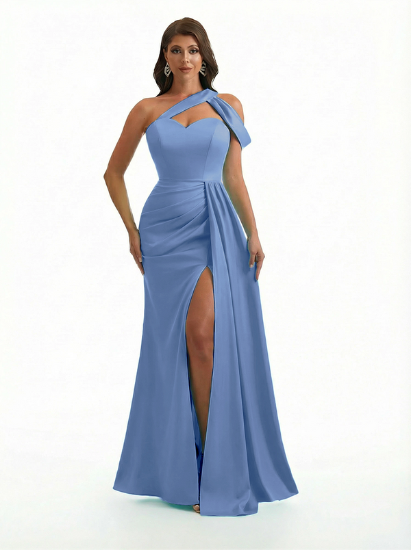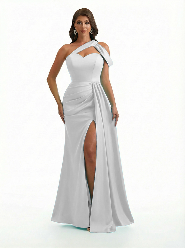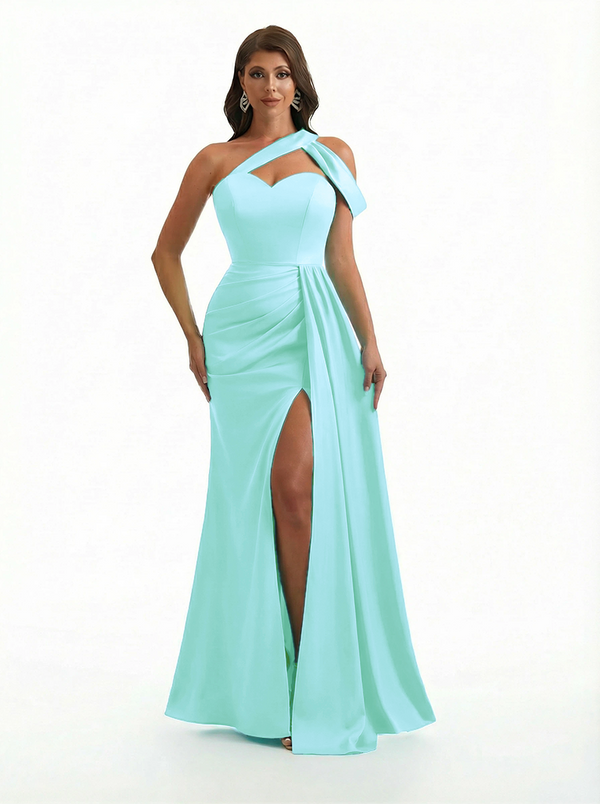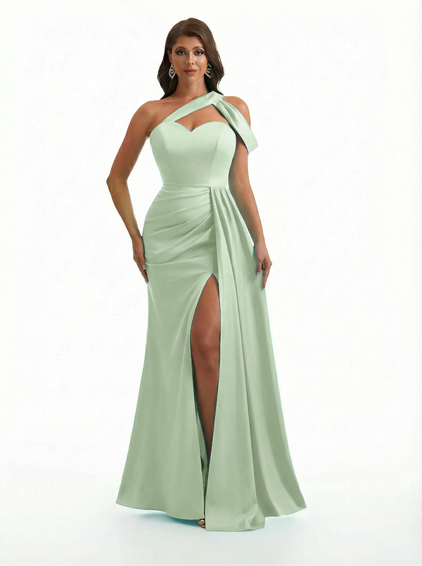 Sexy One Shoulder Side Slit Mermaid Soft Satin Beauty Long Formal Dresses - ChicSew – ChicSew
