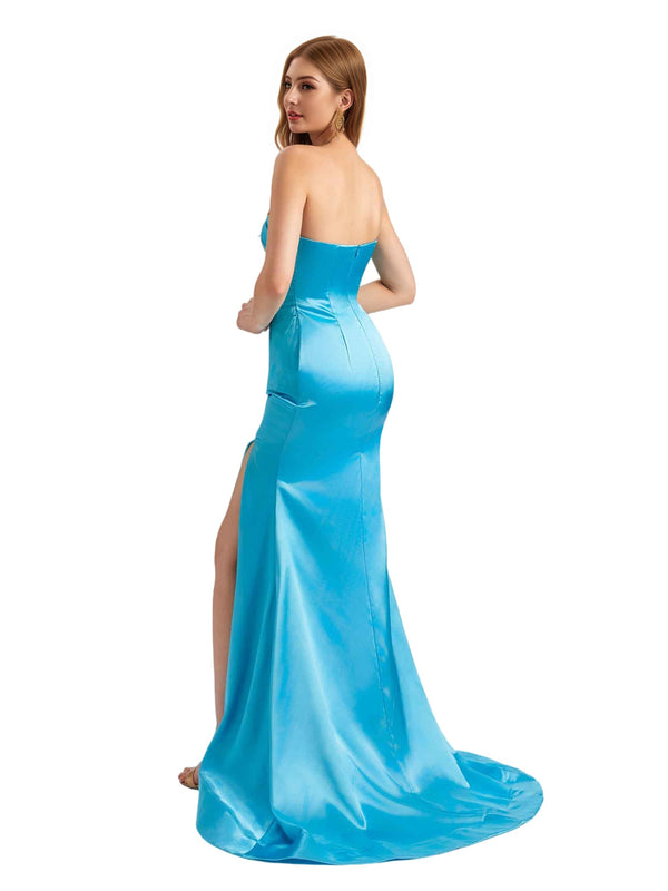 Sexy One Shoulder Side Split Ruched Soft Satin Mermaid Long Beauty Bridesmaid Dresses
