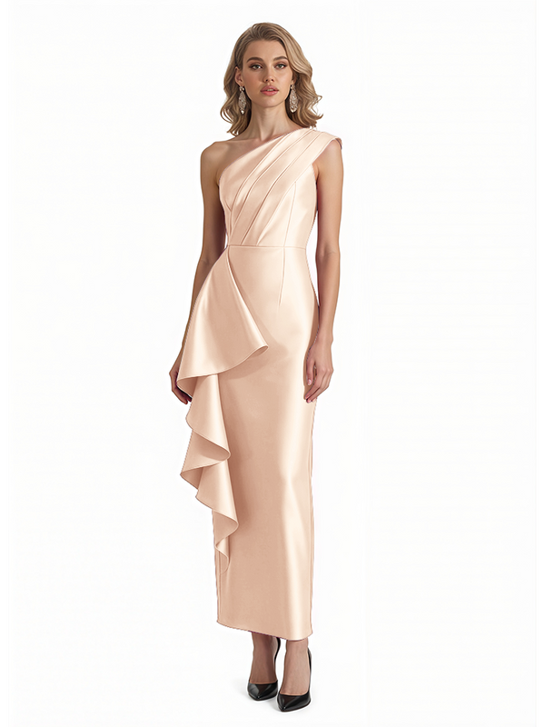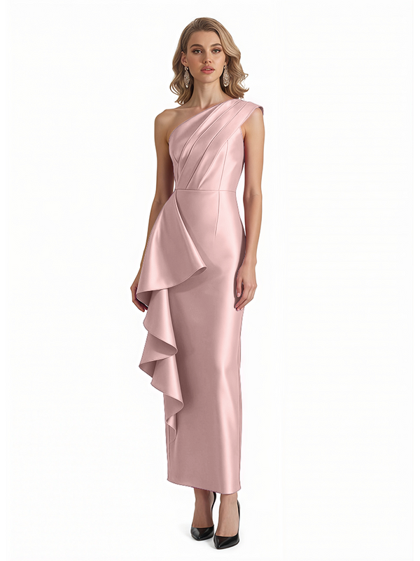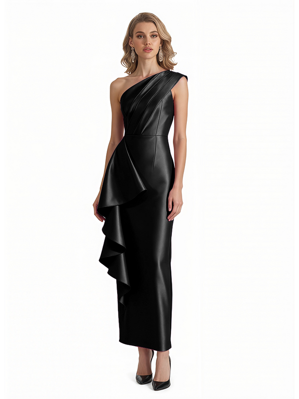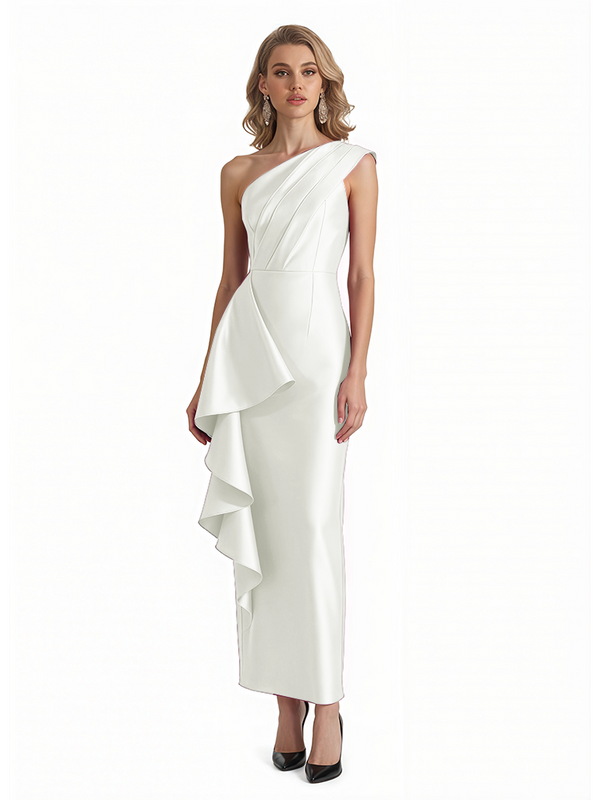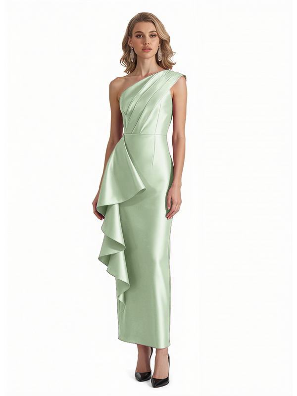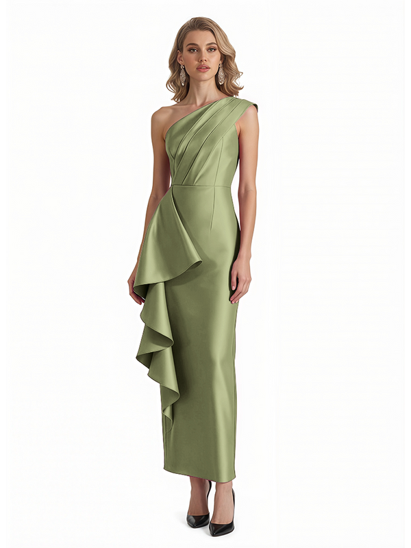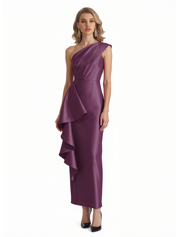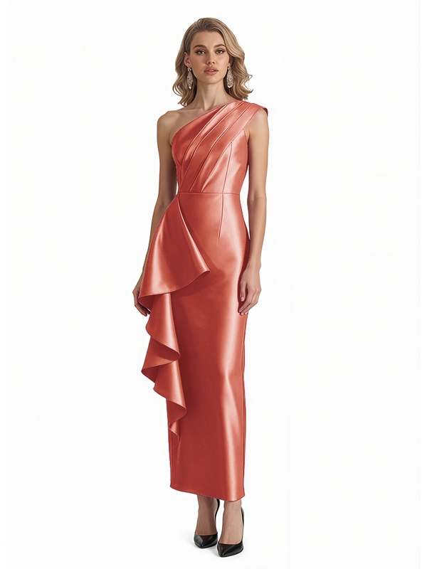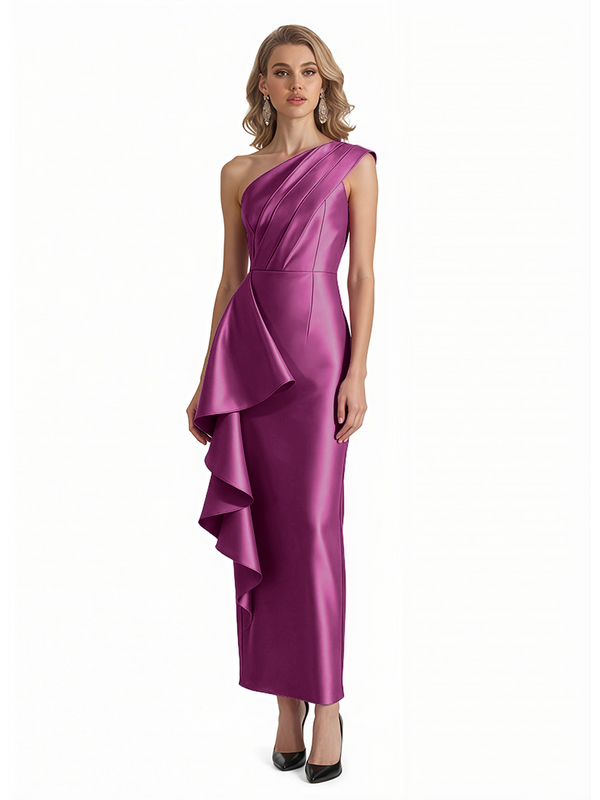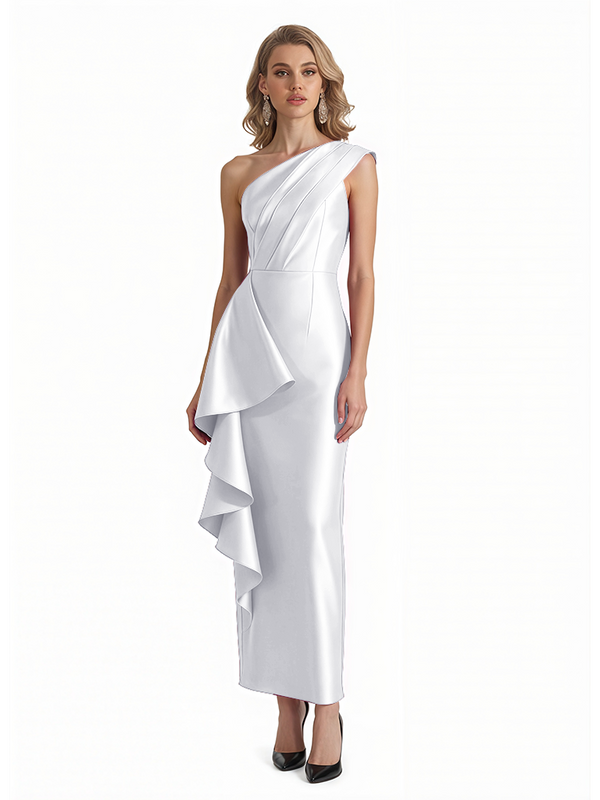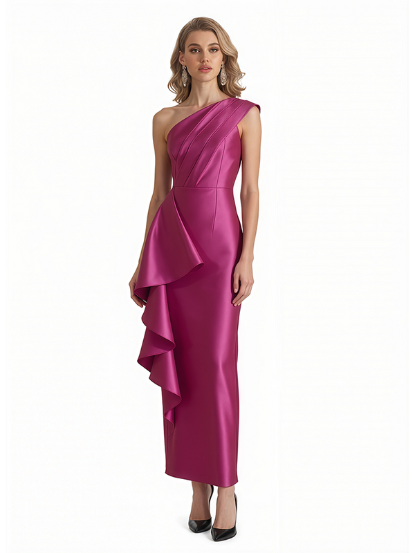 Sexy One Shoulder Silky Satin Ruffle Sheath Ankle-Length Formal Evening Gowns For Women - ChicSew – ChicSew