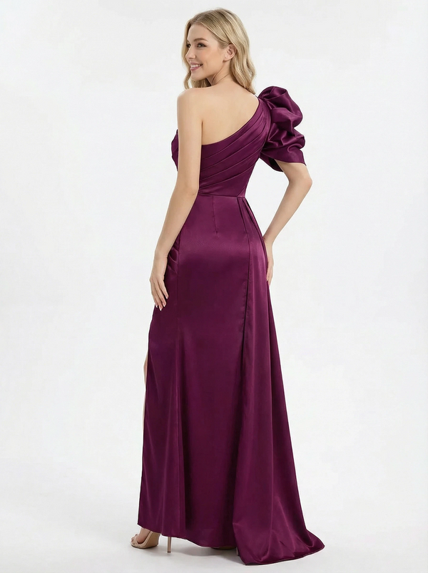 One-Shoulder Bow Satin Mermaid Side Slit Formal Dress - ChicSew – ChicSew