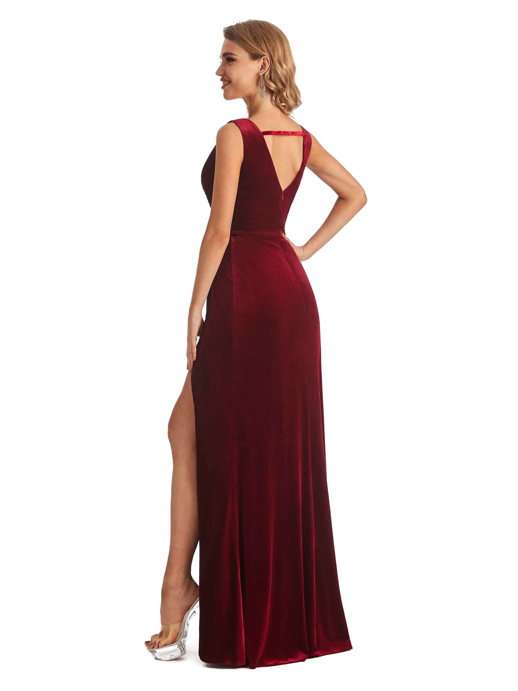 Sexy Sheath Velvet V-neck High Slit Long Bridesmaid Dresses Online - ChicSew – ChicSew