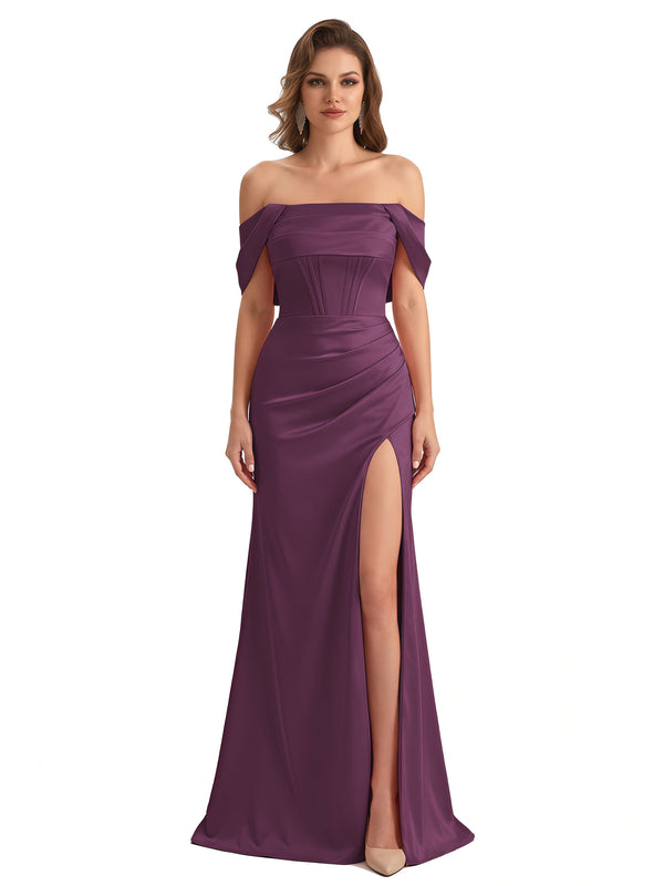 Sexy Side Slit Off The Shoulder Silky Satin Boning Mermaid Maxi Formal Dresses For Women - ChicSew – ChicSew