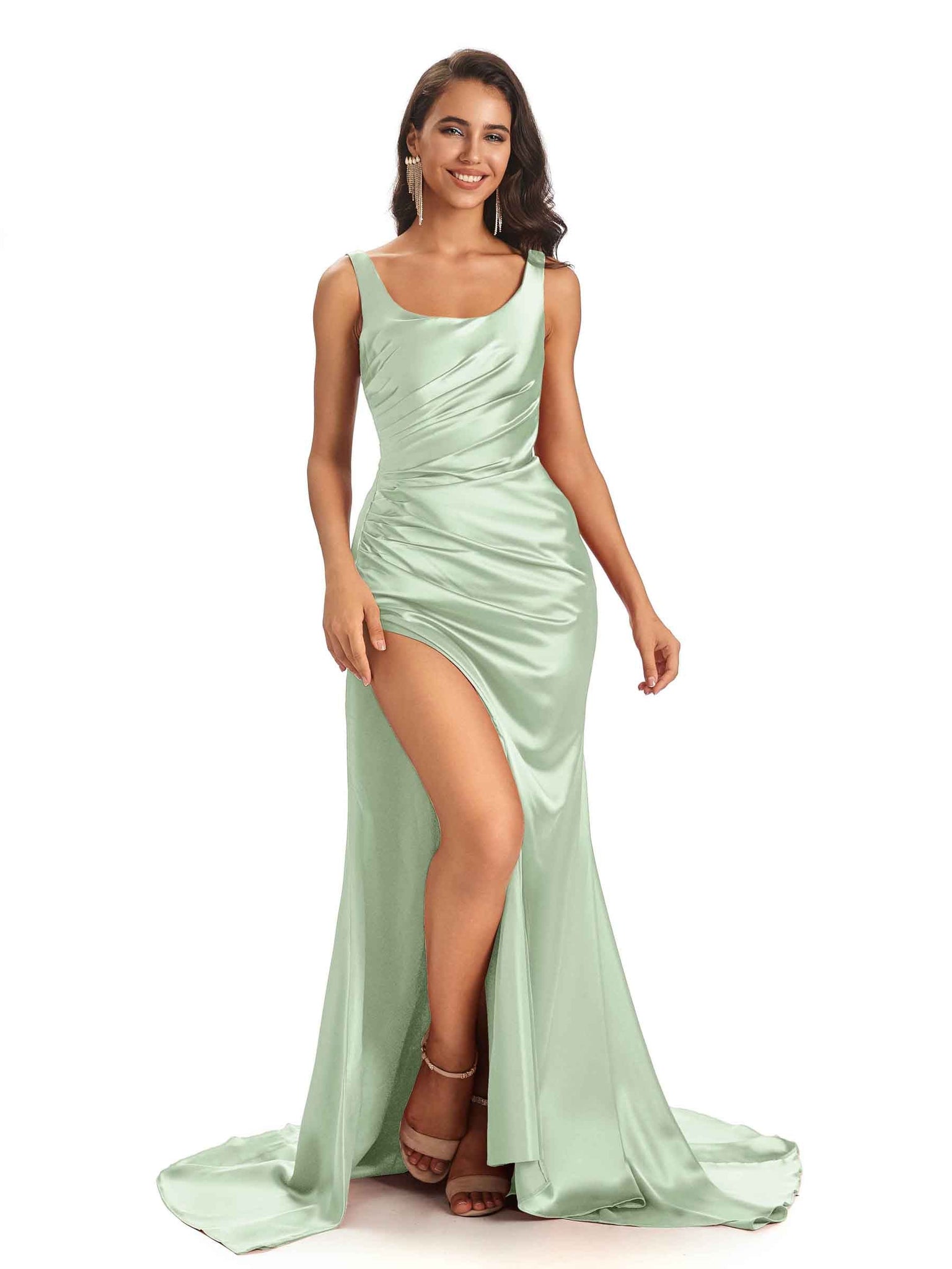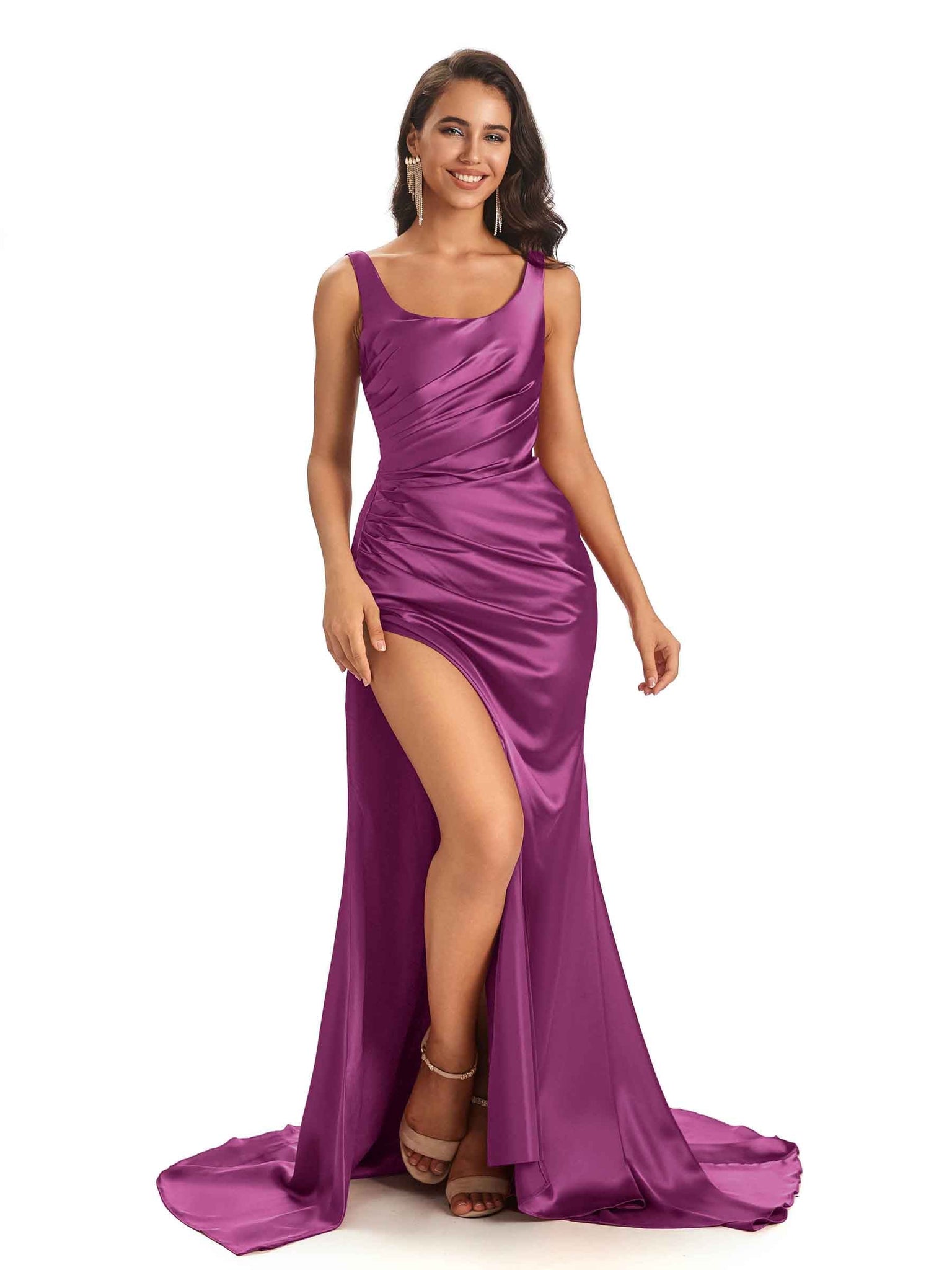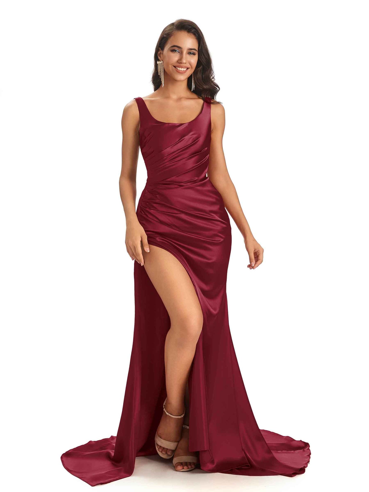 Sexy Side Slit Scoop Mermaid Long Stretch Satin Bridesmaid Dresses Online - ChicSew – ChicSew