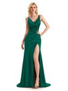 Sexy Side Slit Soft Satin V-Neck Long Mermaid Unique Bridesmaid Dresses Online