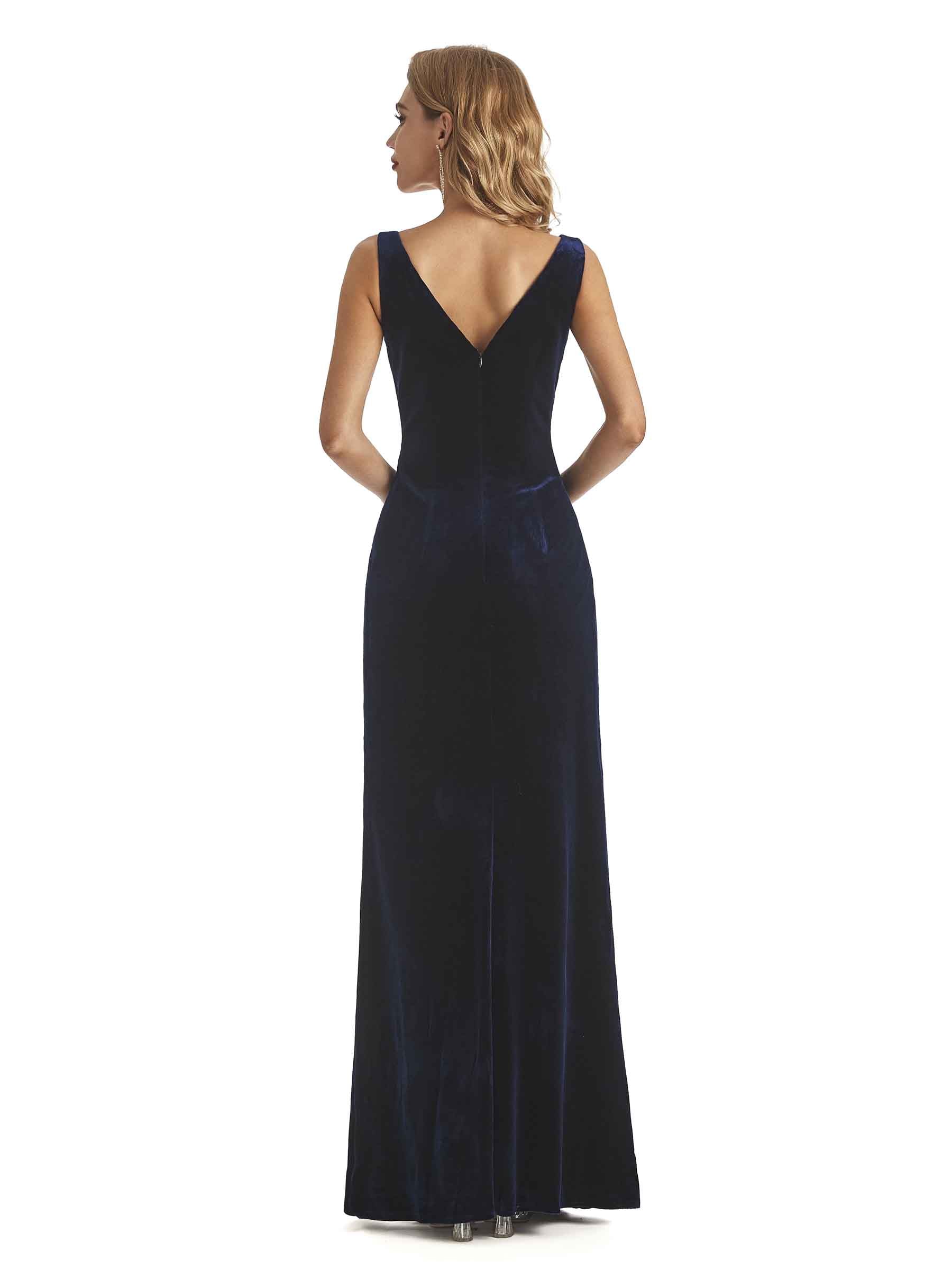 Sexy Side Slit Spaghetti Straps V-Neck Velvet Long Bridesmaid Dresses Online - ChicSew – ChicSew