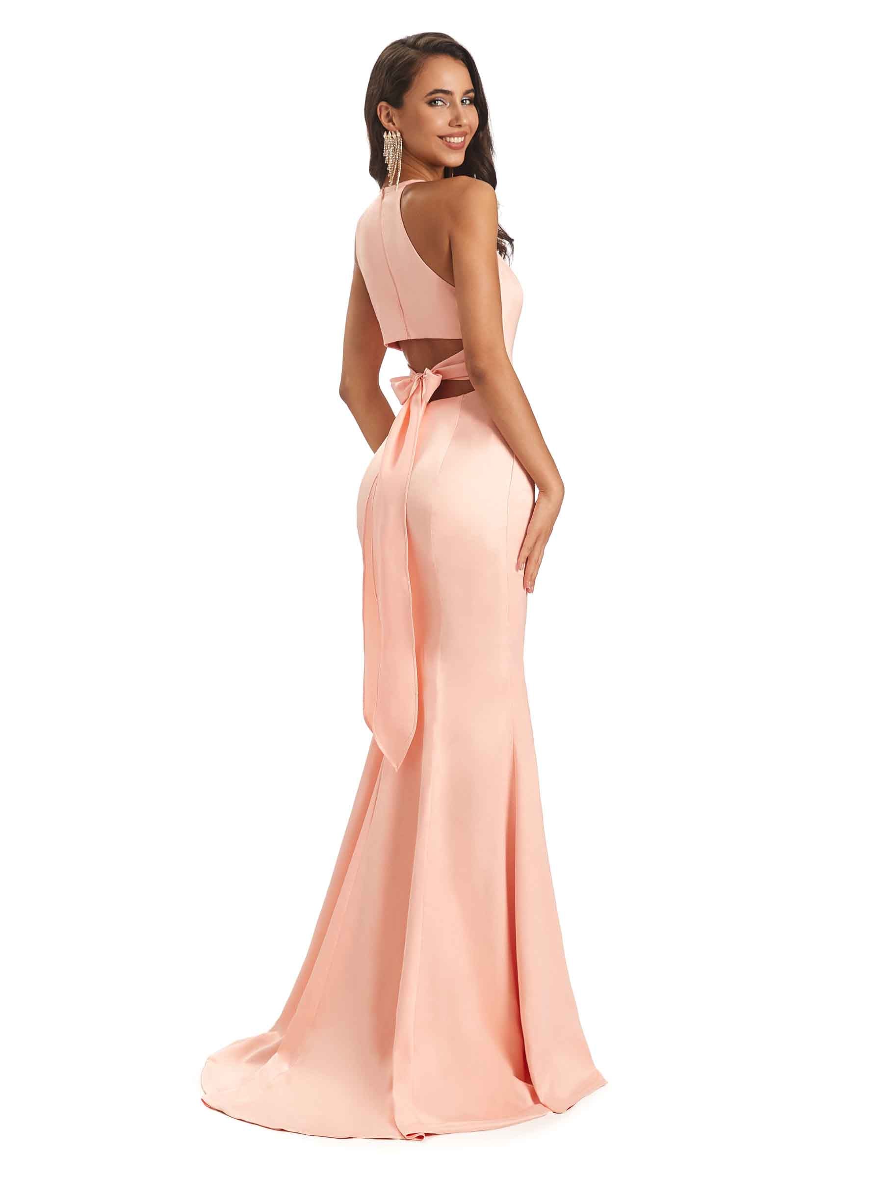 Sexy Soft Satin Bow Knot High Neck Floor-Length Mermaid prom Dresses - ChicSew – ChicSew