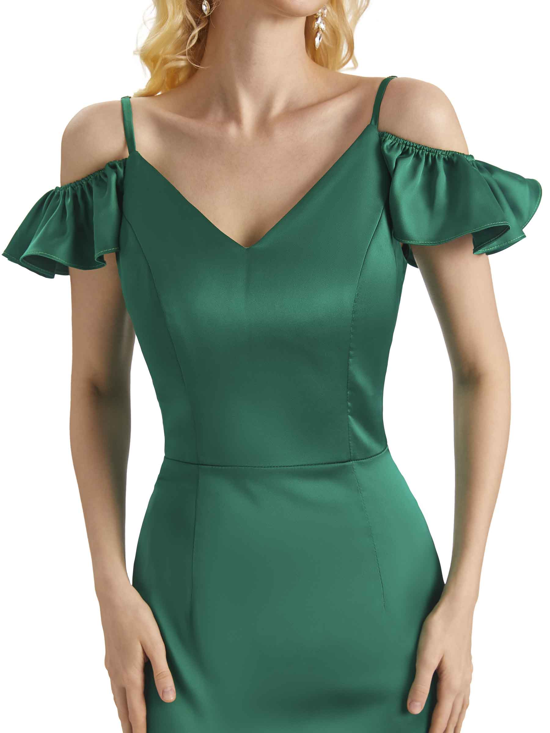 Sexy Soft Satin Cold Shoulder High Low Mermaid Mermaid Formal Prom Dresses