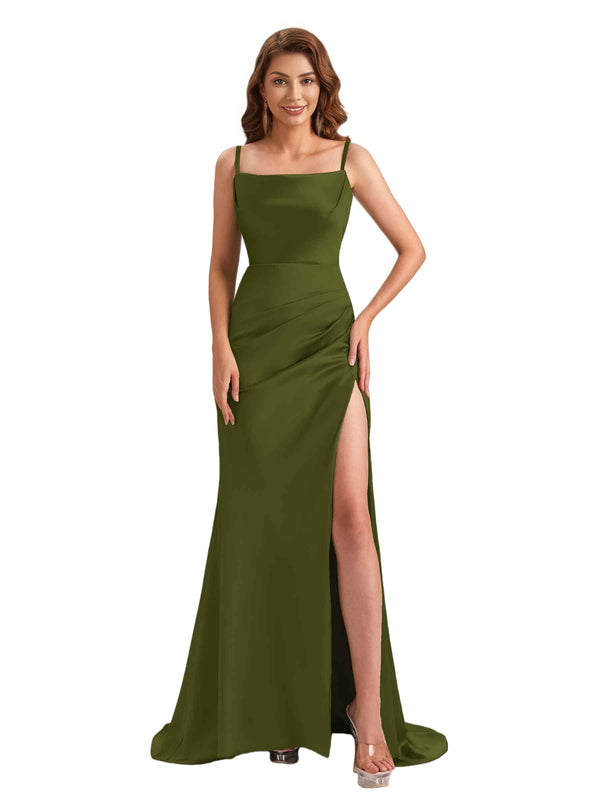 Sexy Soft Satin Mermaid Spaghetti Straps Side Slit Simple Long Bridesmaid Dresses Online - ChicSew – ChicSew
