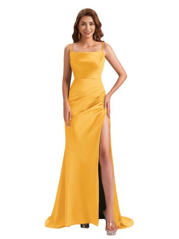 Sexy Soft Satin Mermaid Spaghetti Straps Side Slit Simple Long Bridesmaid Dresses Online