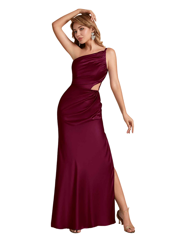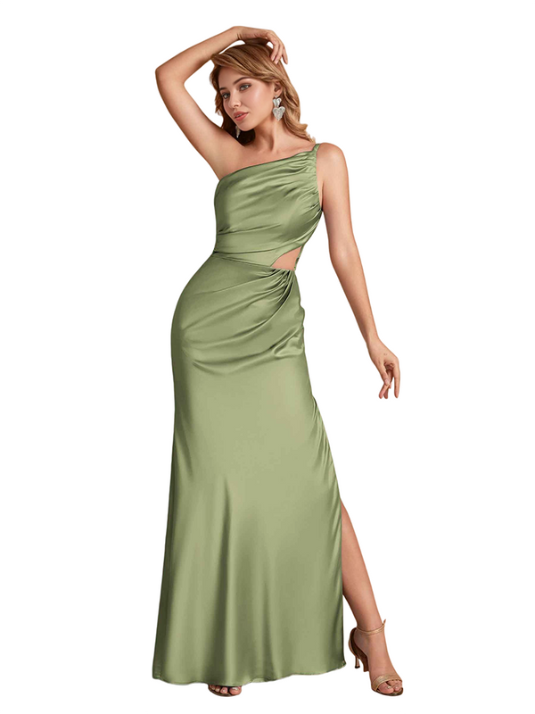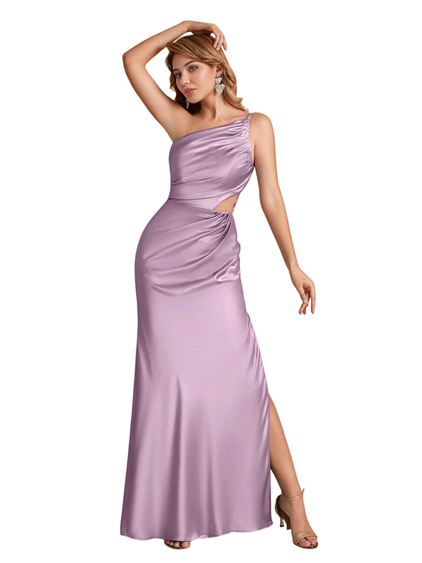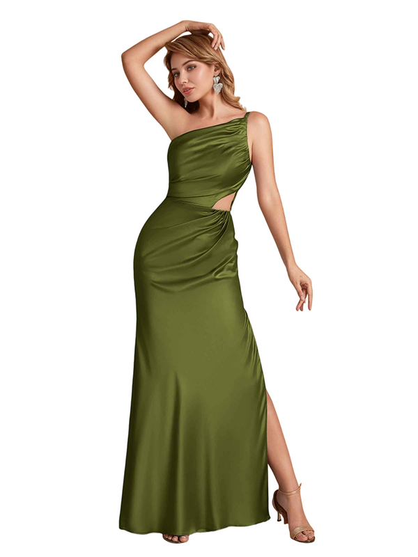 Sexy Silky Satin One Shoulder Mermaid Side Slit Long Bridesmaid Dresses Online