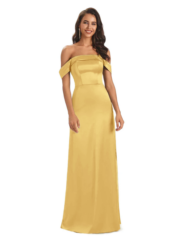 Sexy Soft Satin Side Slit Off-Shoulder Floor-Length Sheath Bridesmaid Dresses - ChicSew – ChicSew