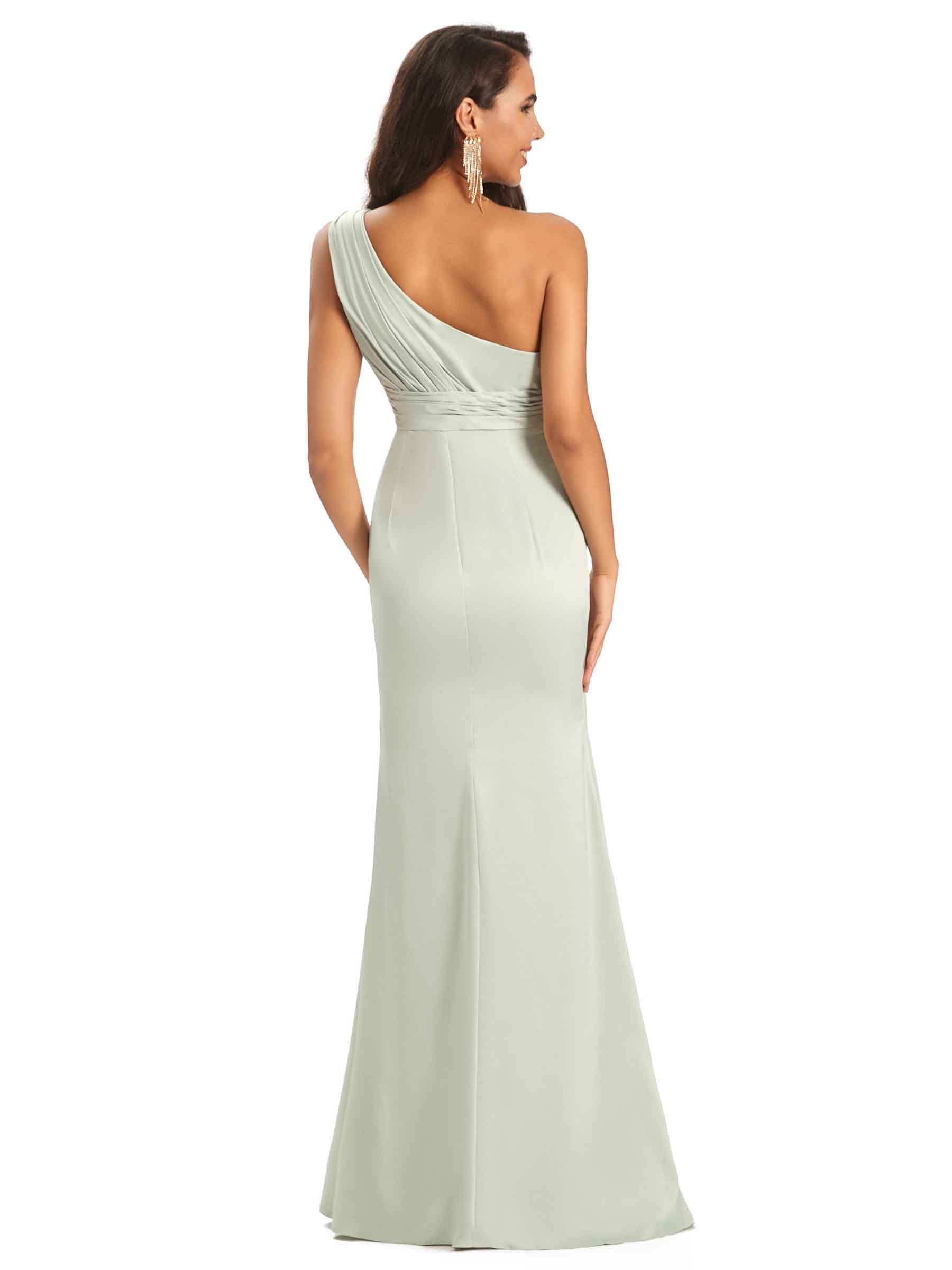 Sexy Soft Satin Side Slit One Shoulder Floor-Length Sheath Bridesmaid Dresses - ChicSew – ChicSew