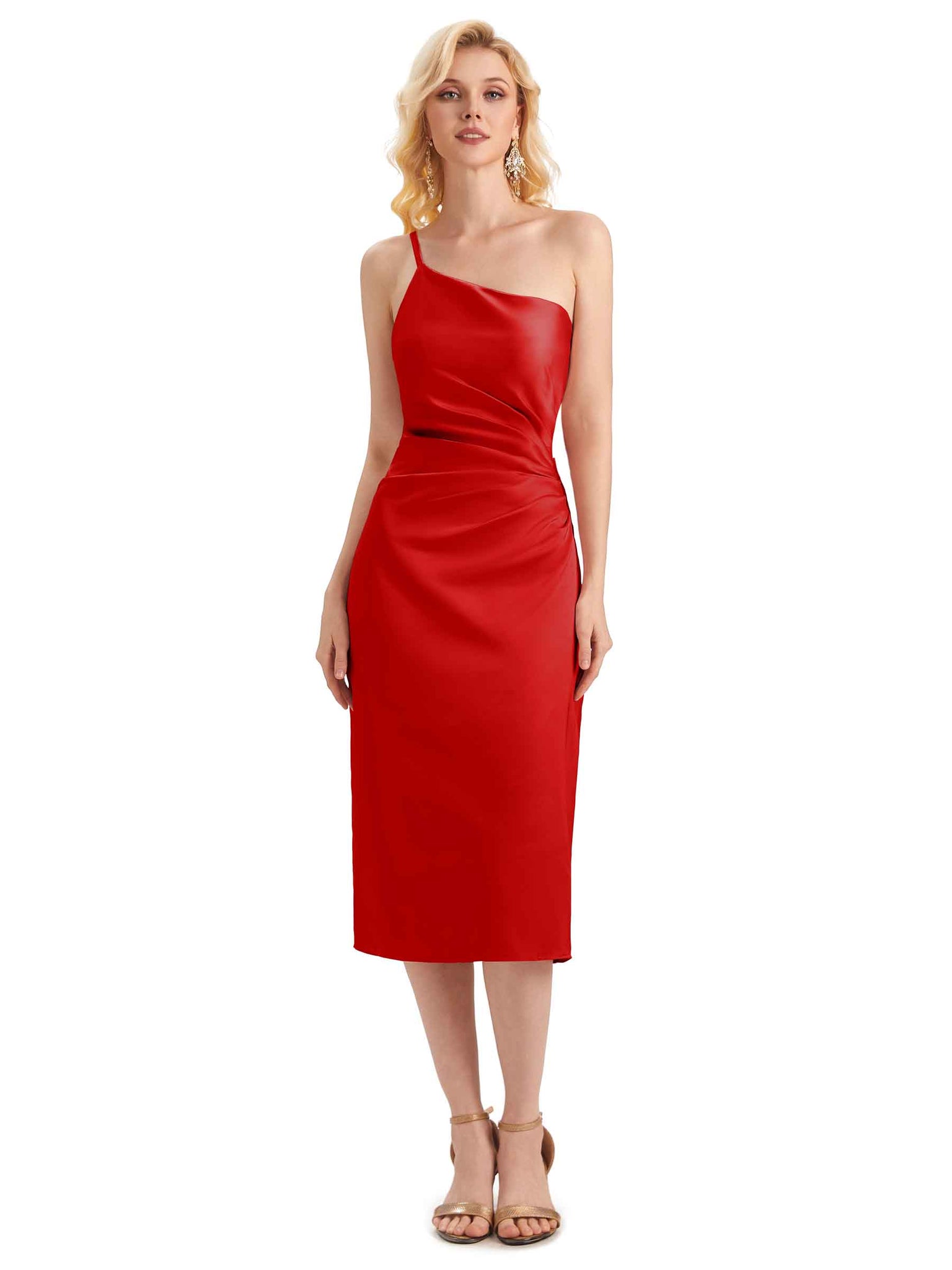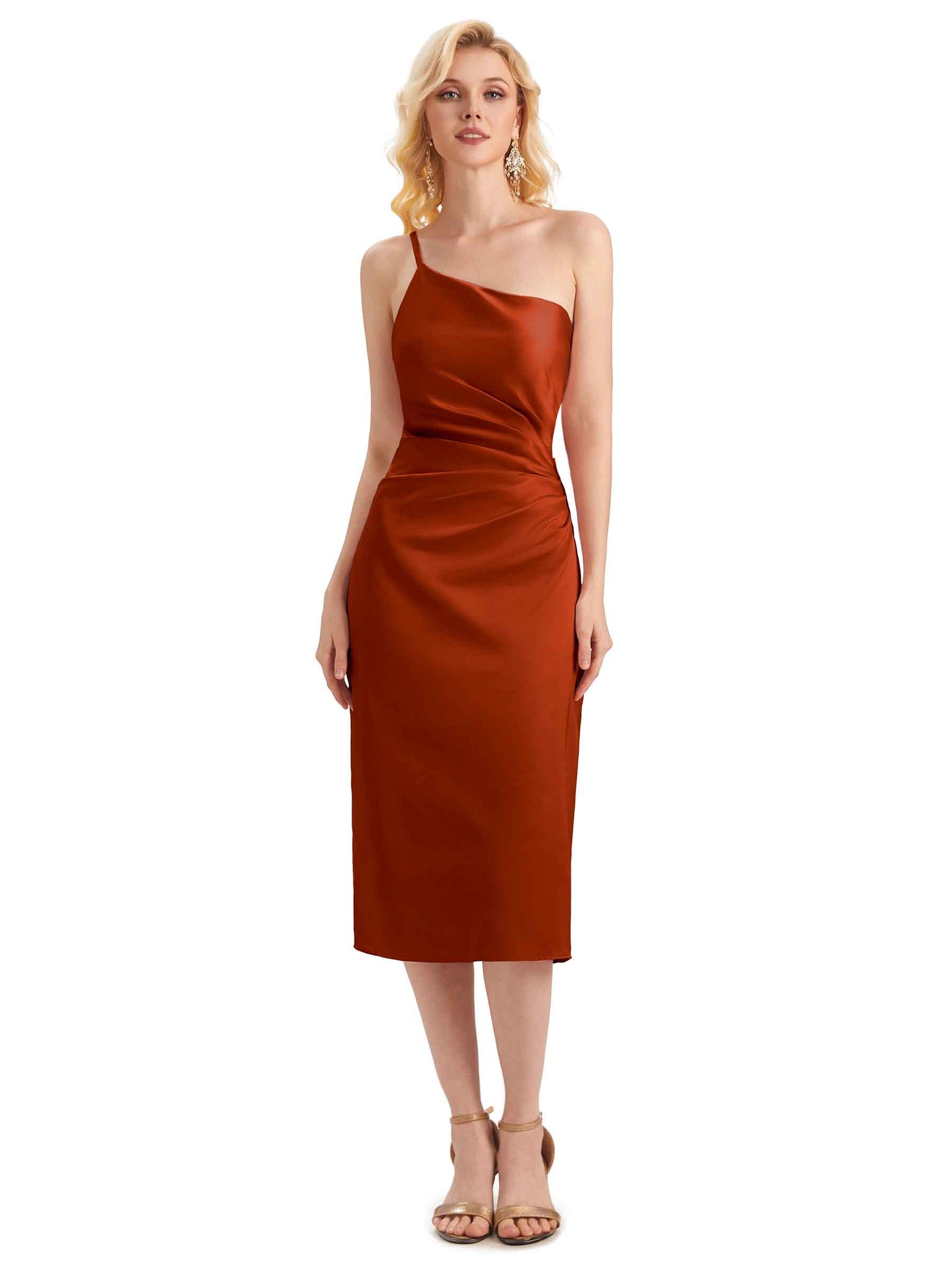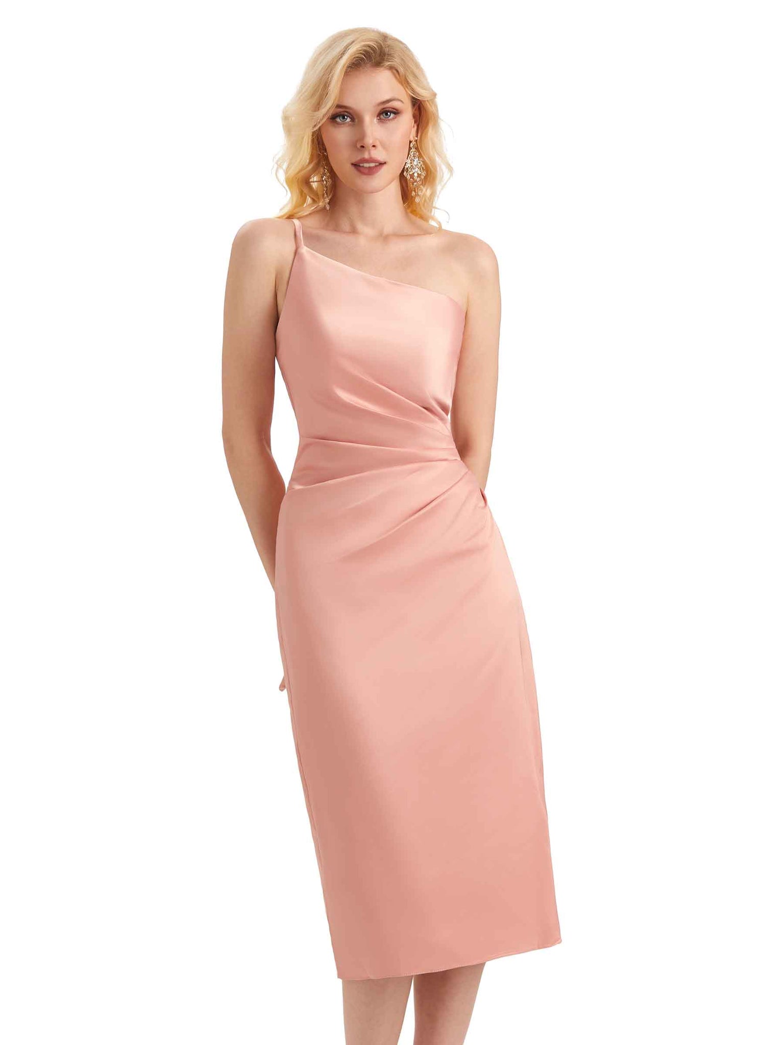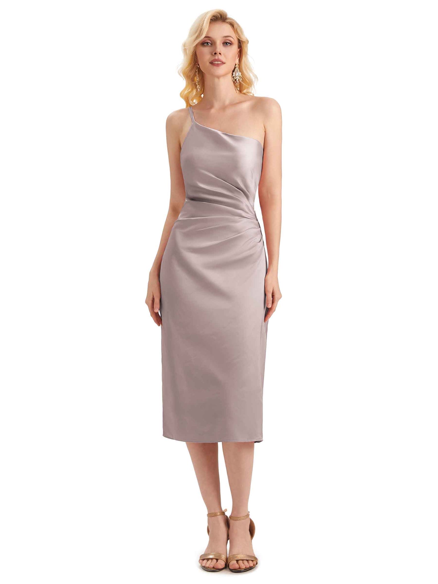 Sexy Soft Satin Side Slit One Shoulder Satin Midi Bridesmaid Dresses Online